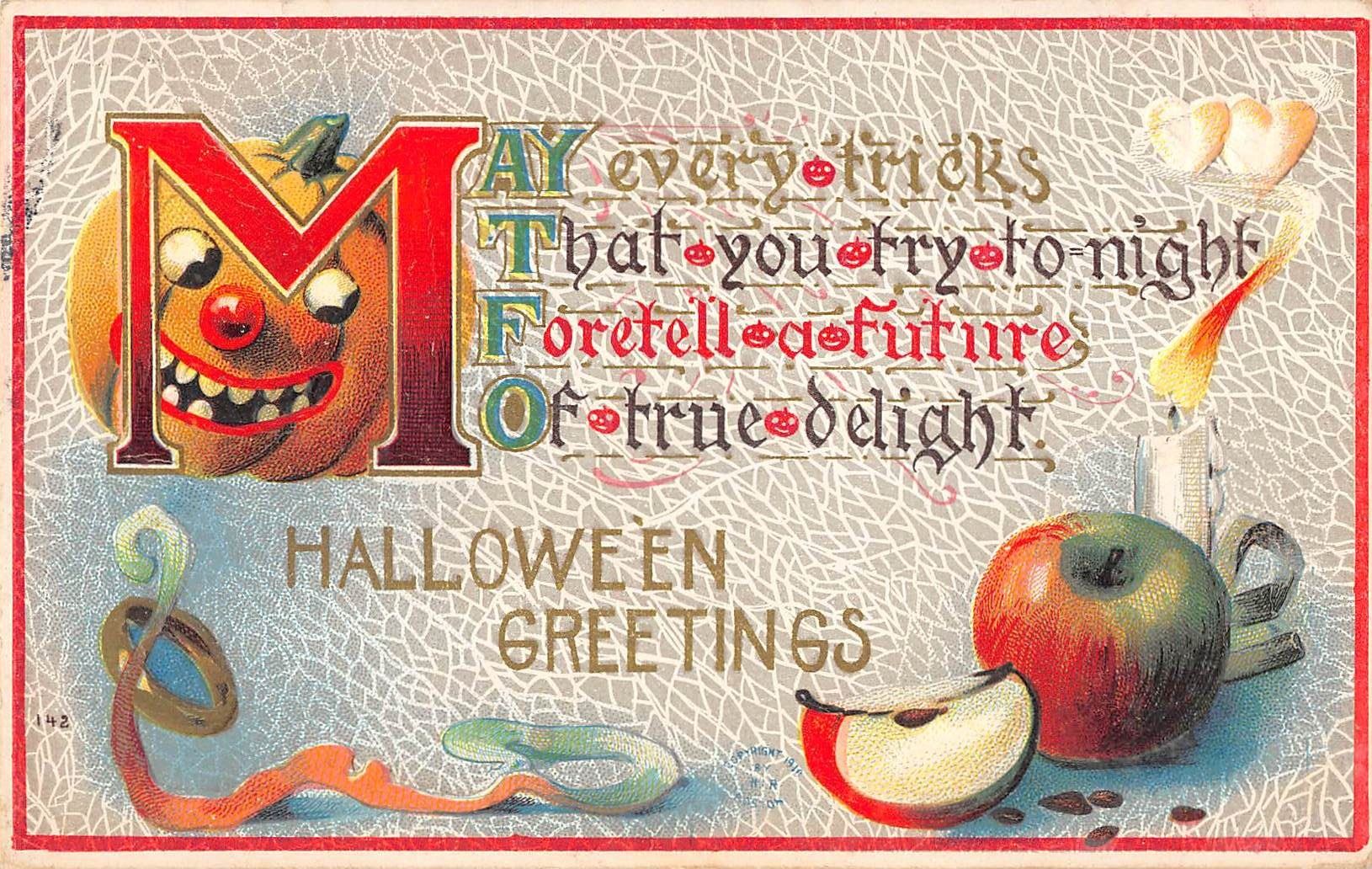 Halloween Greetings Pumpkin & Apple By Candle by HIR Postcard