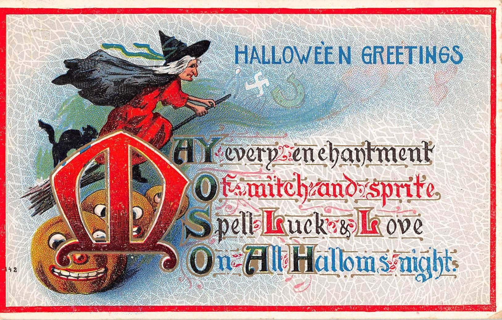 Halloween Greetings Witch On Broom by Hir Postcard