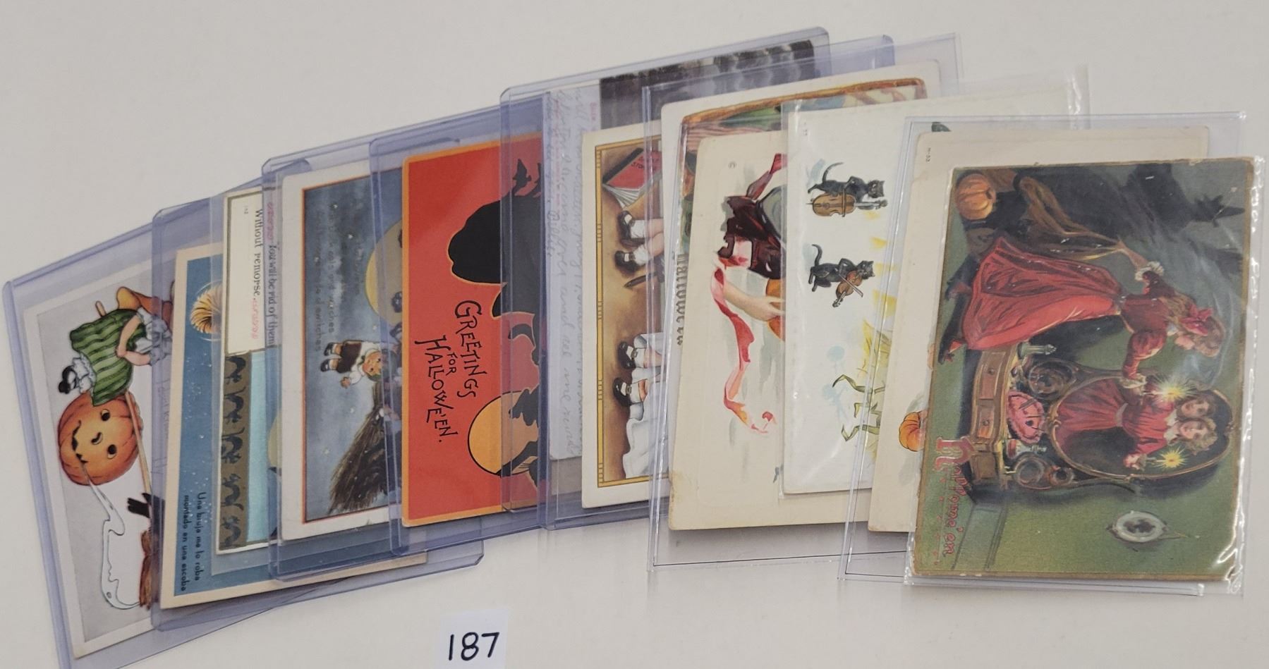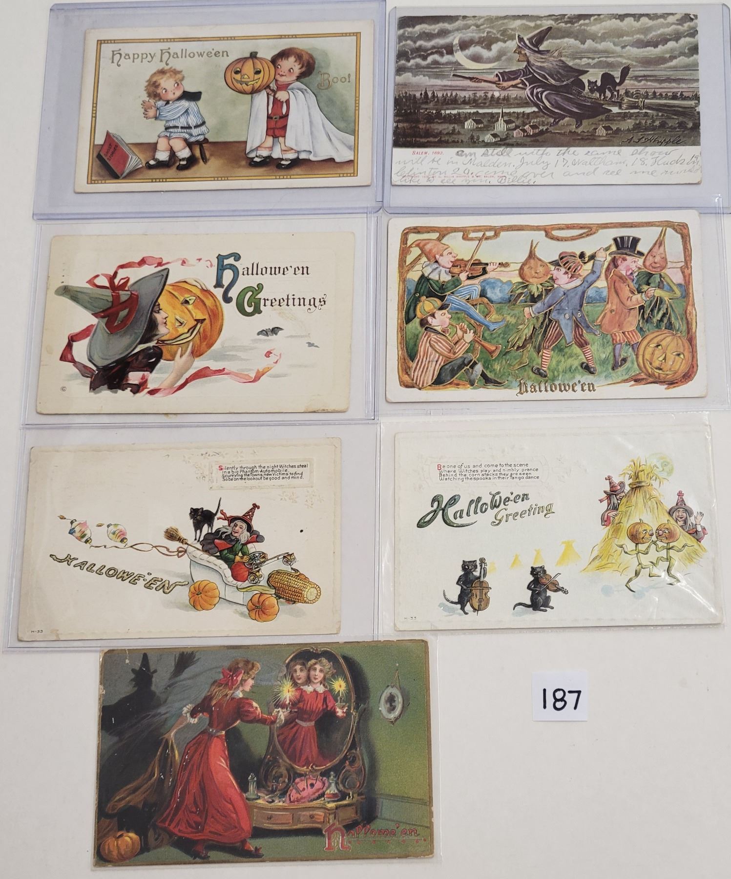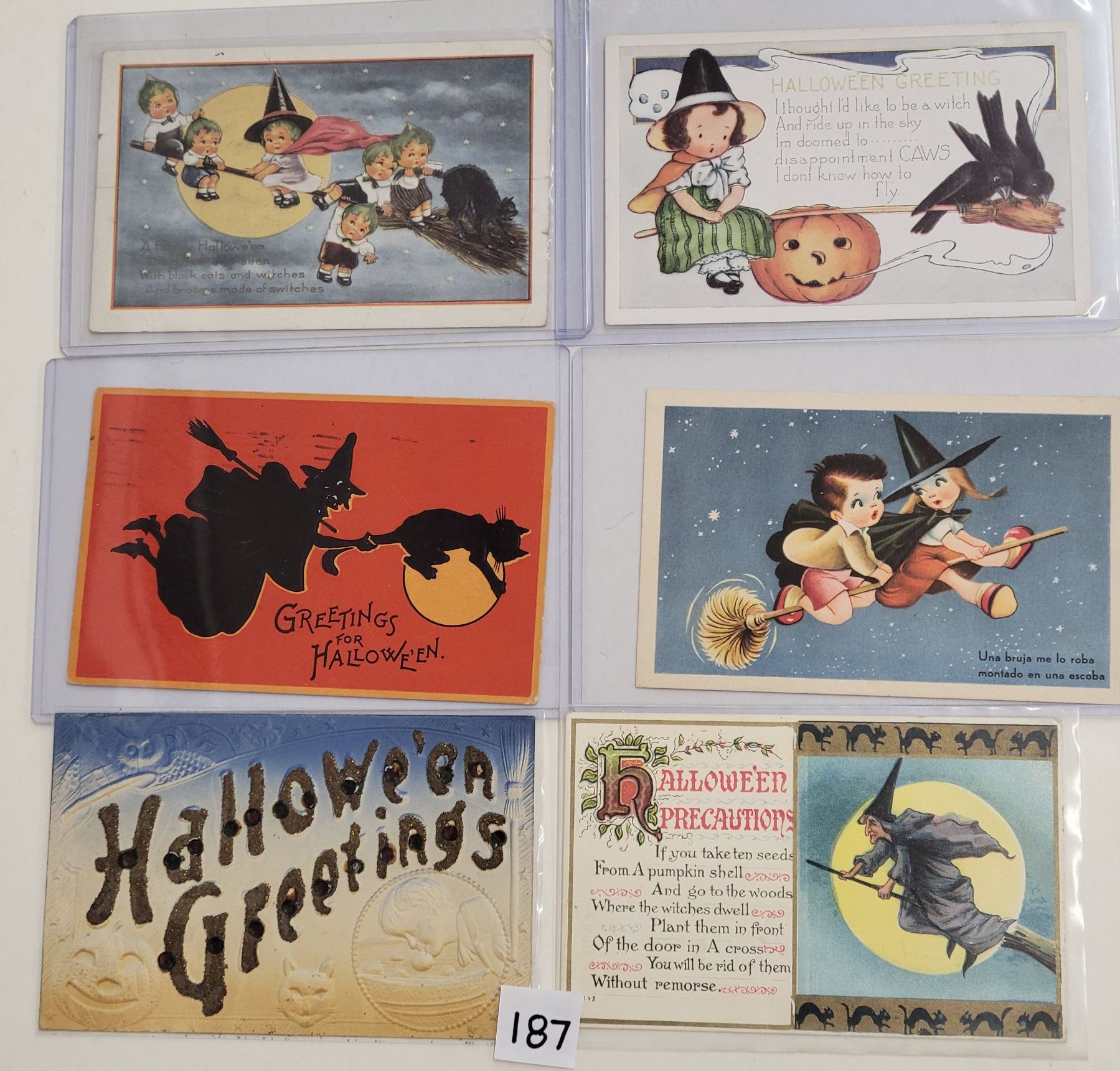 13 Halloween postcards. Many with witches.