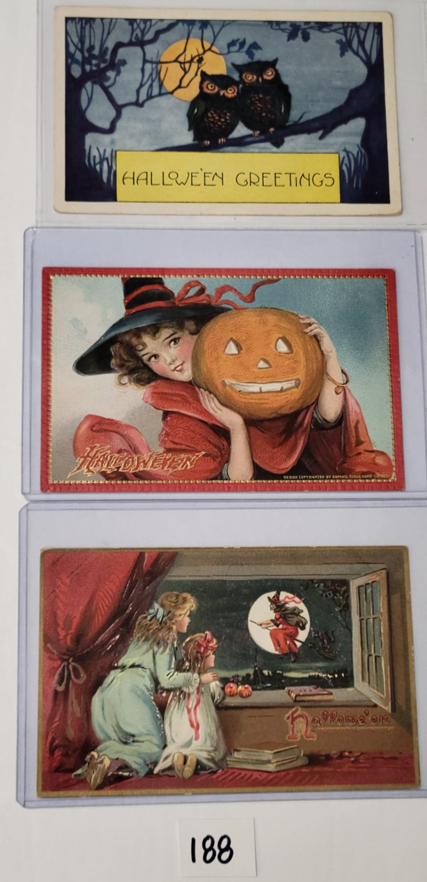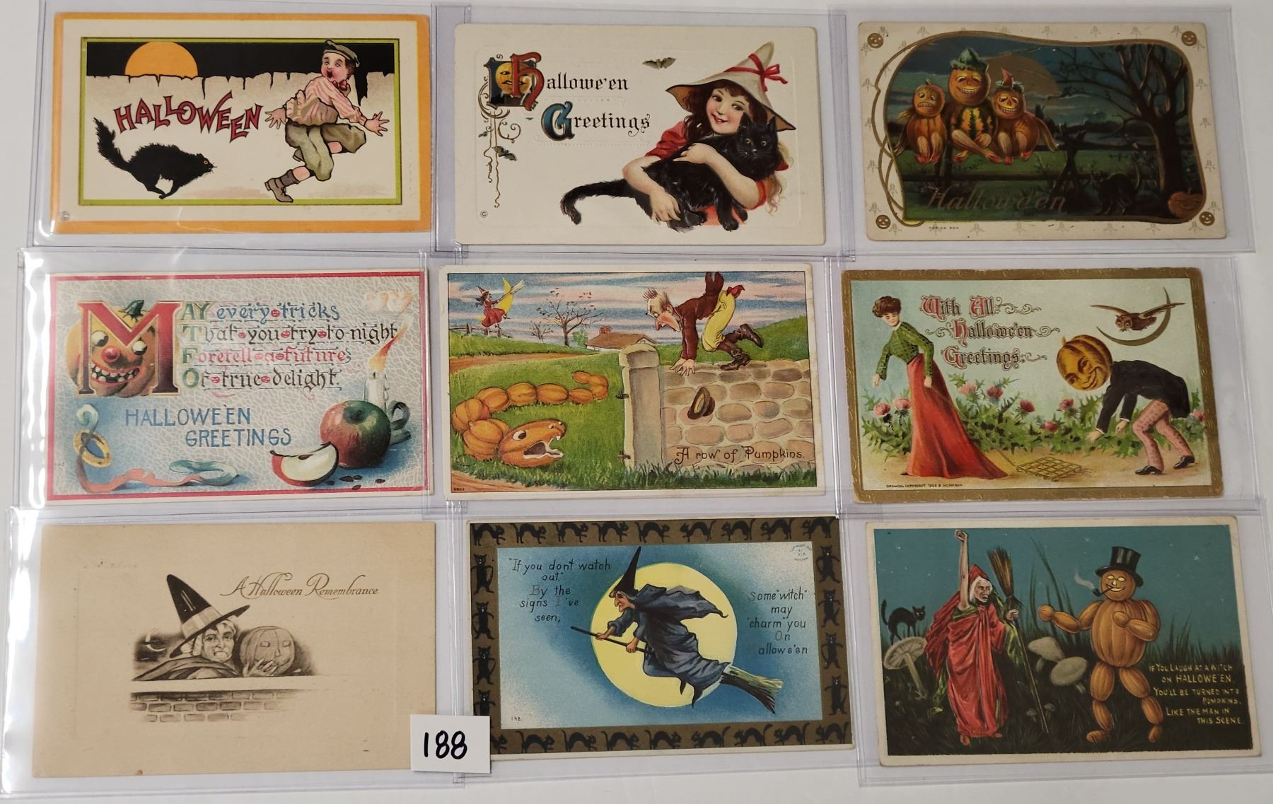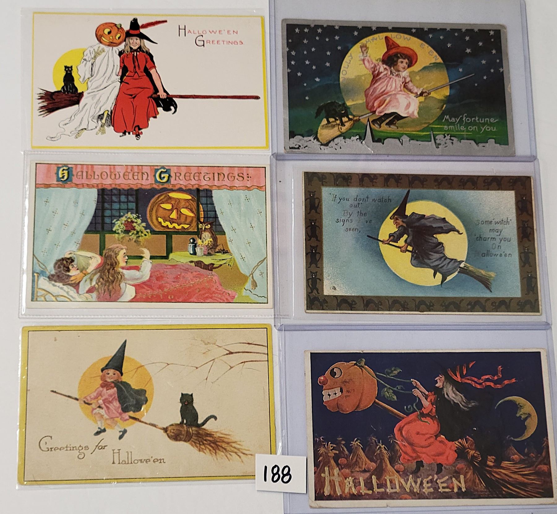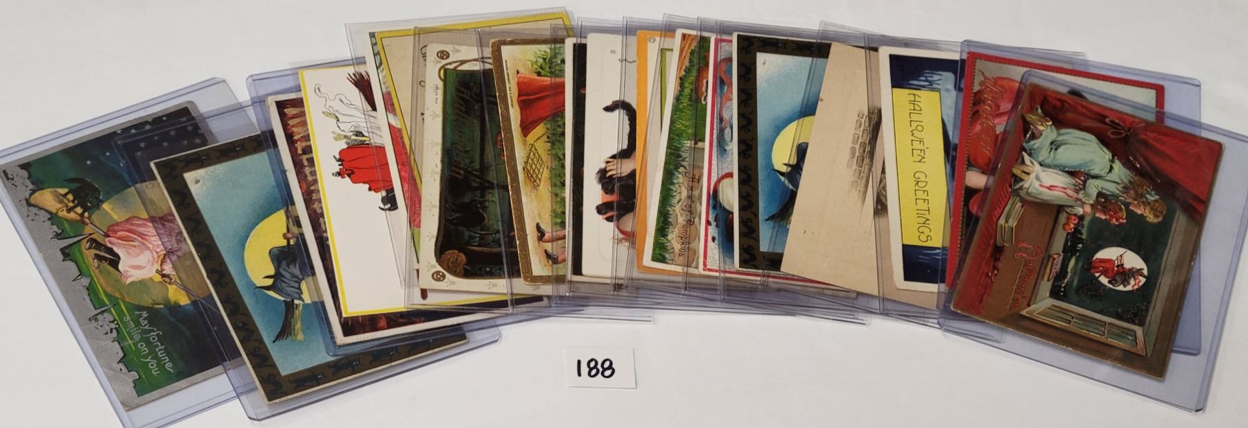 18 Halloween postcards. Many with witches.