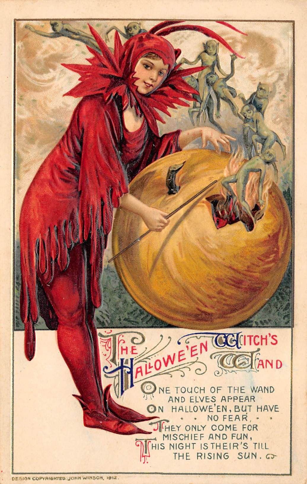 Halloween Witch's Wand With Goblins Winsh Holiday Greeting Postcard
