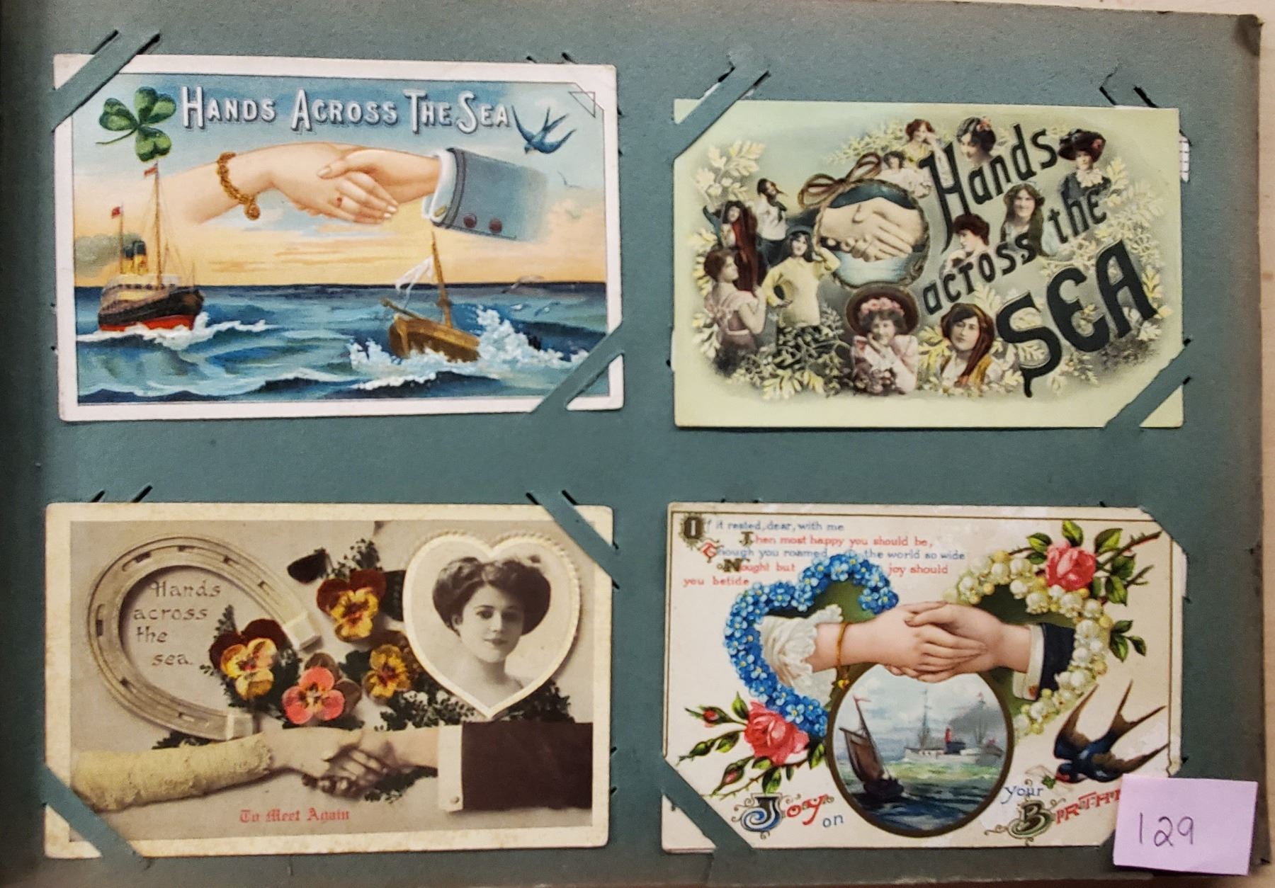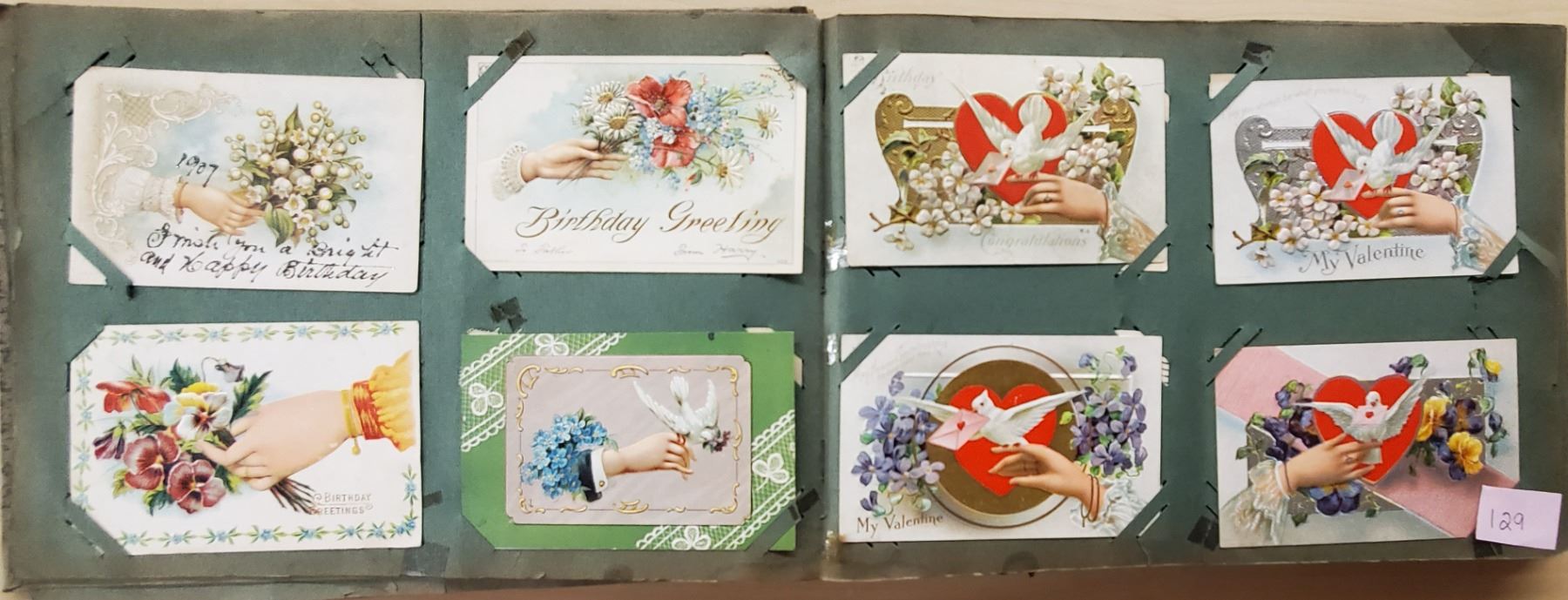 Antique paper album of mostly greetings with hands. Easter, children, etc.