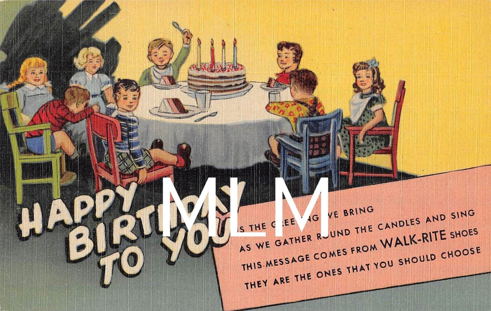 Happy Birthday to You Cake Walk-Rite Shoes Linen Advertising Newark, New Jersey Postcard