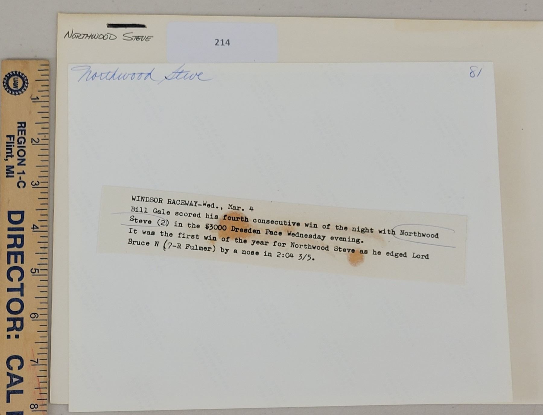 Harness Racing, Featuring Horse Northwood Steve, Driver Bill Gale, Windsor Raceway, 1 Photo