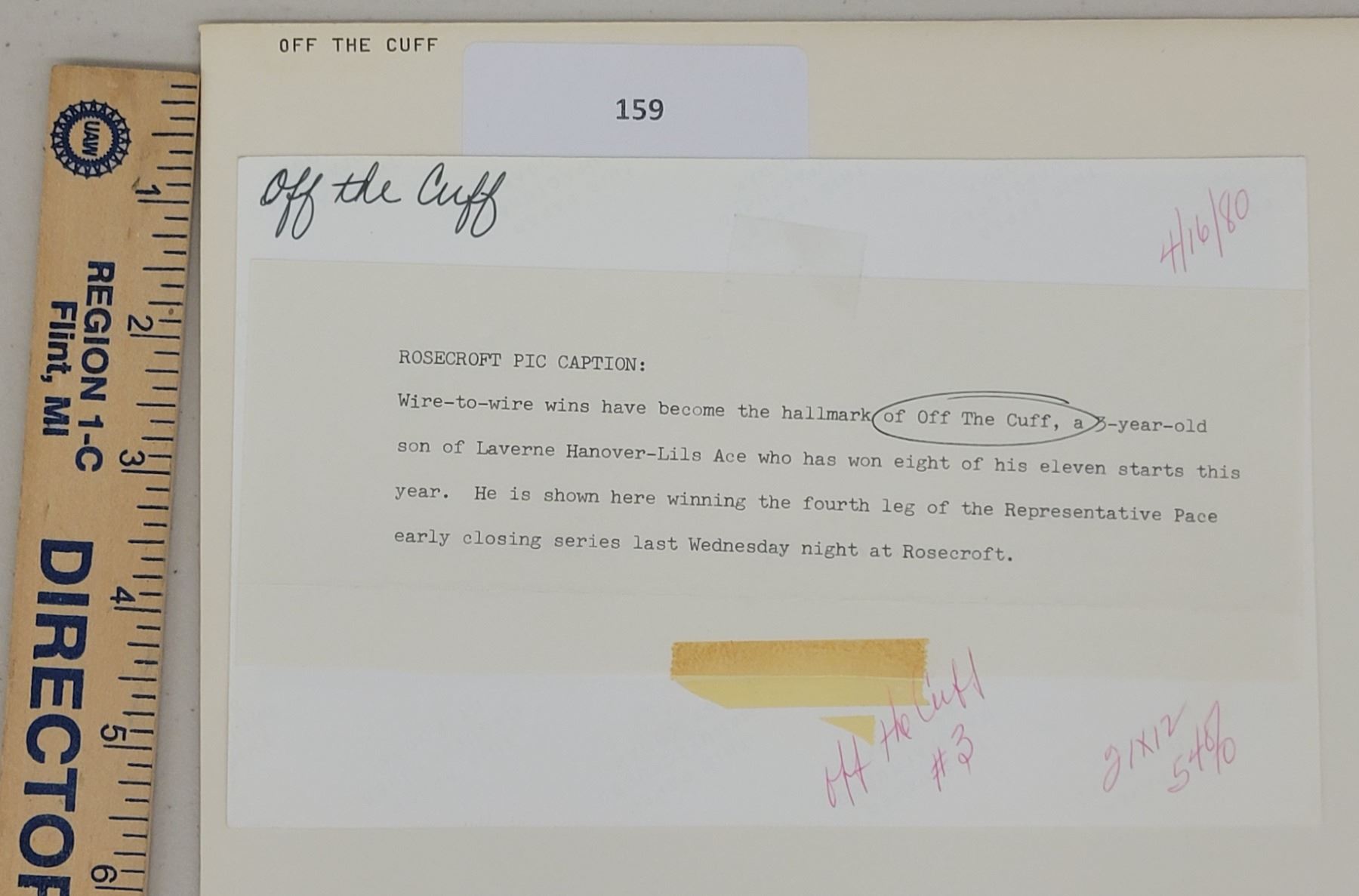 Harness Racing, Featuring Horse Off The Cuff, Rosecroft Raceway, 1 Photo