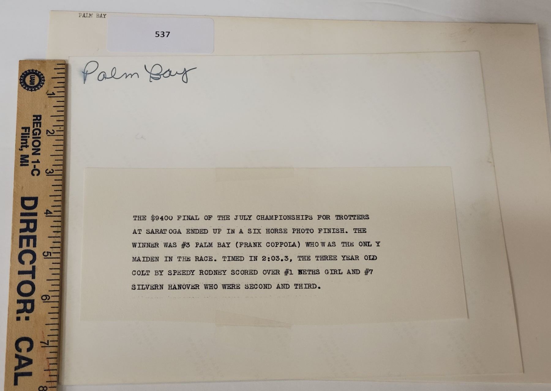 Harness Racing, Featuring Horse Palm Bay, Driver Frank Coppola, Saratoga Raceway, 1 Photo