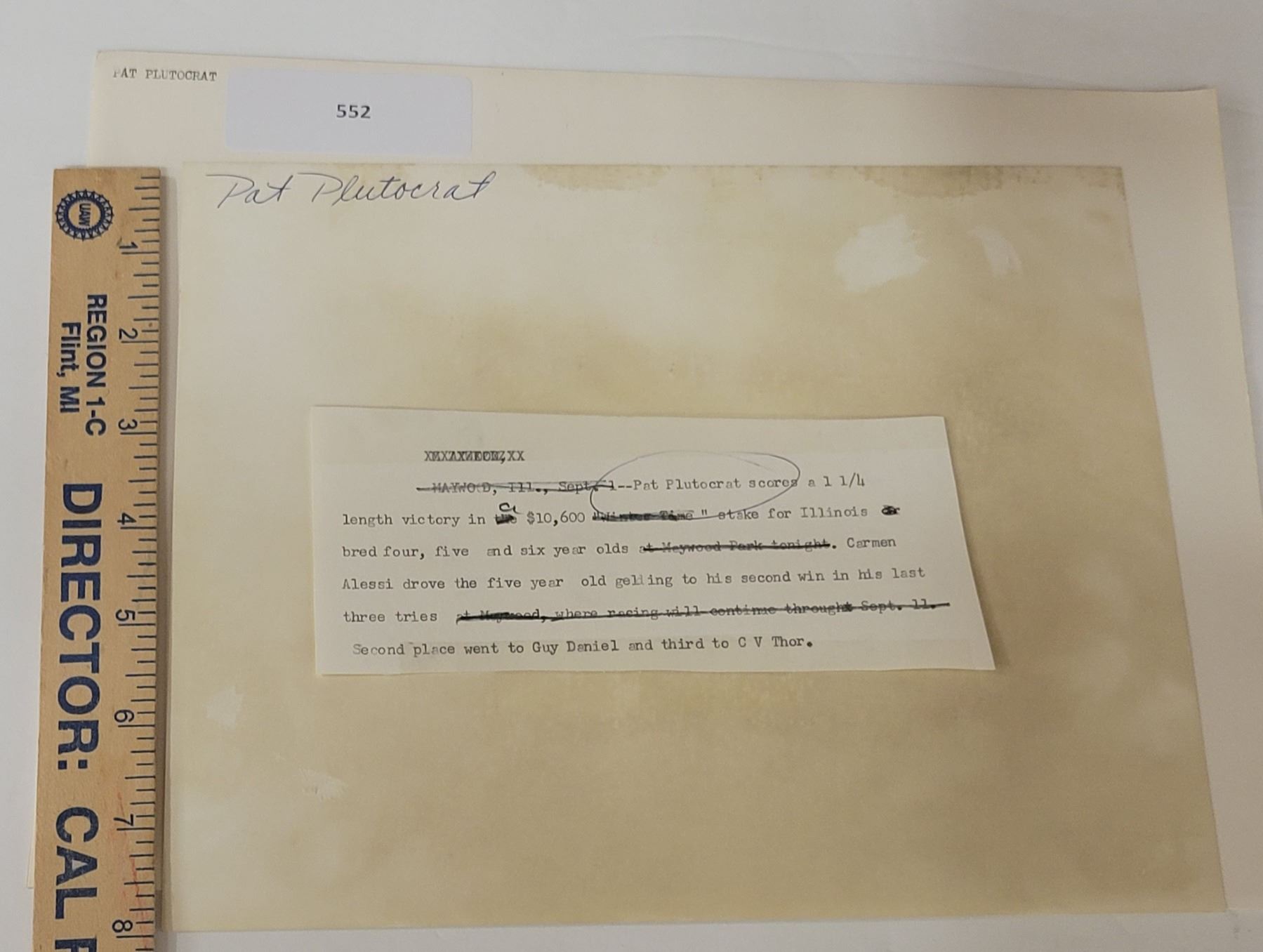 Harness Racing, Featuring Horse Pat Plutocrat, Driver Carmen Alessi, 1 Photo