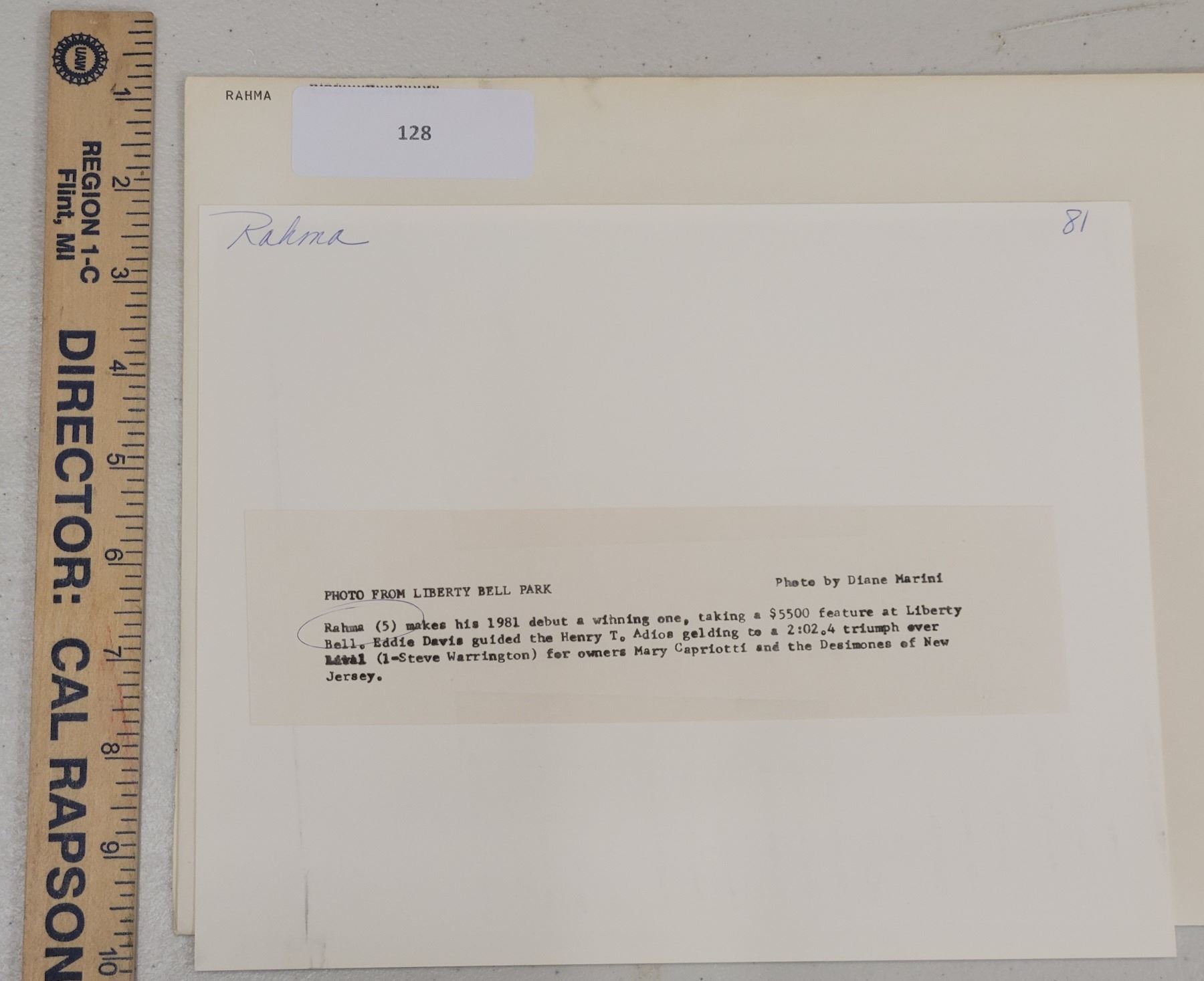 Harness Racing, Featuring Horse Rahma, Driver Eddie Davis, Liberty Bell Park, 1 Photo