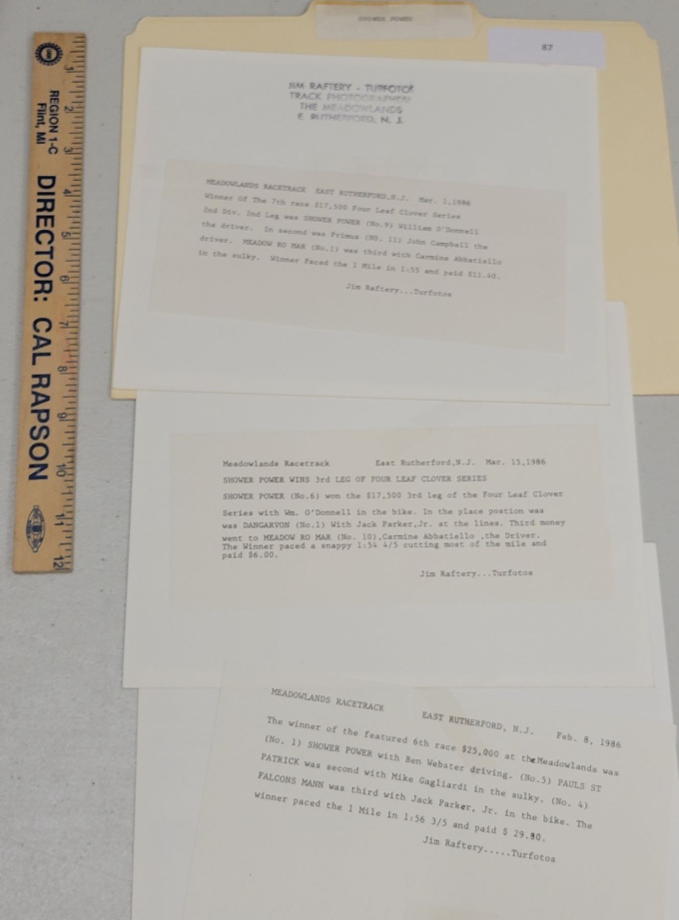 Harness Racing, Featuring Horse Shower Power, Meadowlands Racetrack, 3 Photos