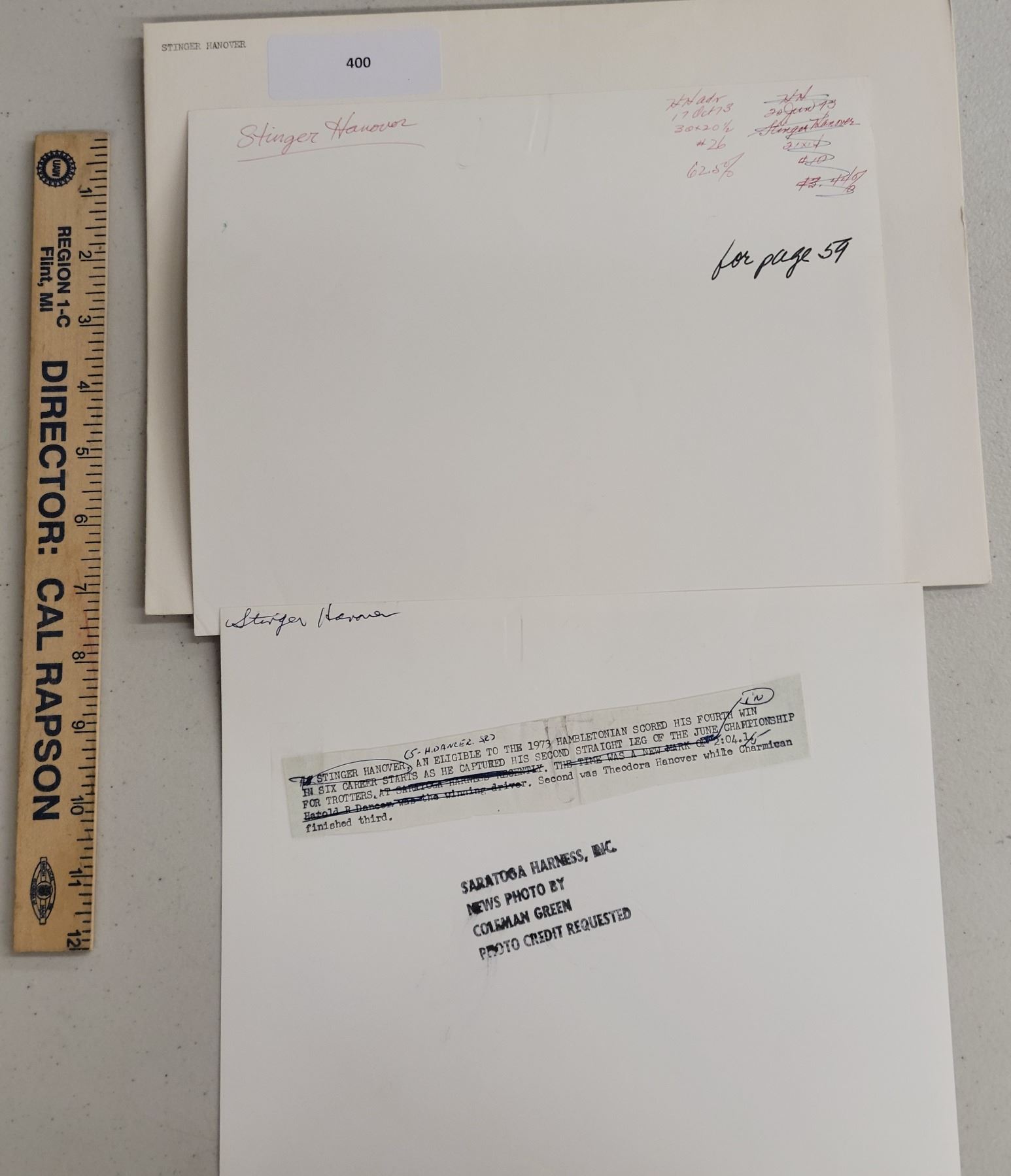 Harness Racing, Featuring Horse Stinger Hanover, Saratoga Harness Racing, 2 Photos