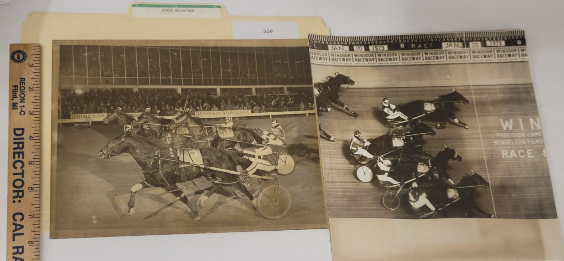 Harness Racing, Ozark Goldwidow, Driver Chet Dewbre, Windsor Raceway, 2 Photos