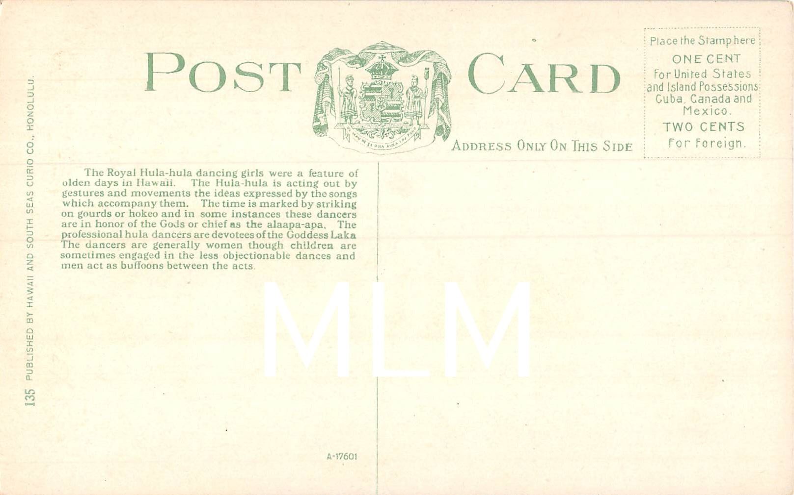 Unused. No. 135 Published by Hawaii & South Seas Curio Co. Over 100 years old.
