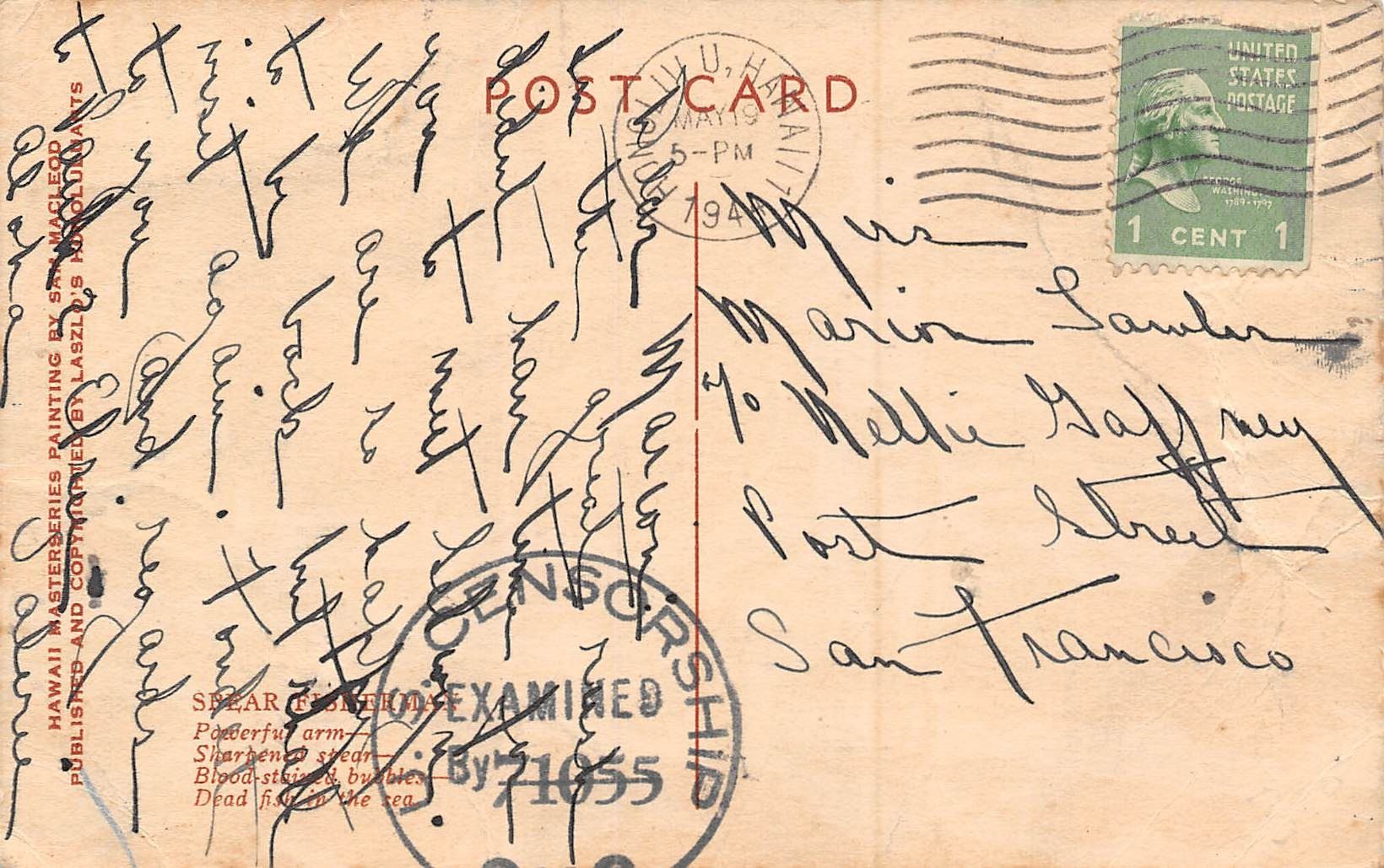 Hawaii Masterseries painting by Sam Macleod. Faint creasing. Postal used.