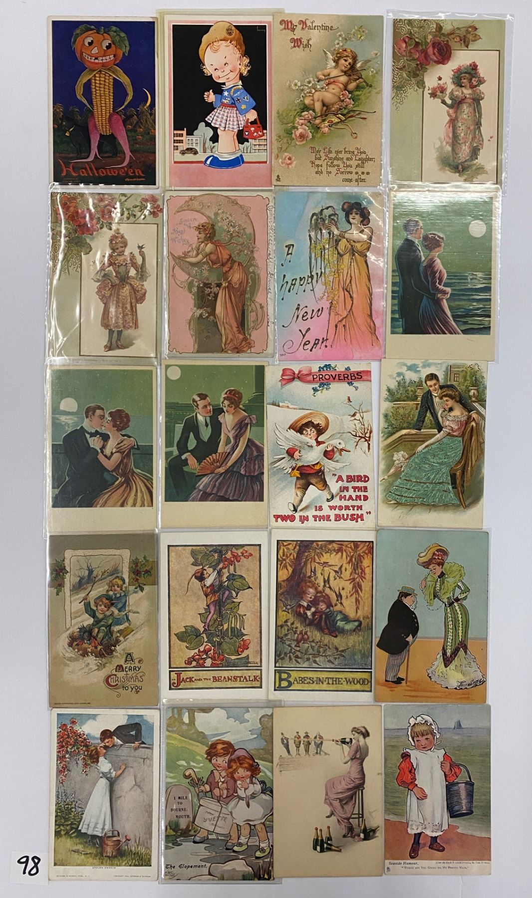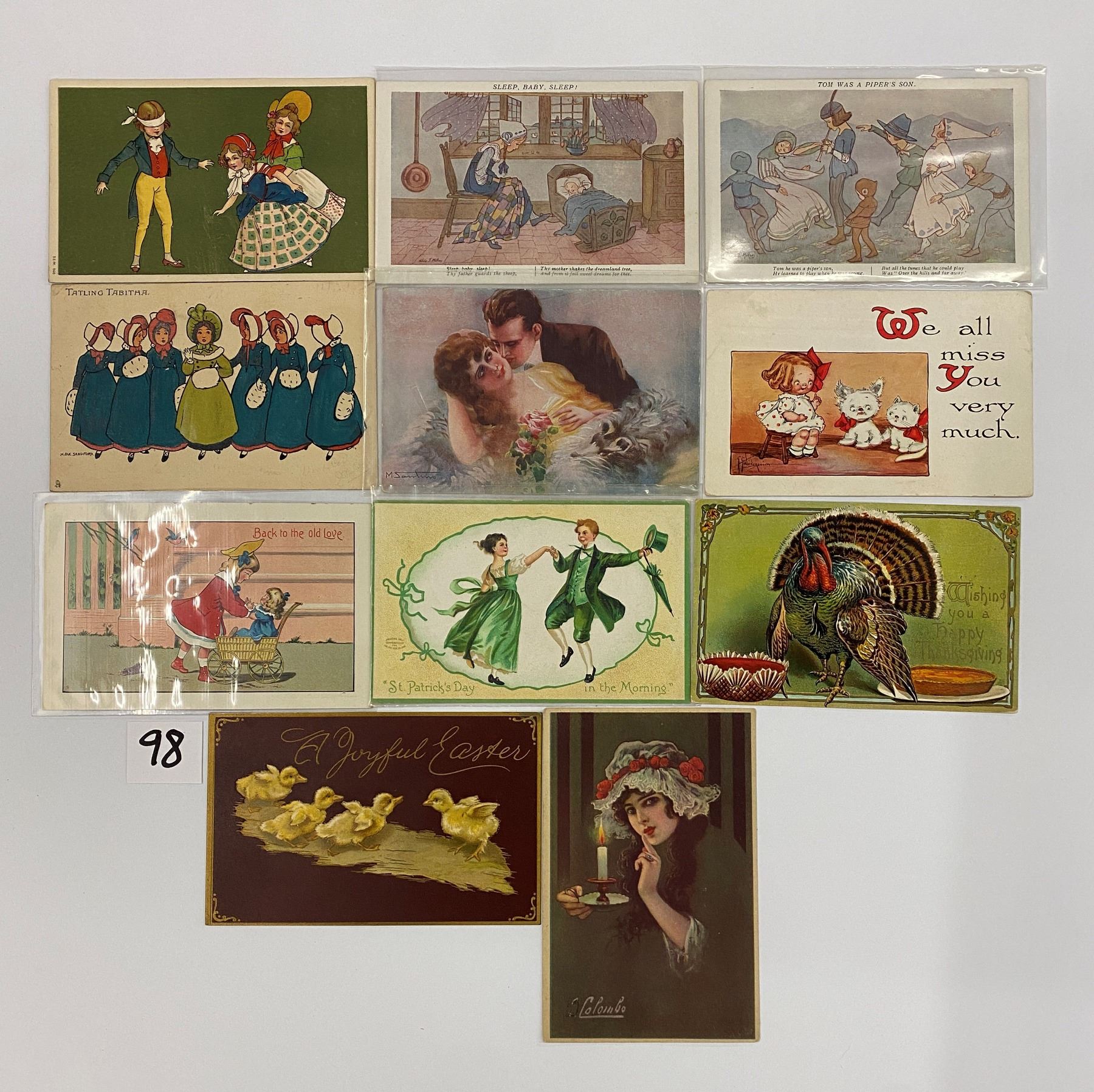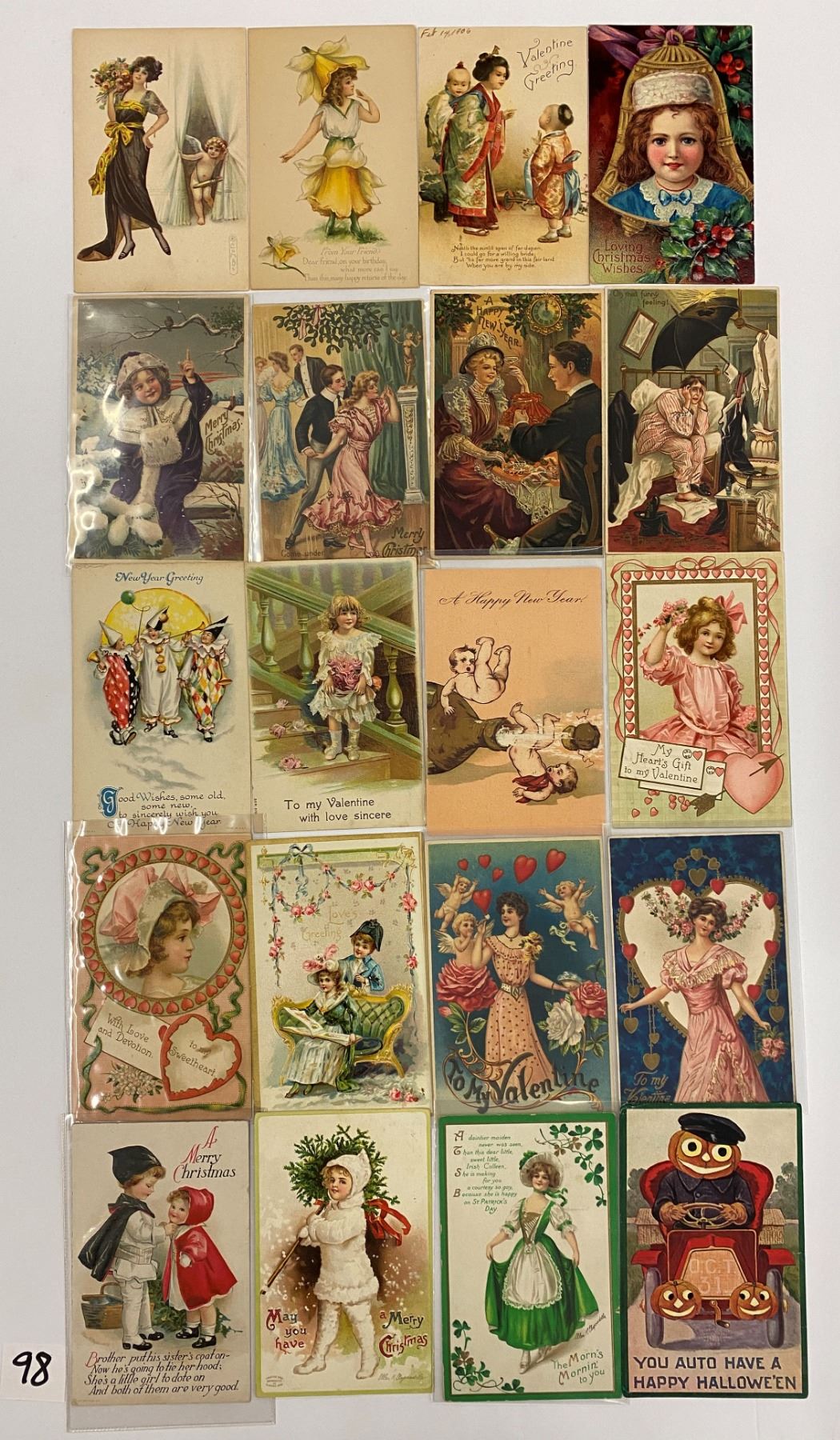 Approx. 50 greeting postcards. Signed artist, Clapsaddle, Christmas, New Years, St. Patrick's Day, at least 1 Halloween and much more.
