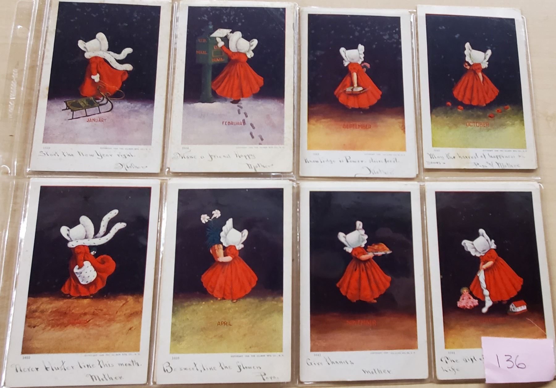 Over 165 cards of holidays/greetings. Sets & partial sets. Contains groups like: Days of the Week, Sunbonnets, animals, Tucks, Angels, Children, holidays and more.