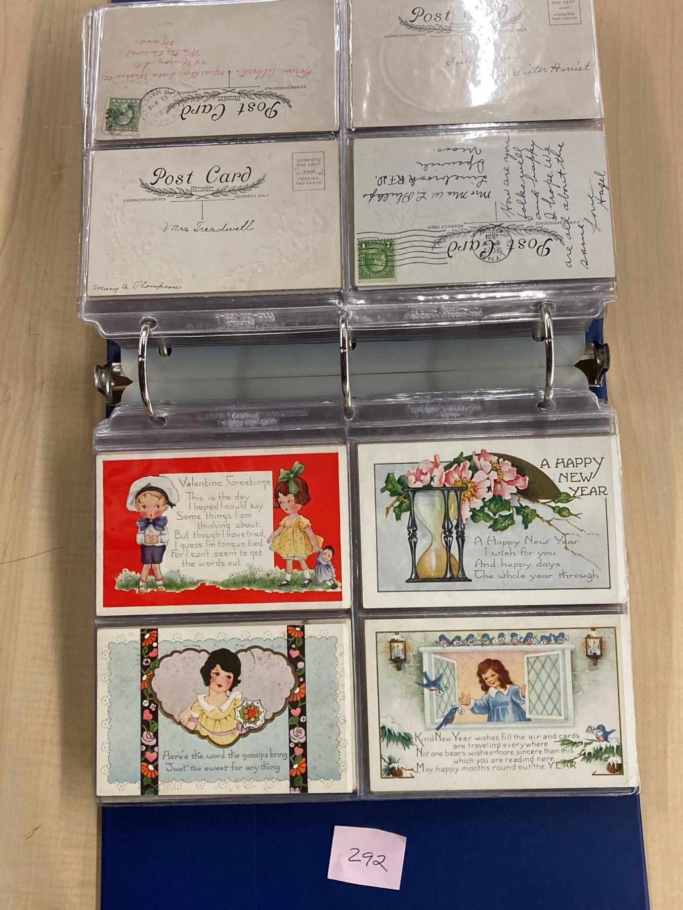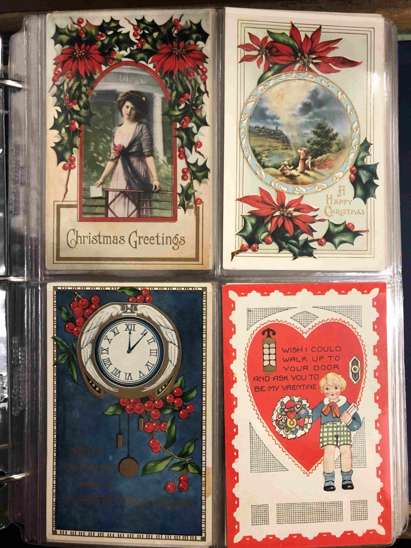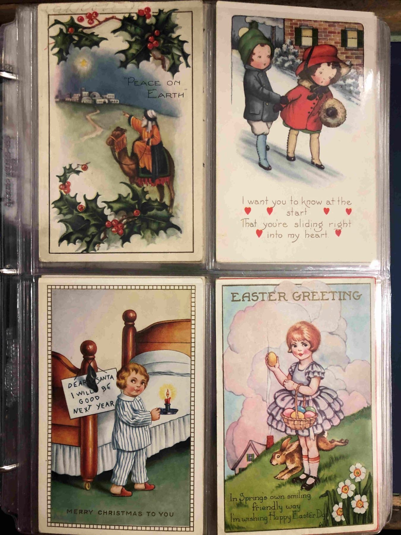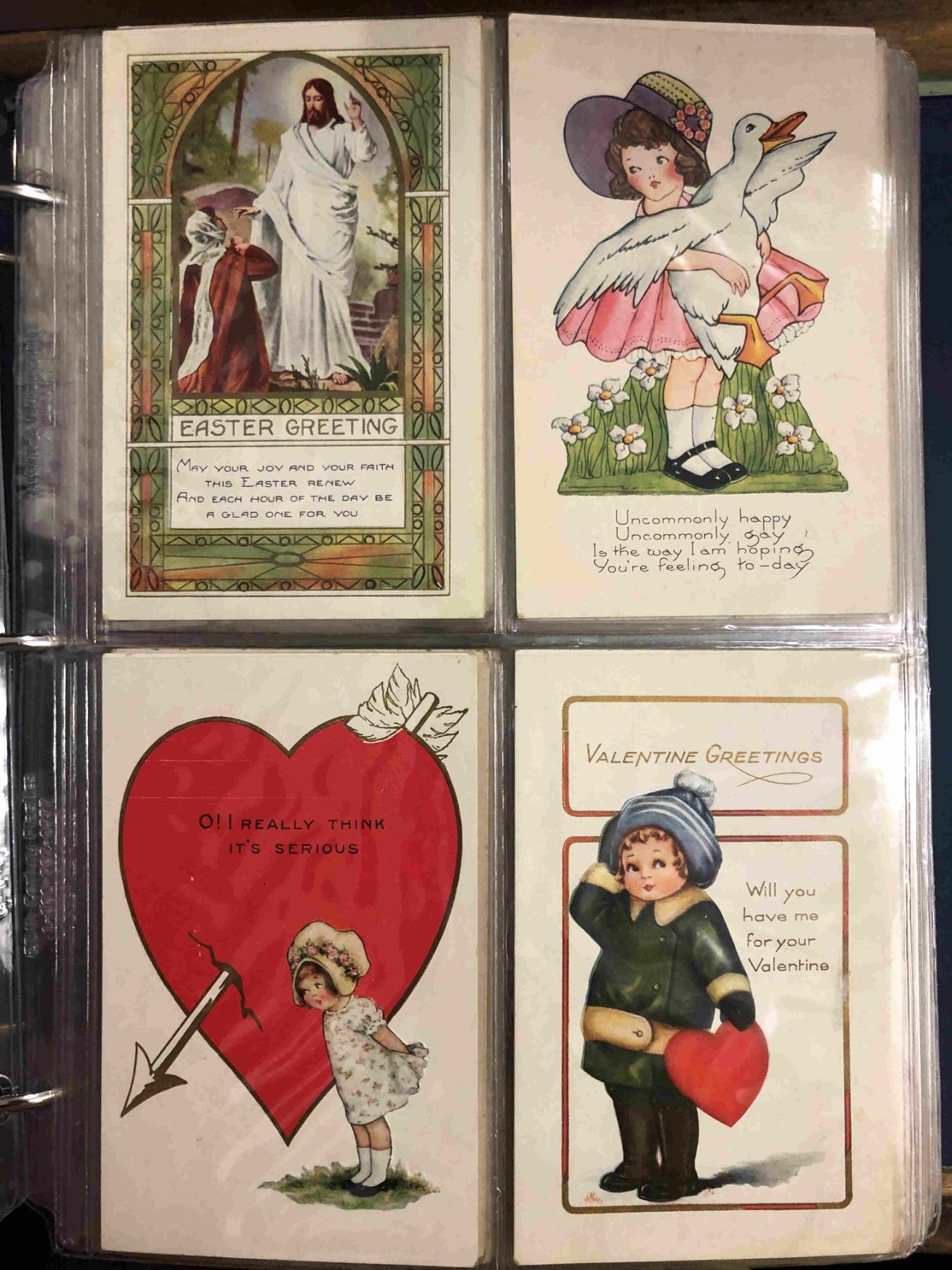 Album of over 200 cards by Whitney Publishing. Valentines, Christmas, New Years, Easter, Thanksgiving, Children etc.