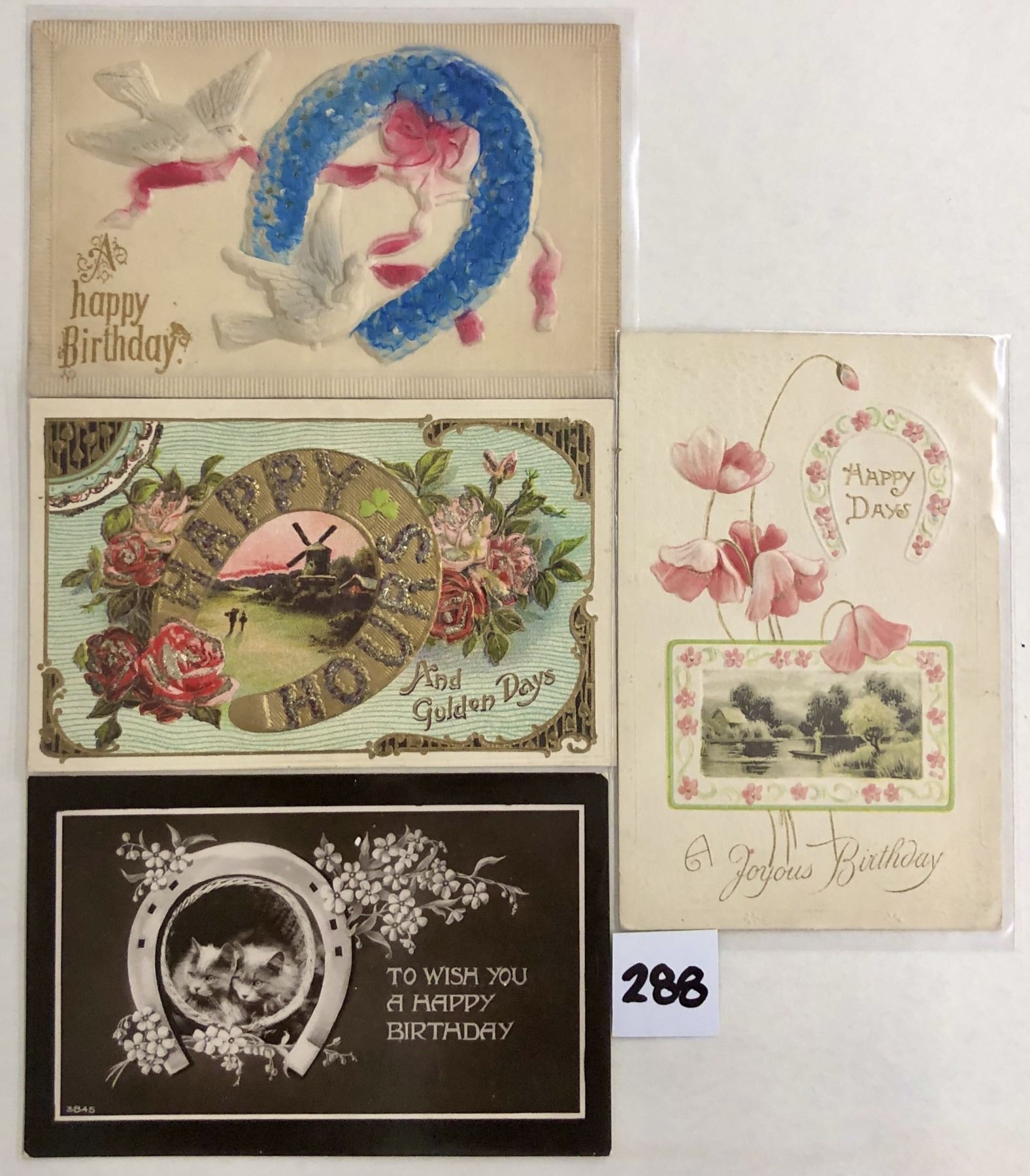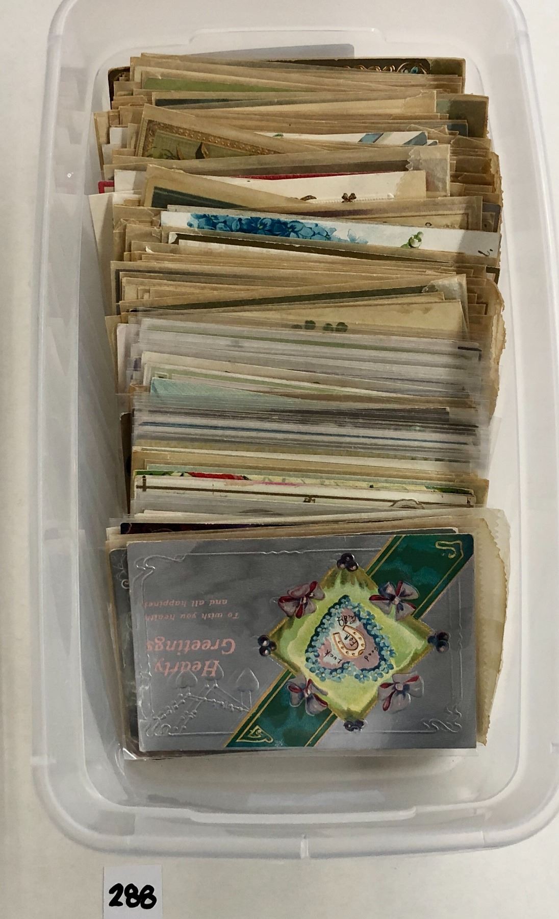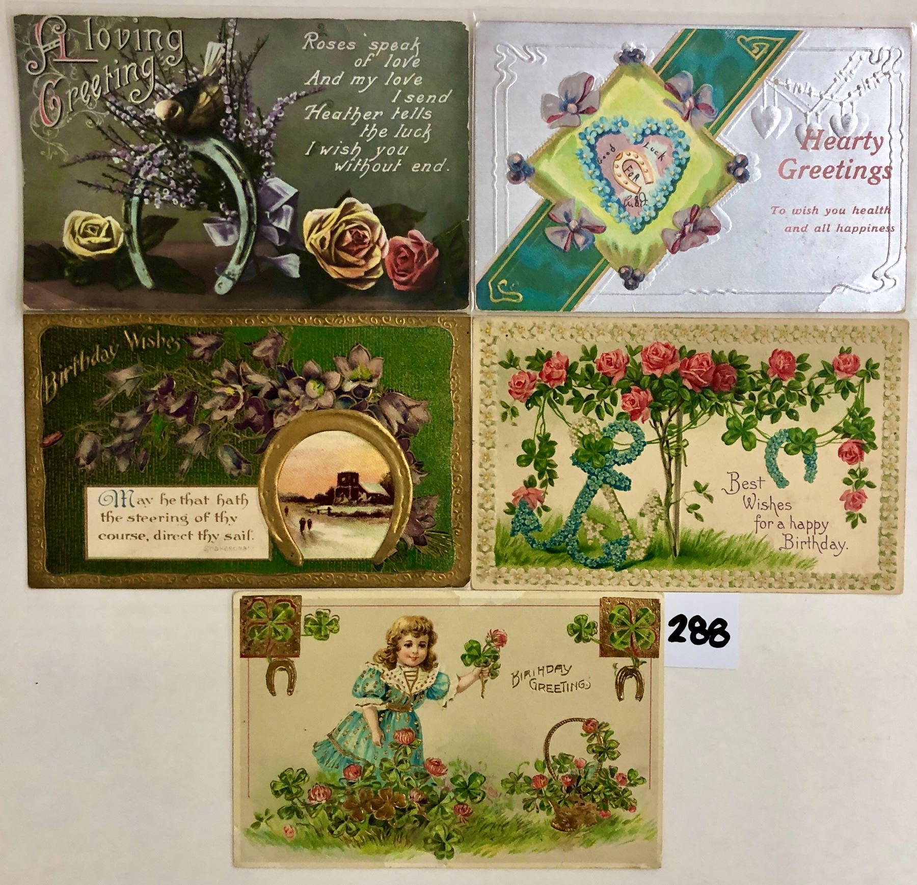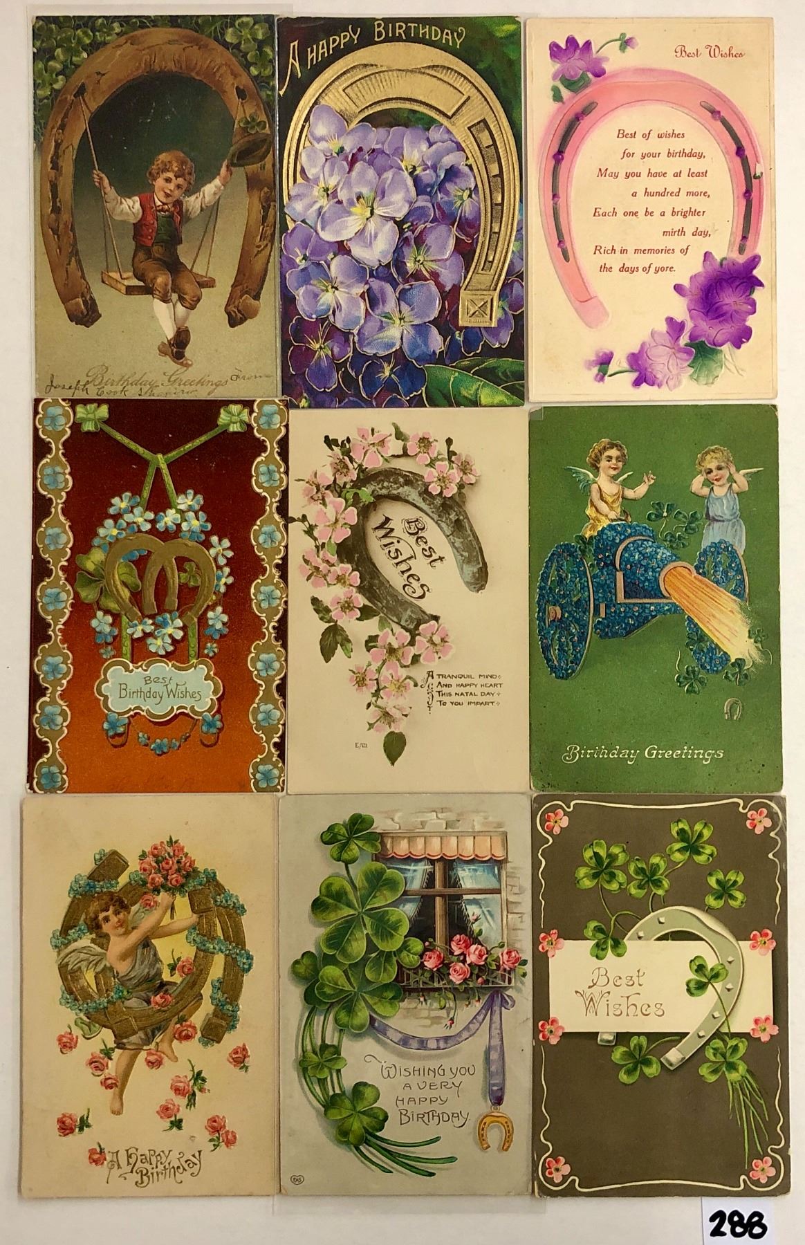 Over 150 holiday greeting postcards with horseshoes.