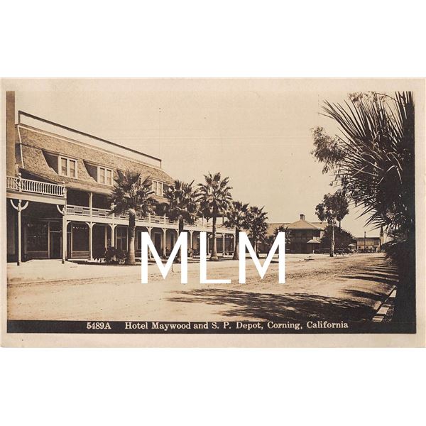 Hotel Maywood & S.P. Depot Corning, California Photo Postcard