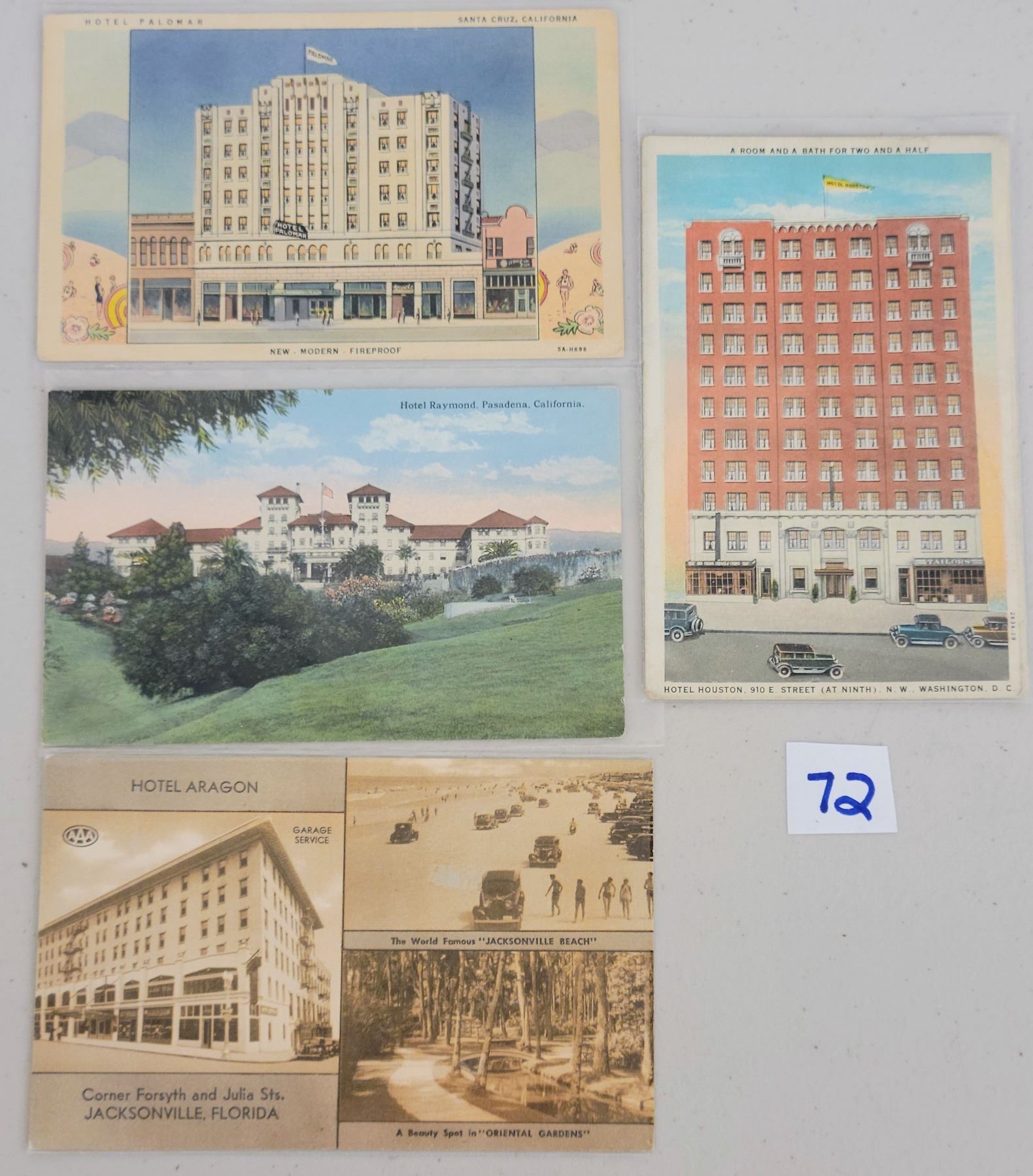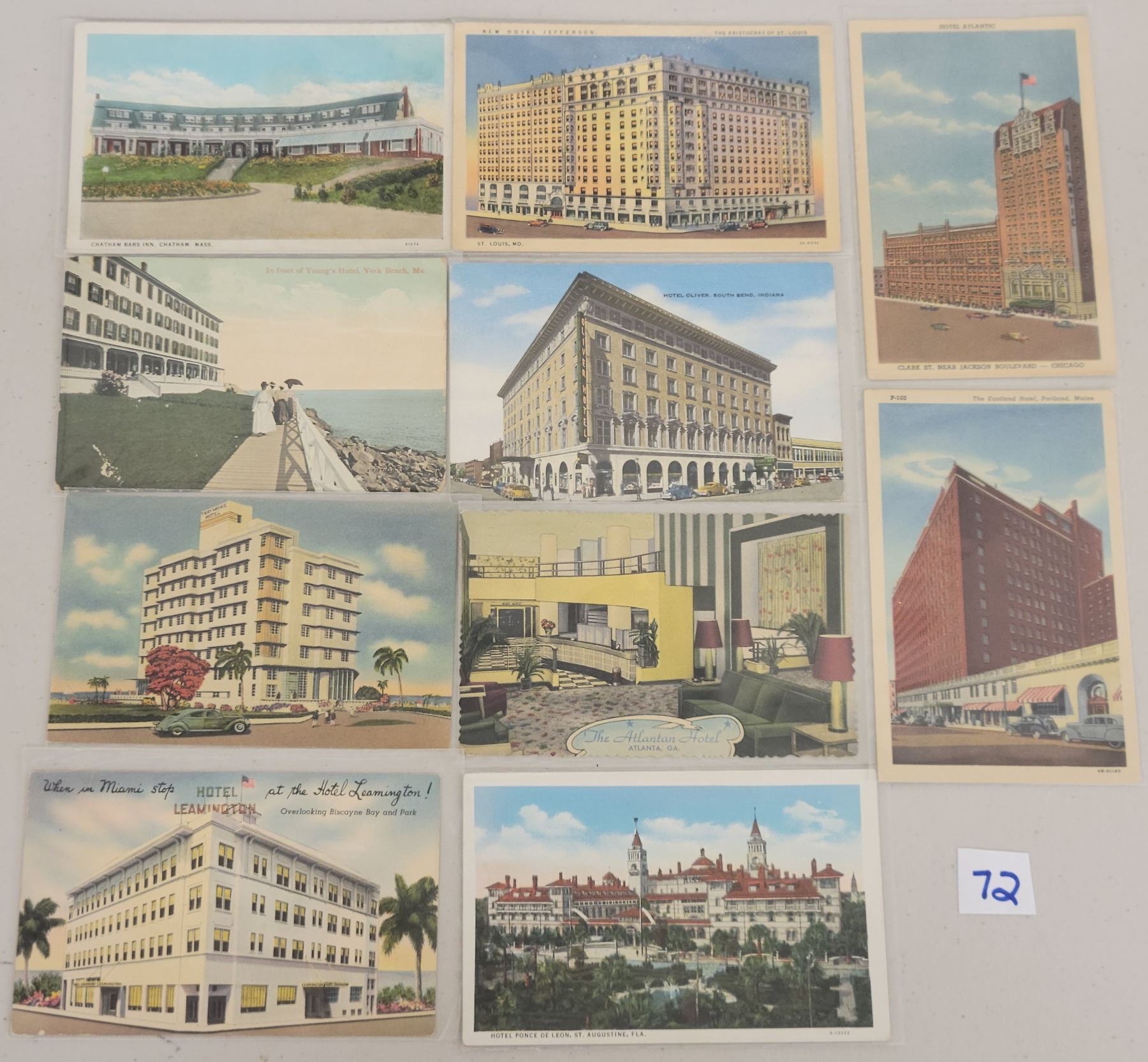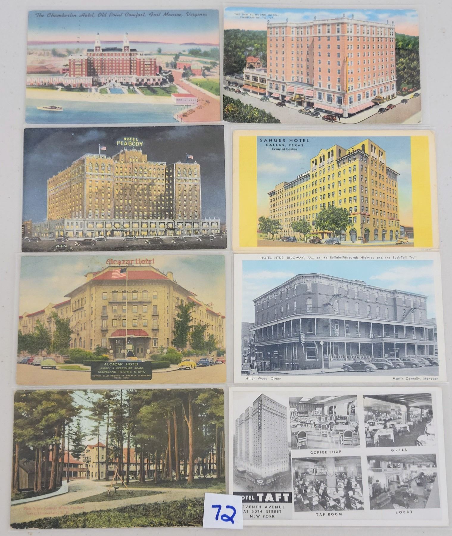 Approx. 215 hotel postcards in sorted states. Early to linen.