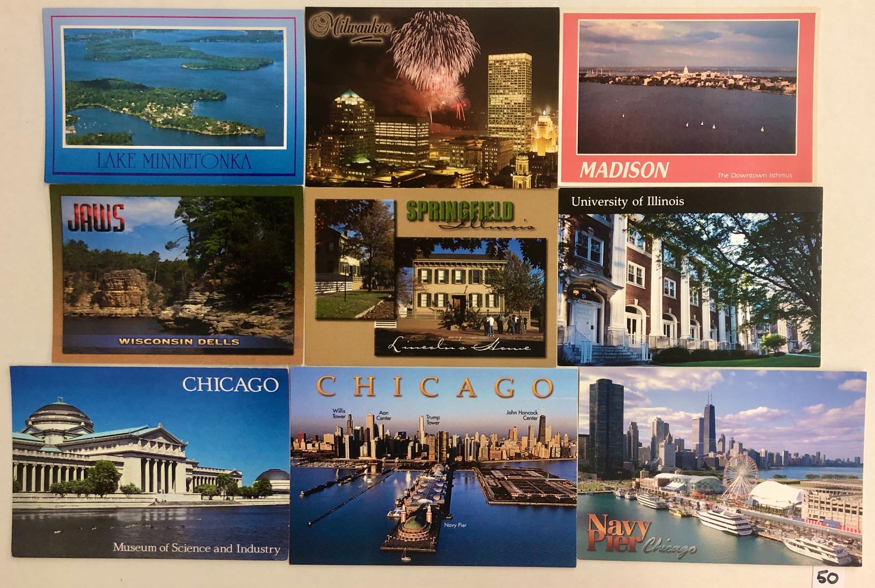 Over 500 IL, MN, & WI postcards. Continental chrome.