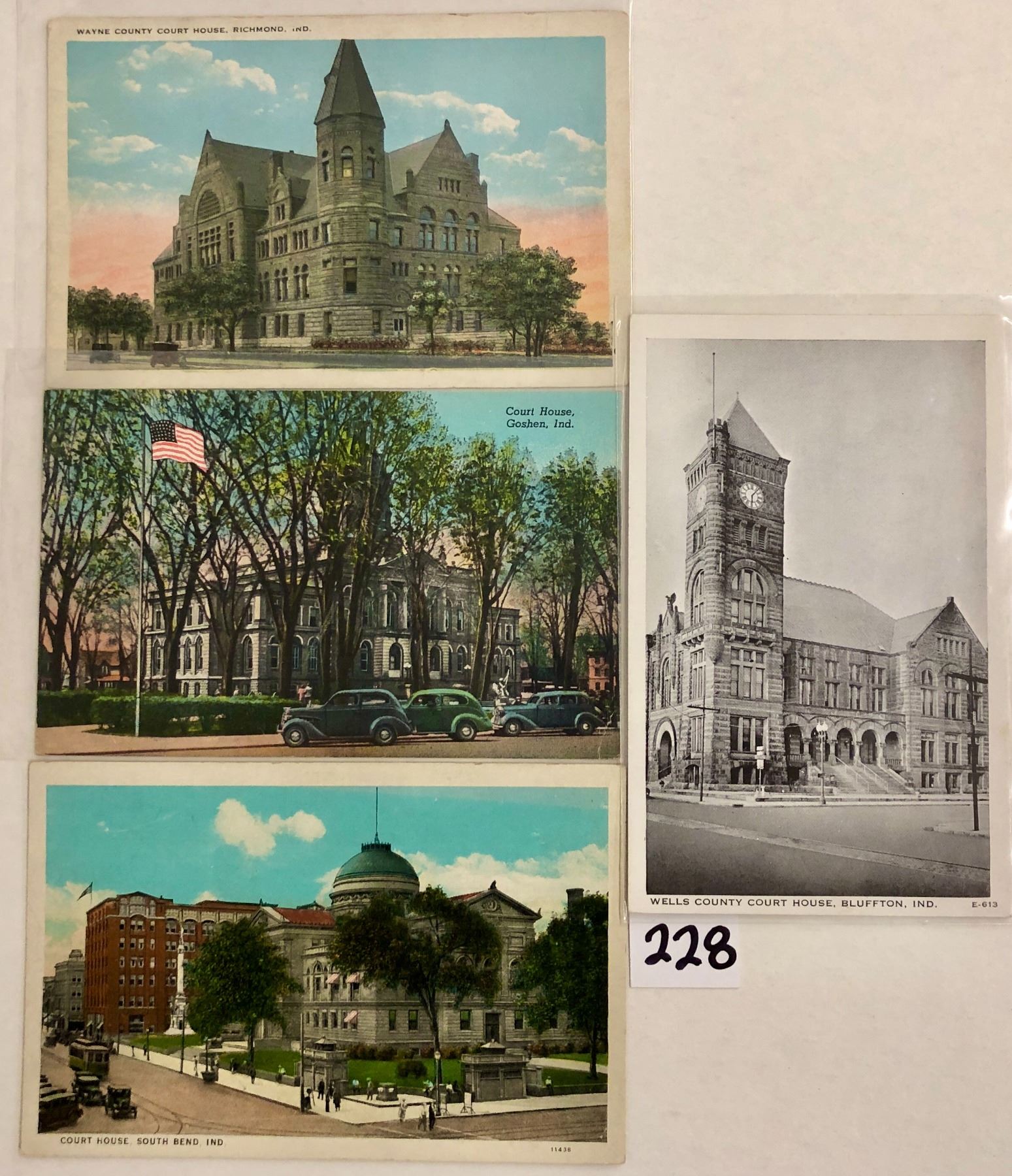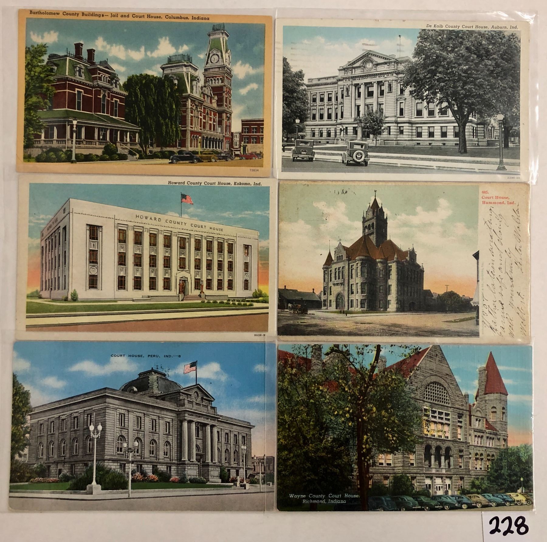 29 IN court house postcards. Early to linen.