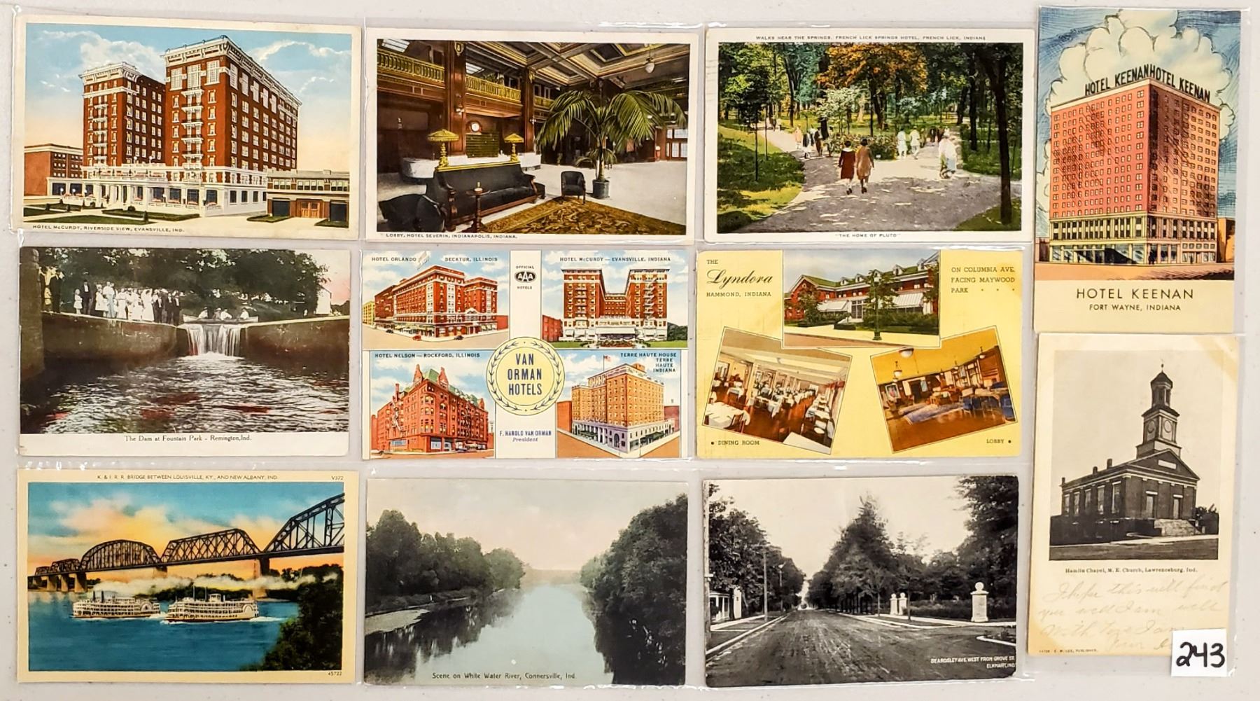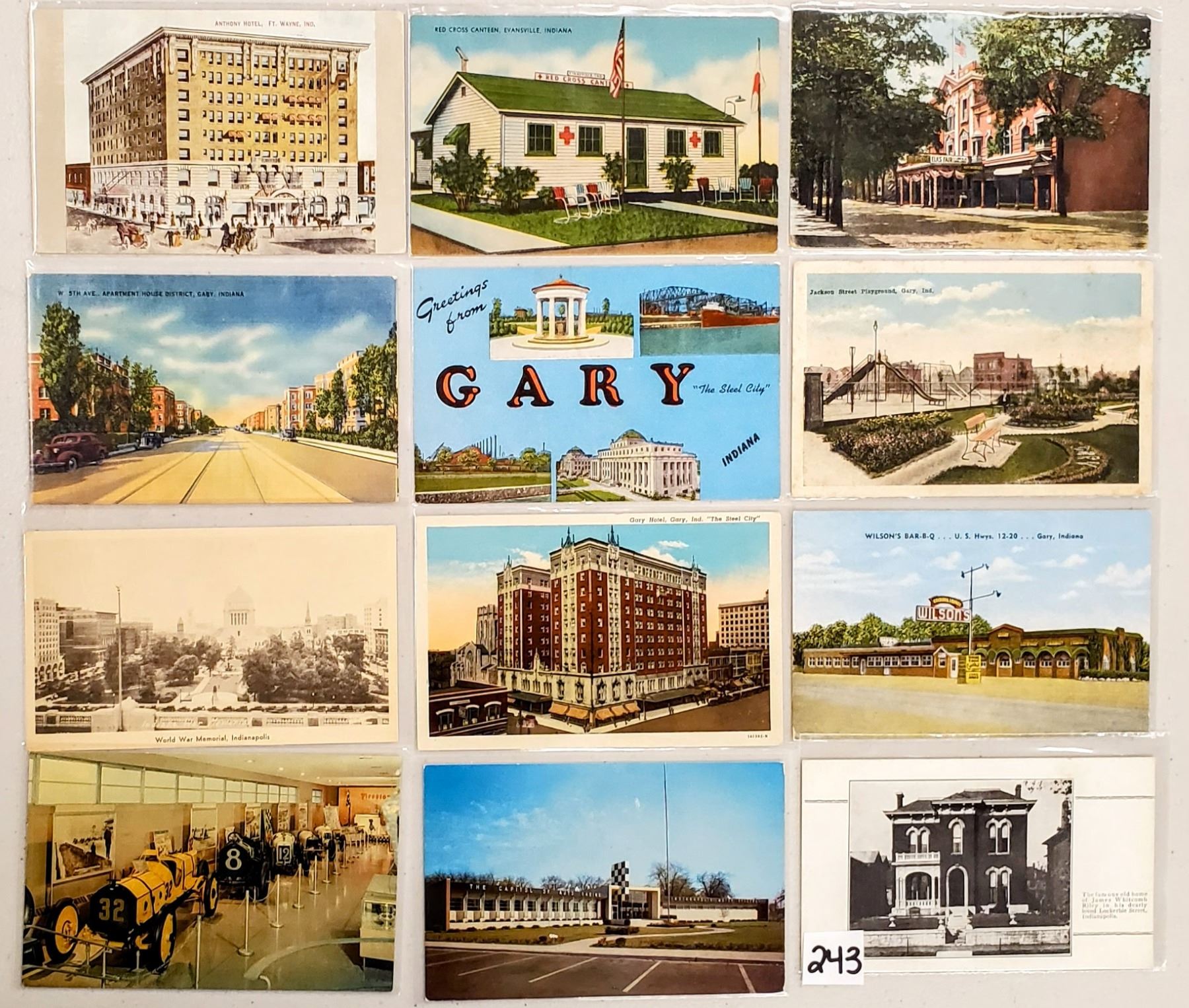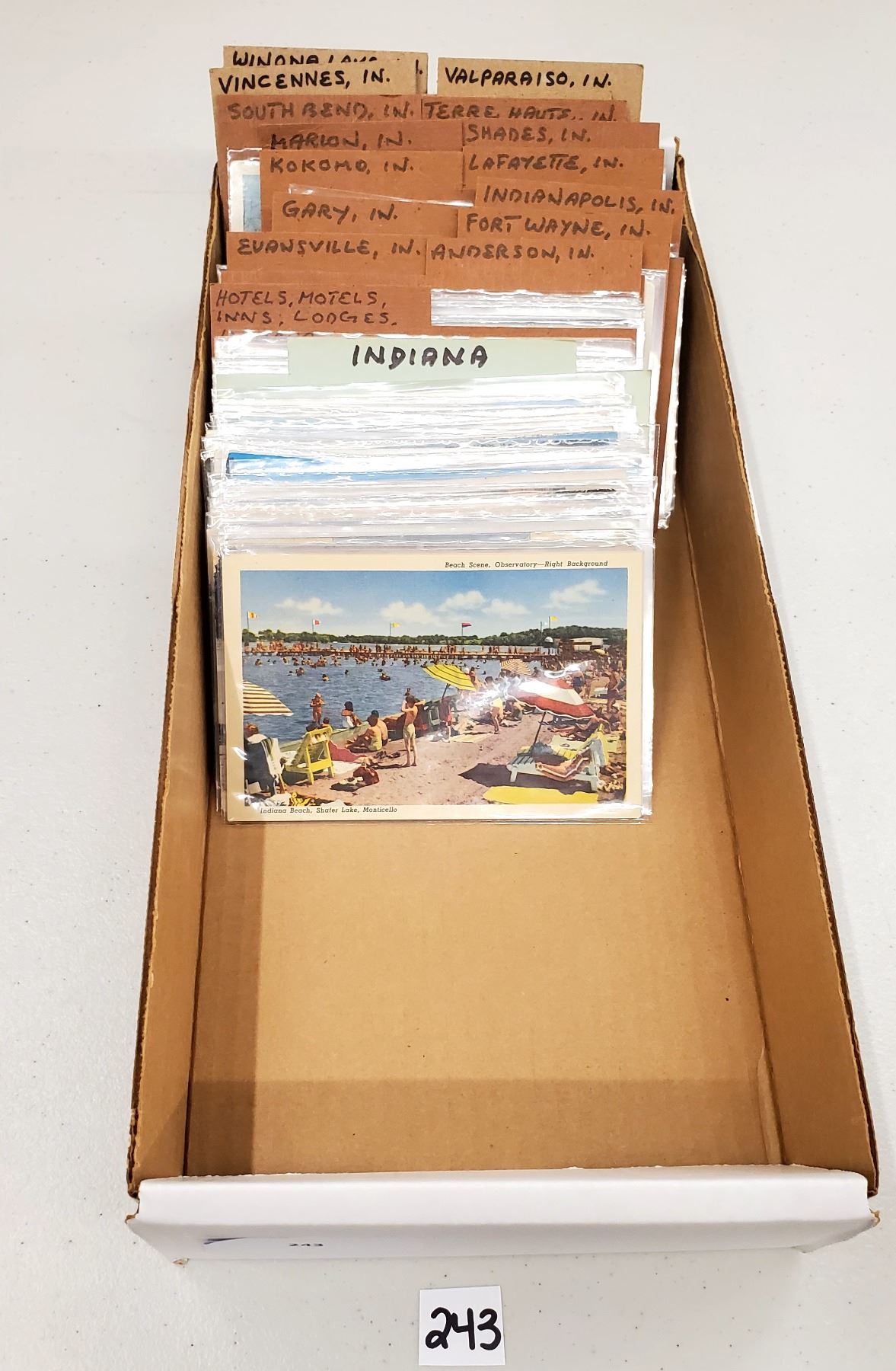 Approx. 180 IN postcards sorted. Over 10 towns. Early to standard size chrome.