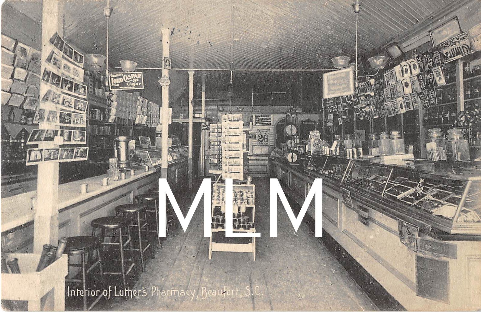 Interior Luther's Pharmacy Postcard Rack Beaufort, South Carolina Postcard
