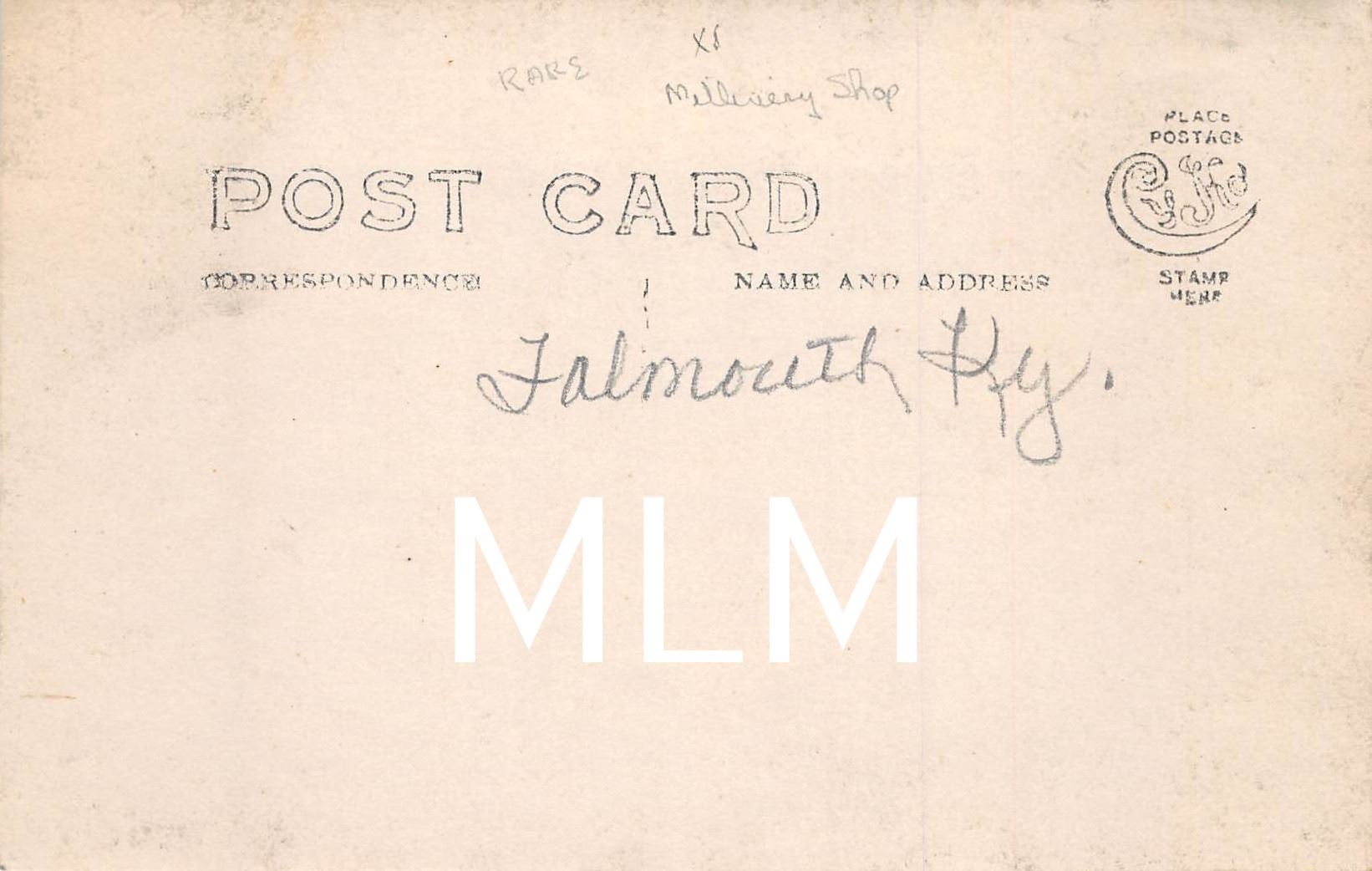 Interior of Ladies Hat & Clothing Store Real Photo Postcard Falmouth Kentucky in Pencil on Back