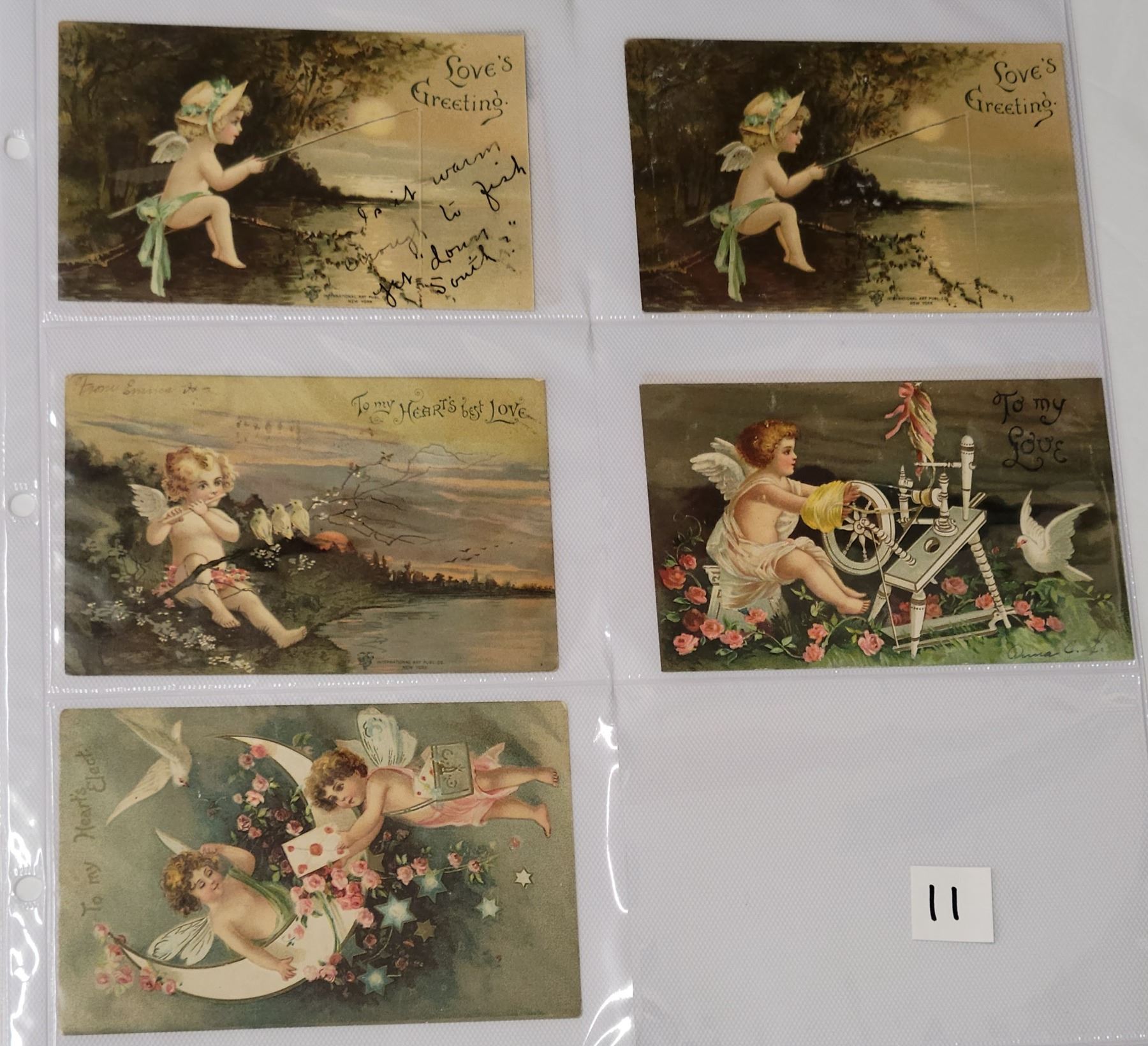 Approx. 115 Valentine postcards by International Art. Early.