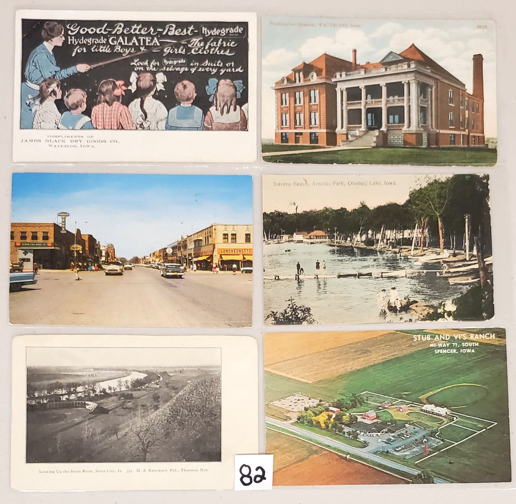 Over 150 IA postcards. Sorted into 20+ towns. Early to standard size chrome.