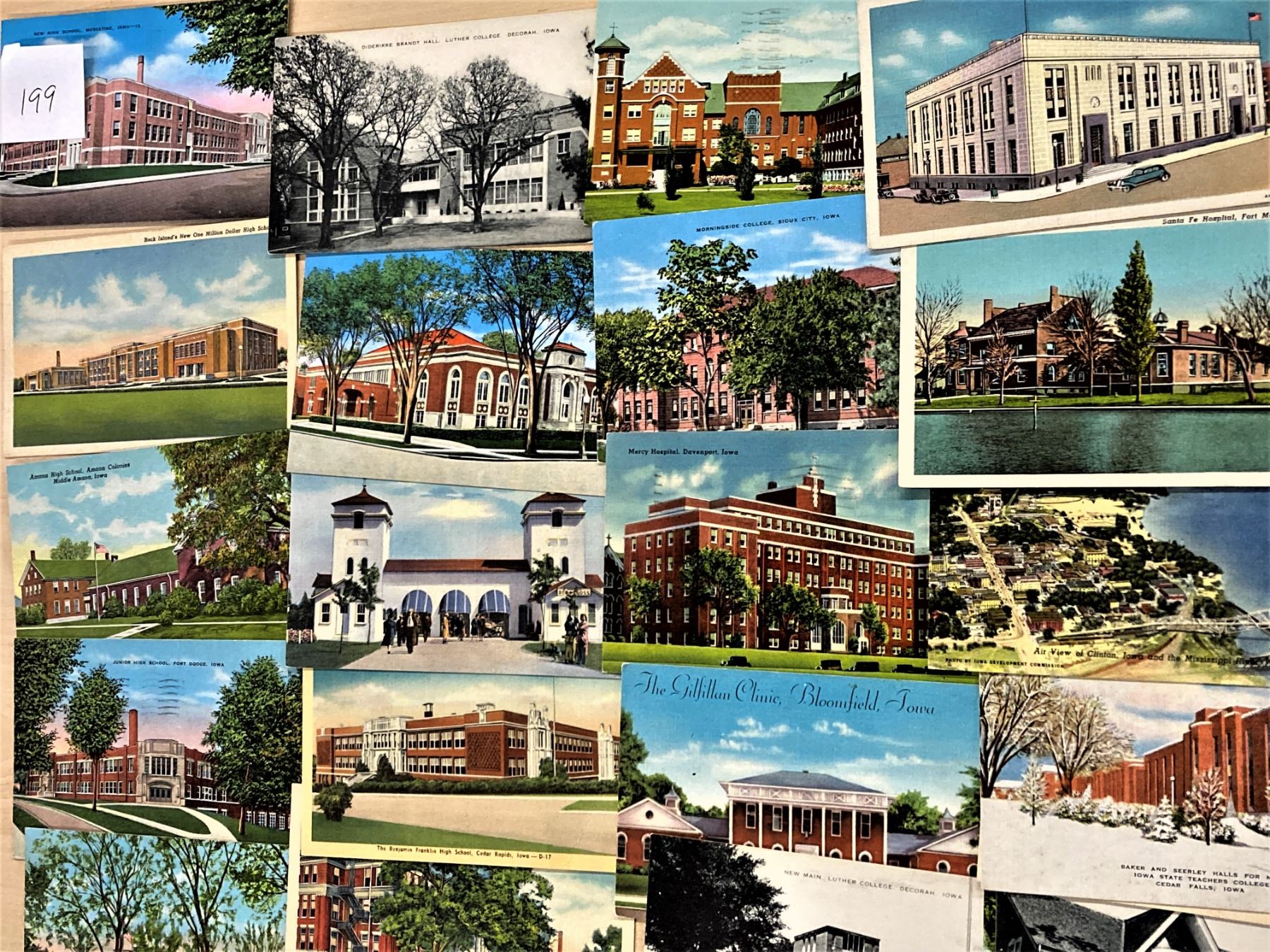 Over 250 cards of Iowa. Some real photos. Over 20 towns. Early to standard size chrome.