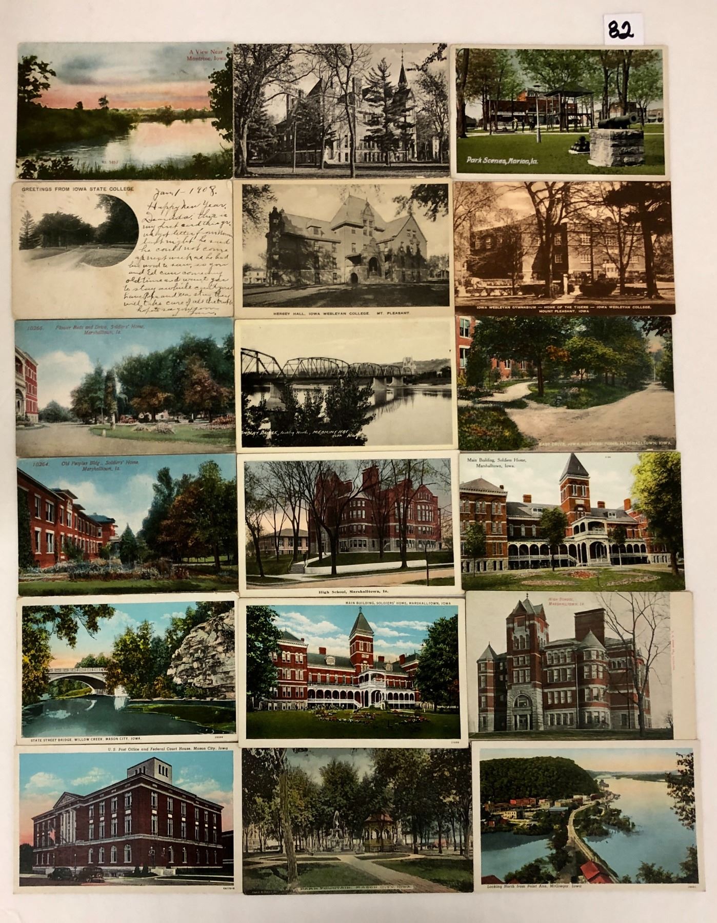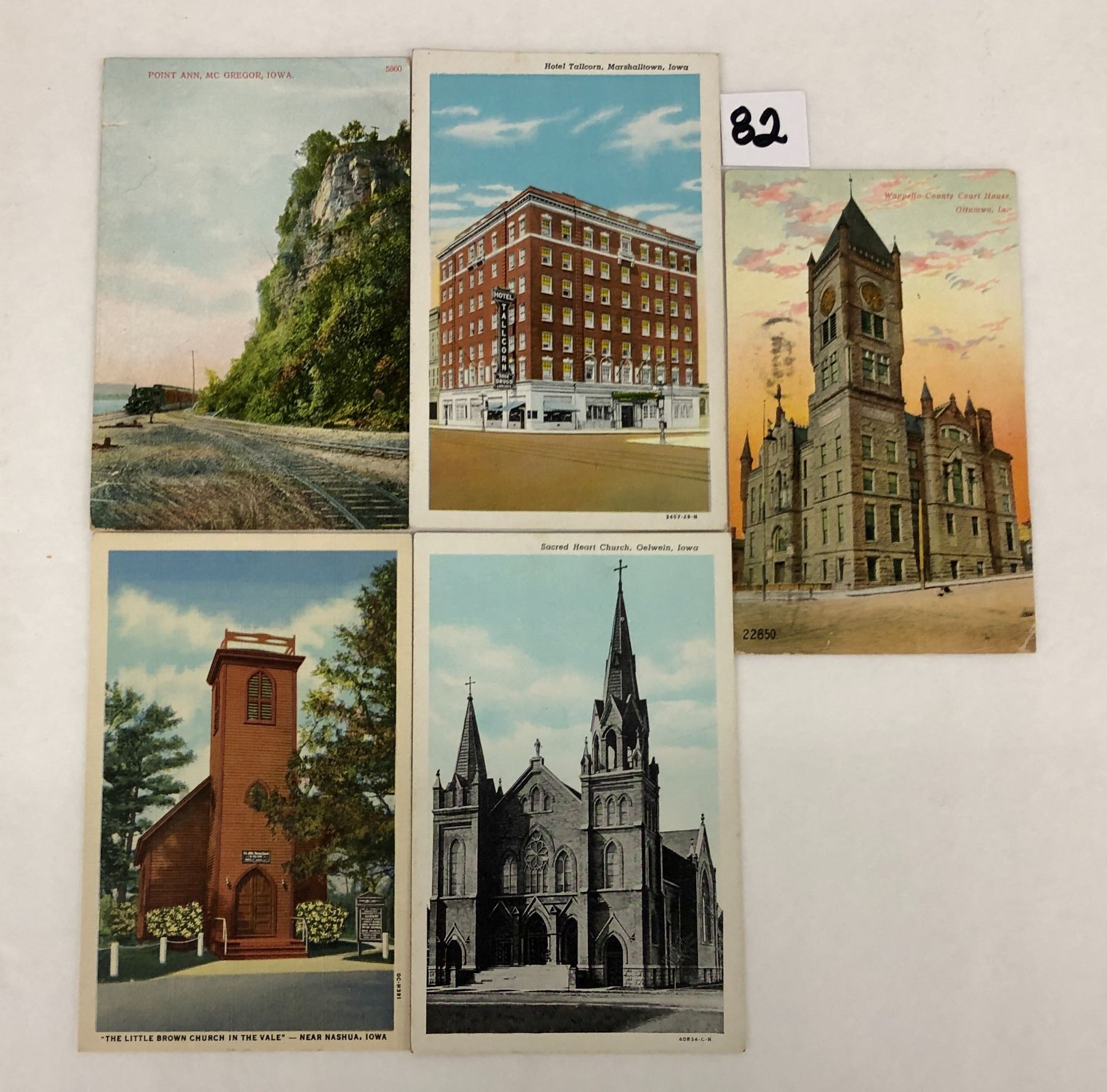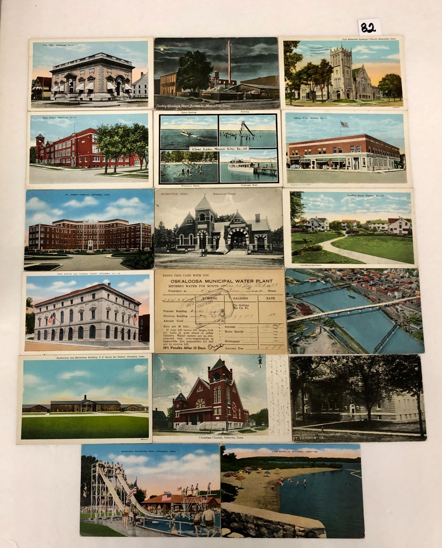 Approx. 450 Iowa postcards. Early to standard size chrome, mostly pre chrome. Sorted into over 12 towns.
