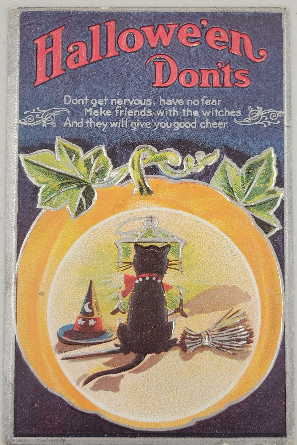 Jackson Halloween Cat on Broom in Pumpkin Holiday Greeting Postcard