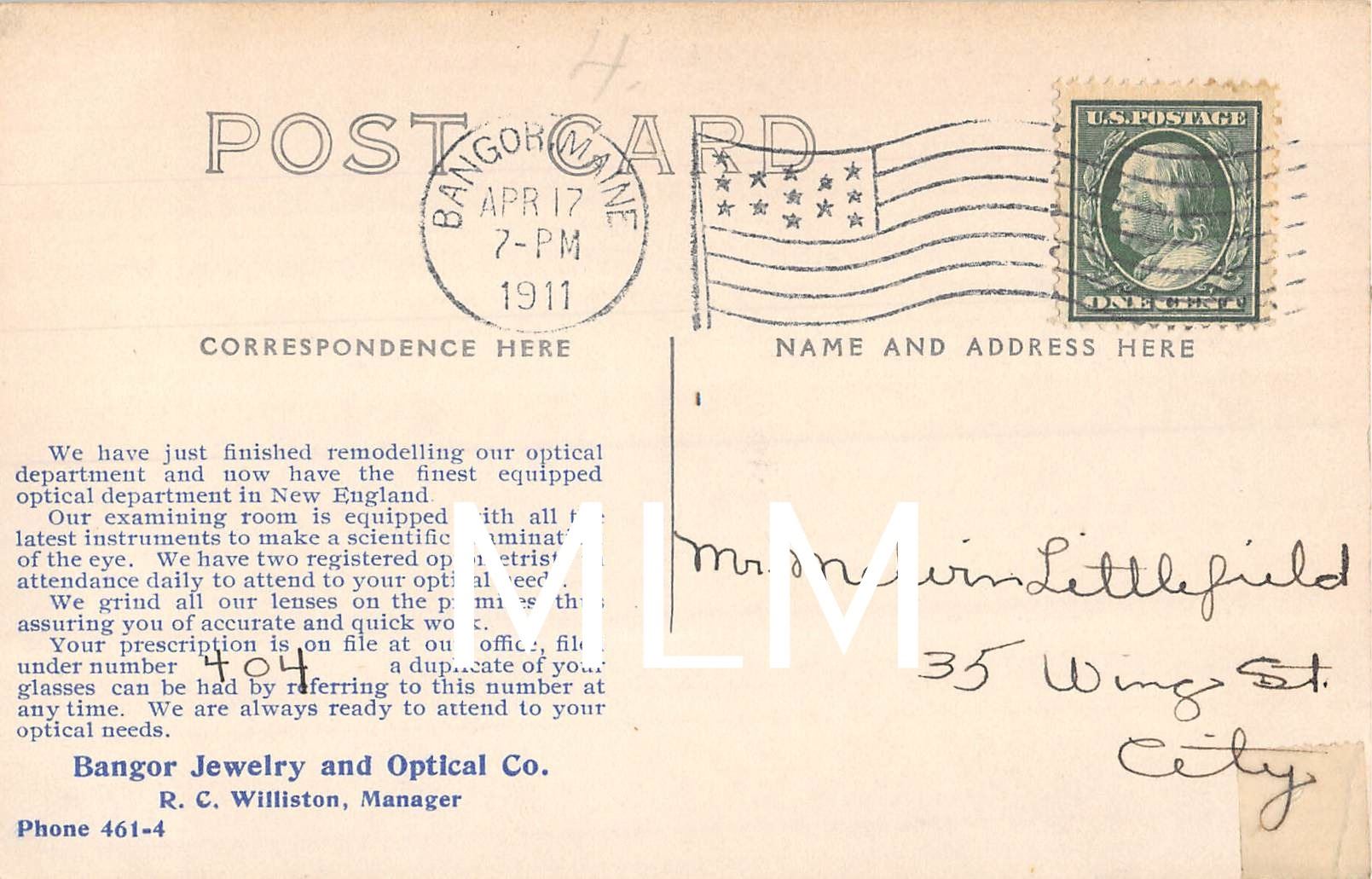 Jewelry & Optical Co's Model Examining Room Int. Bangor, Maine Photo Postcard