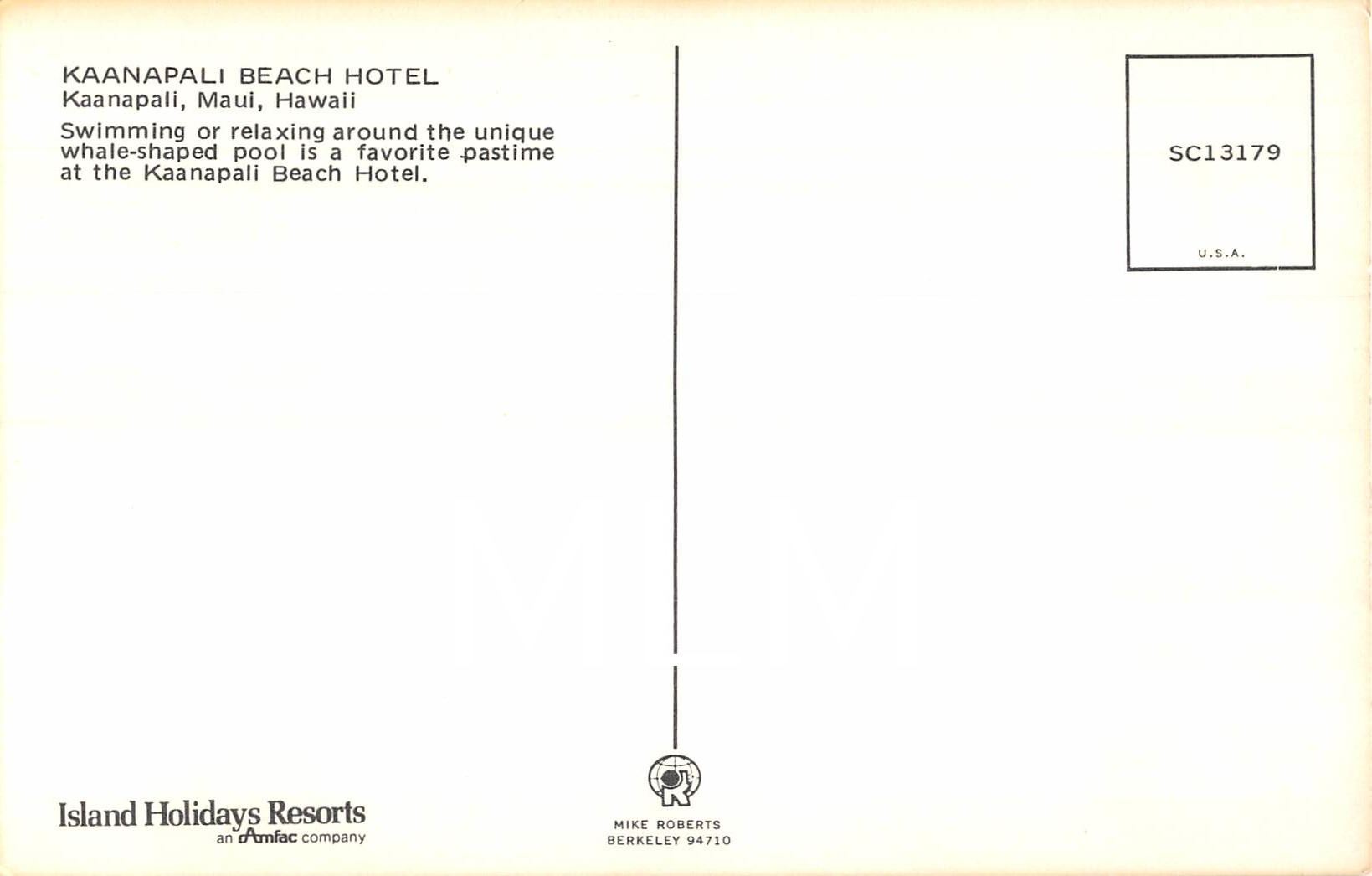 Kaanapali Beach Hotel, Maui, Hawaii Postcard