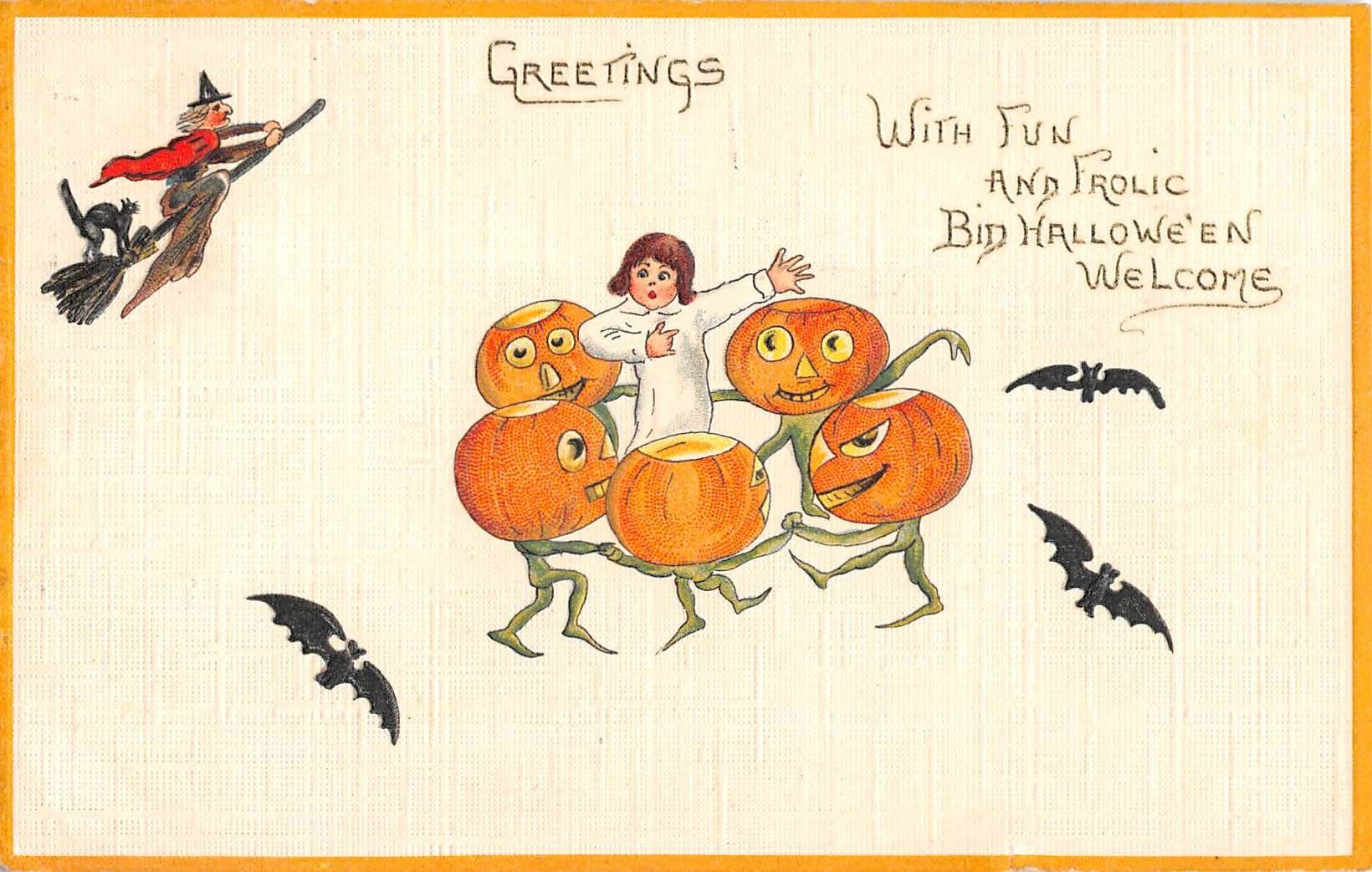 Leubrie Elkus Pumpkins Dancing Around Child Halloween Postcard