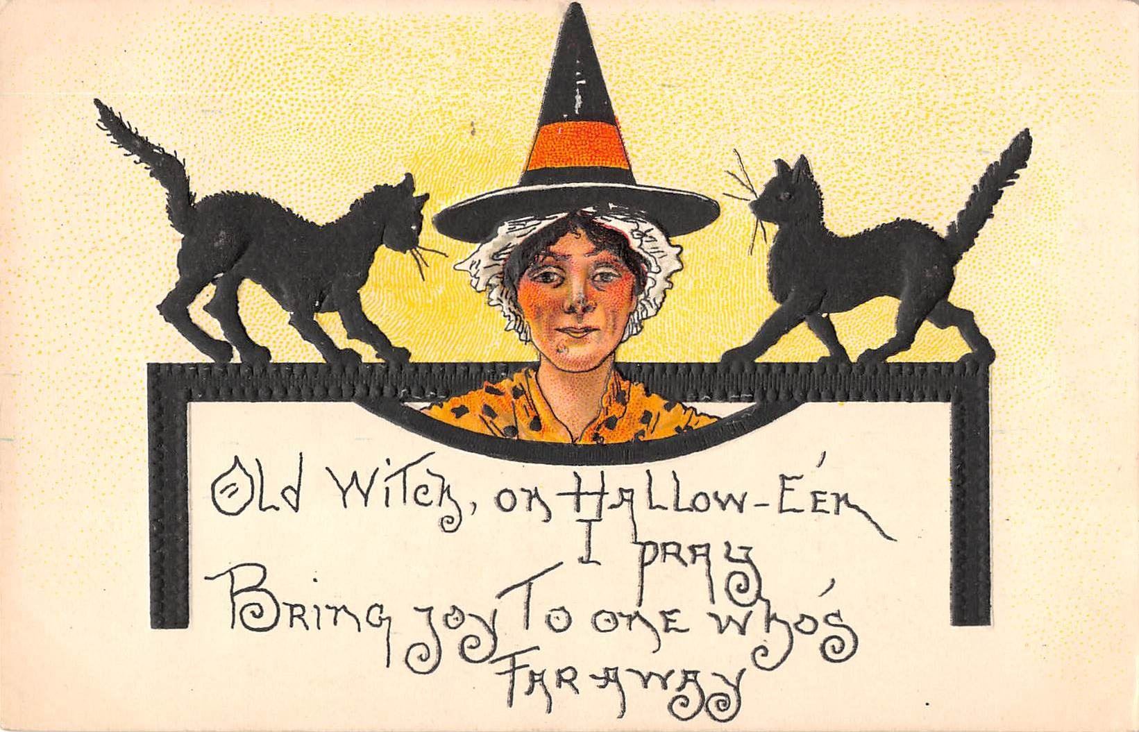 Leubrie & Elkus Witch & Black Cats Halloween Postcard