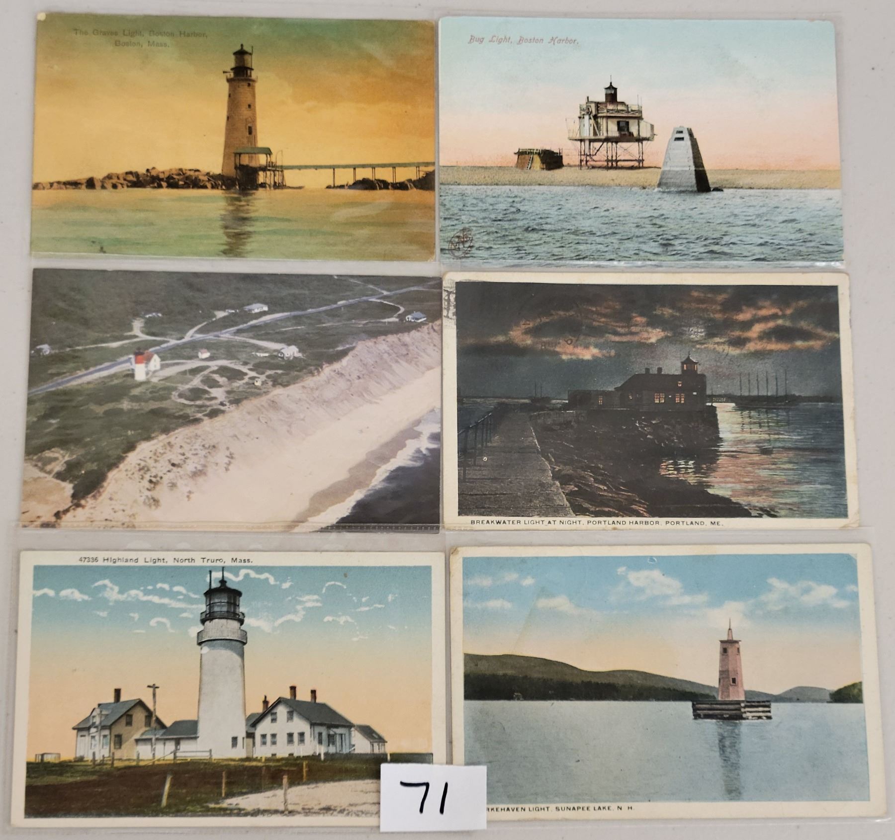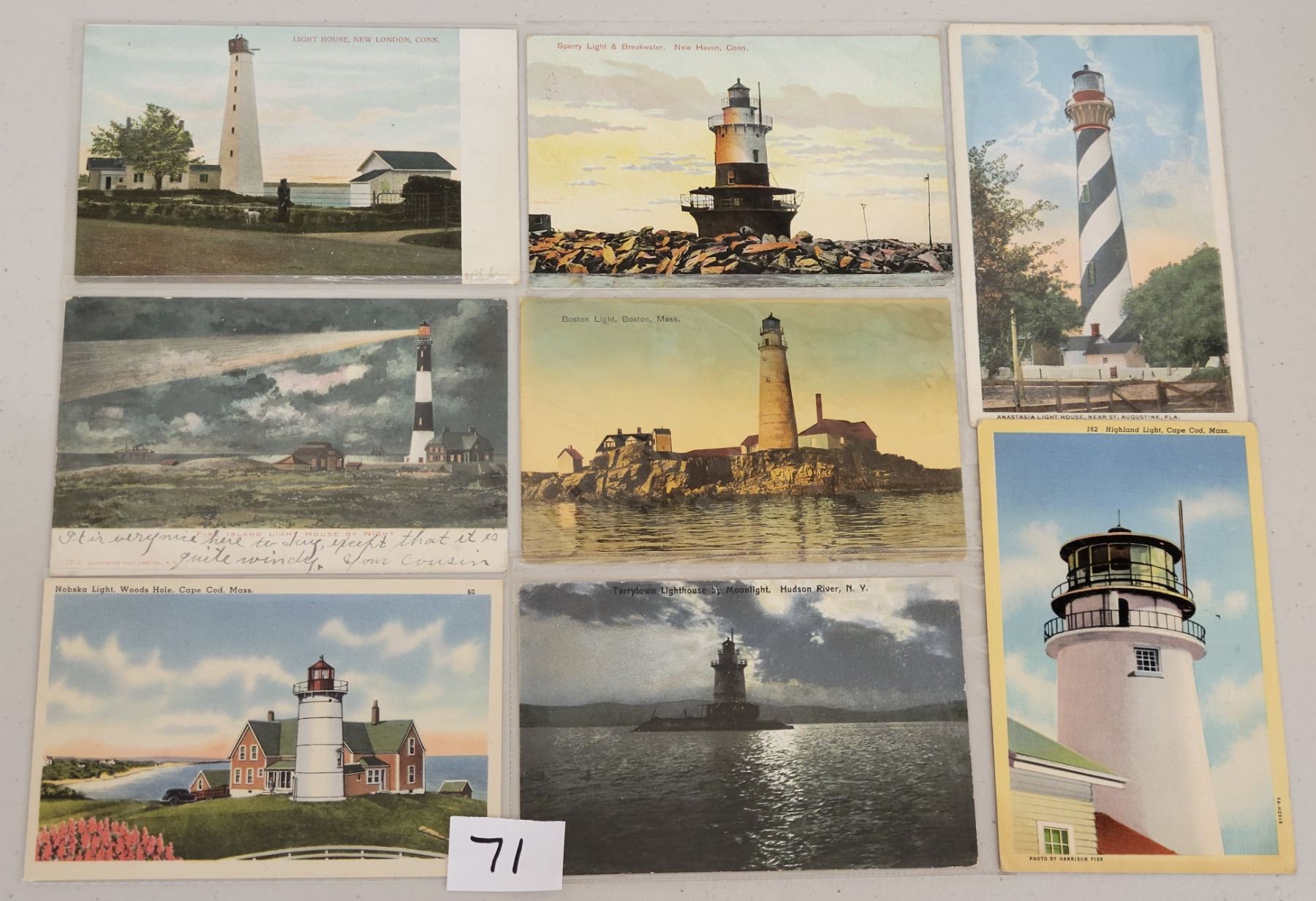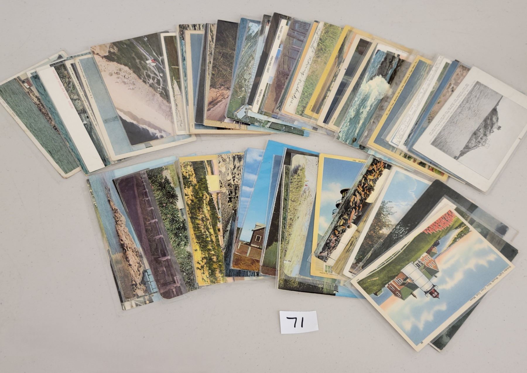 Over 70 early to standard size chrome lighthouse postcards.