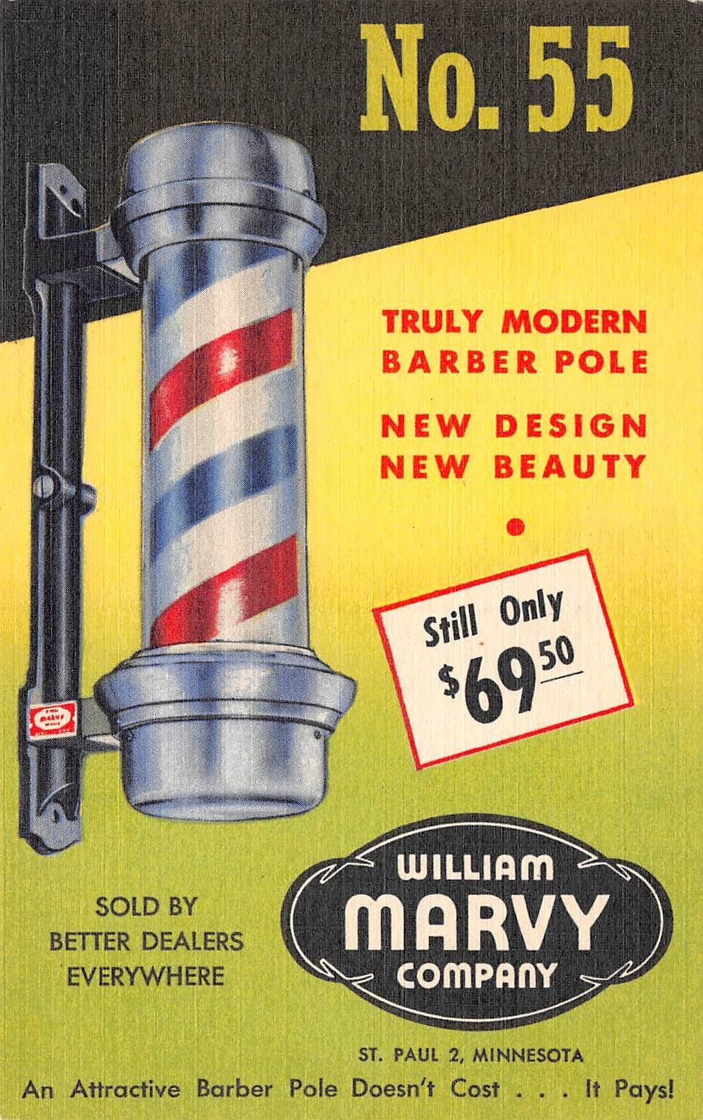 Linen Advertising William Marvy Co. Barber Pole St. Paul, Minnesota Card