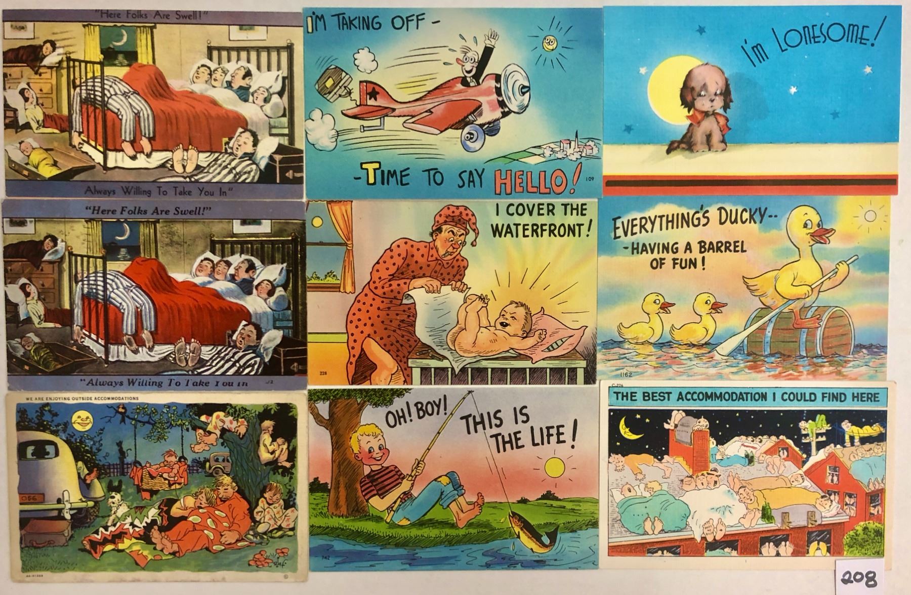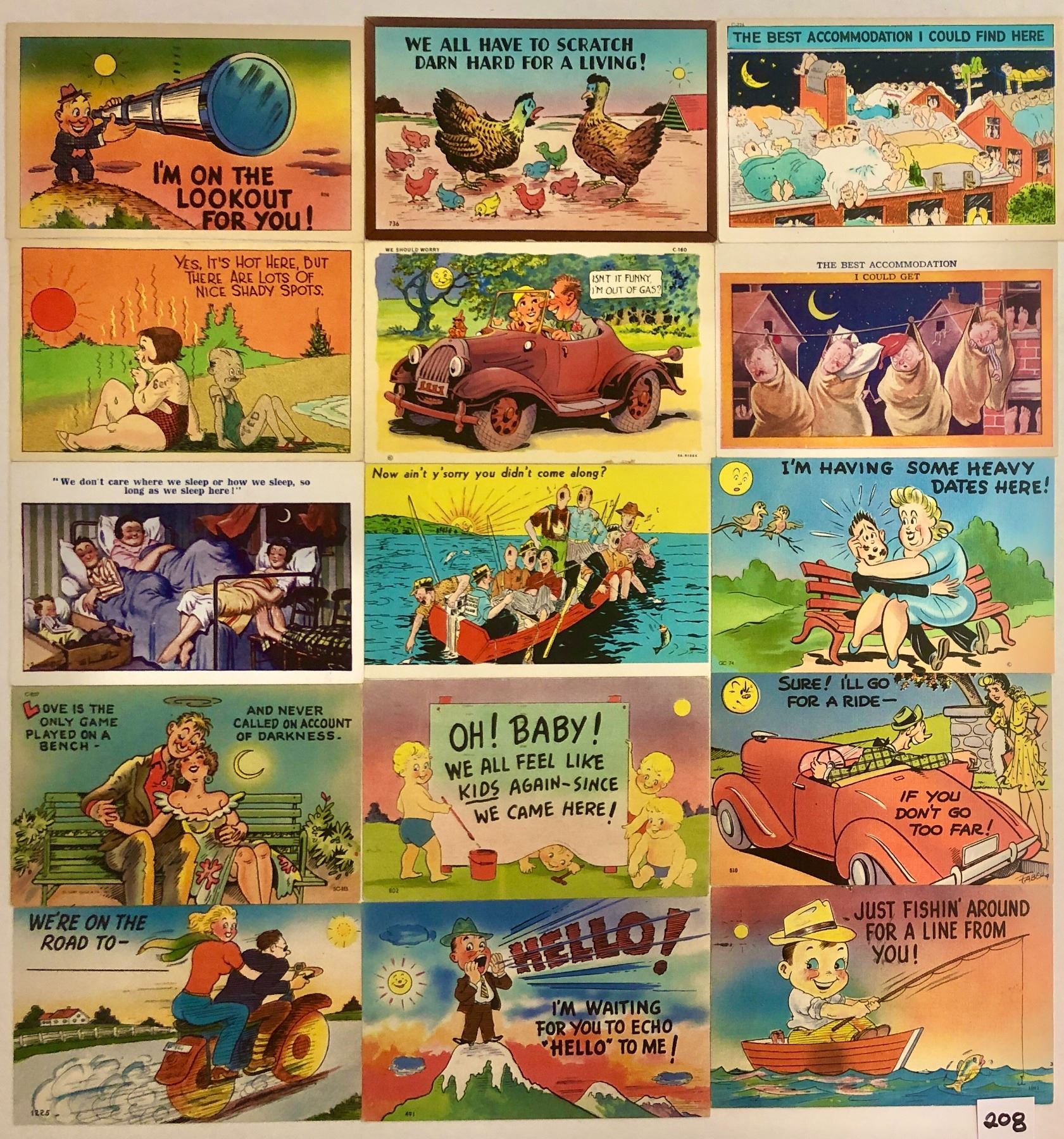 29 Linen comic postcards with moons and suns.