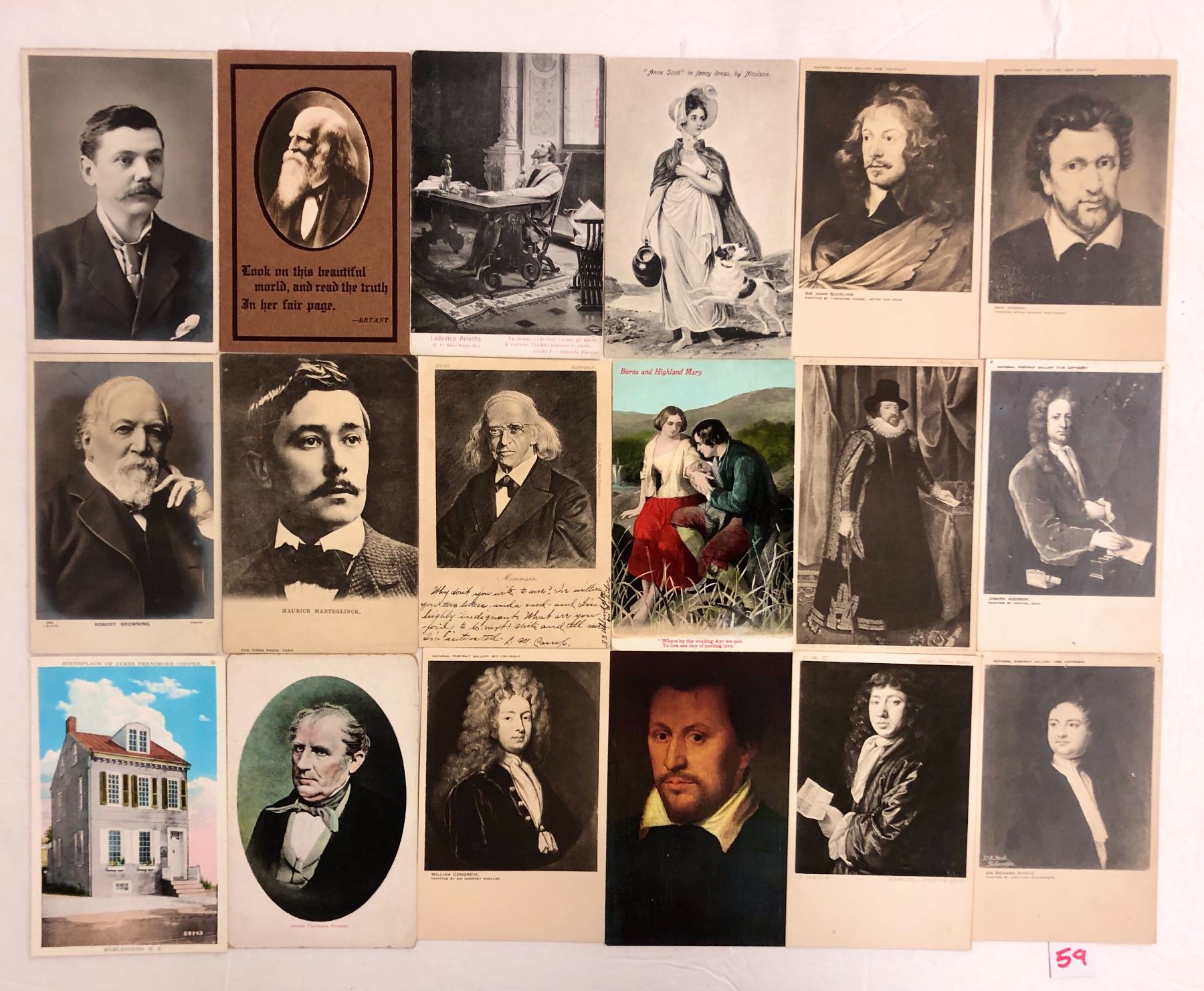 Approx. 230 postcards related to literary. Early.