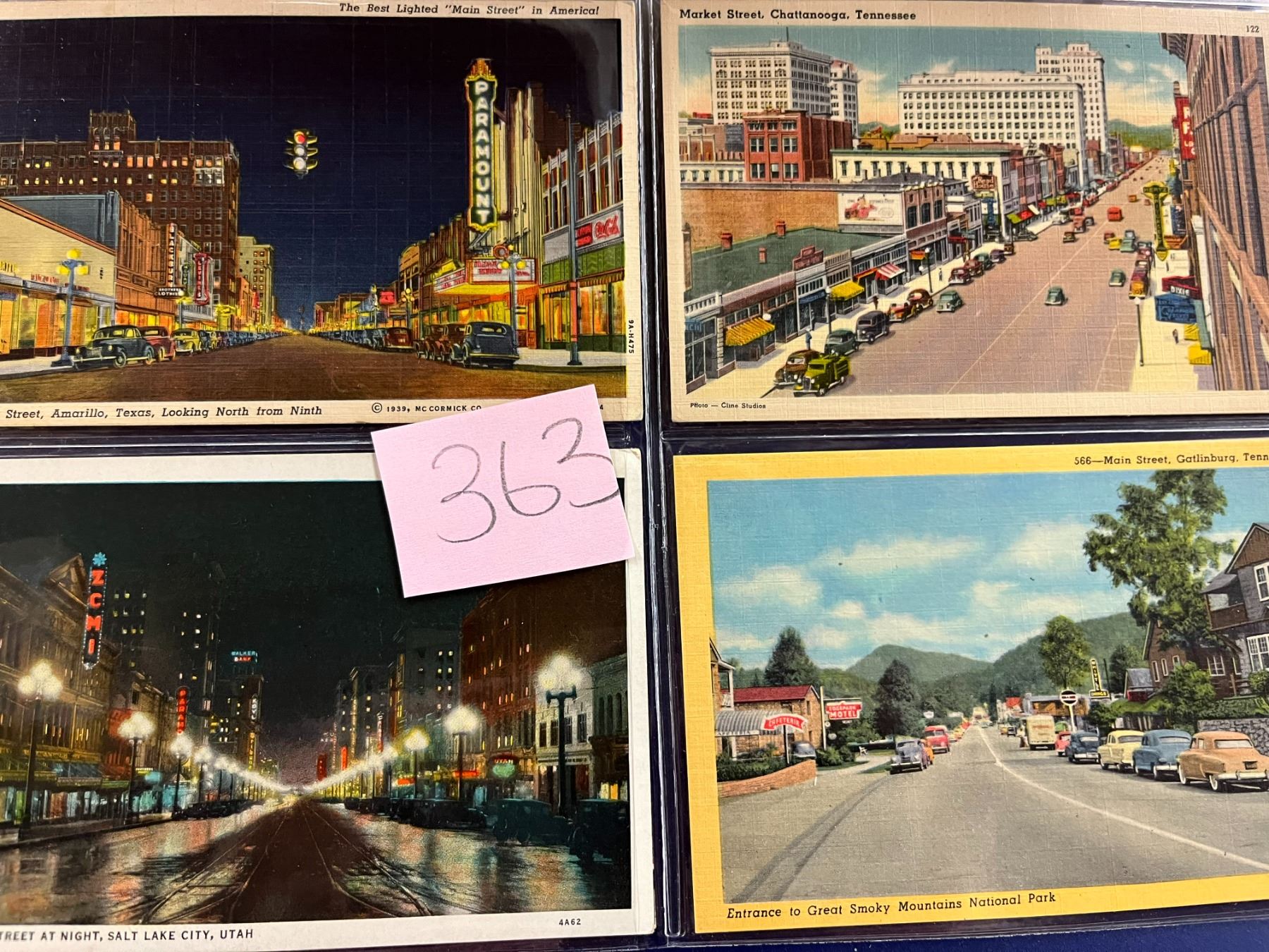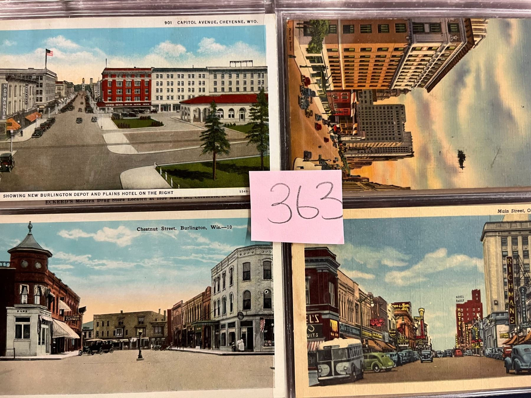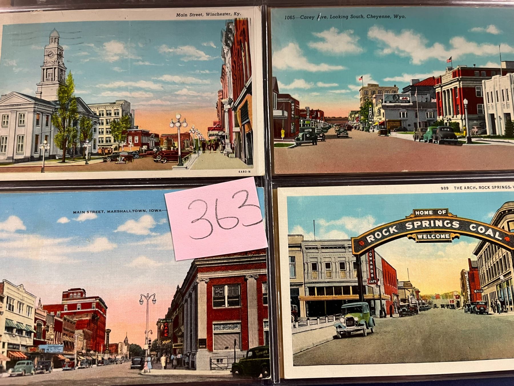 Album of 60 cards from all over US. Wisconsin, Wyoming, New York, Ohio and many other states.