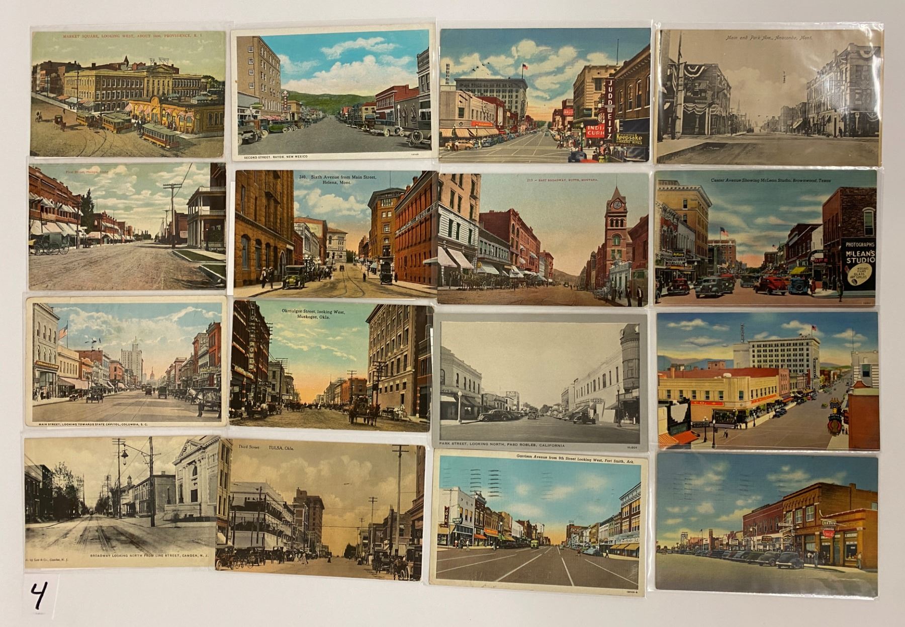 Approx. 70 street scenes. Mostly all (if not all are US). Early to linen.