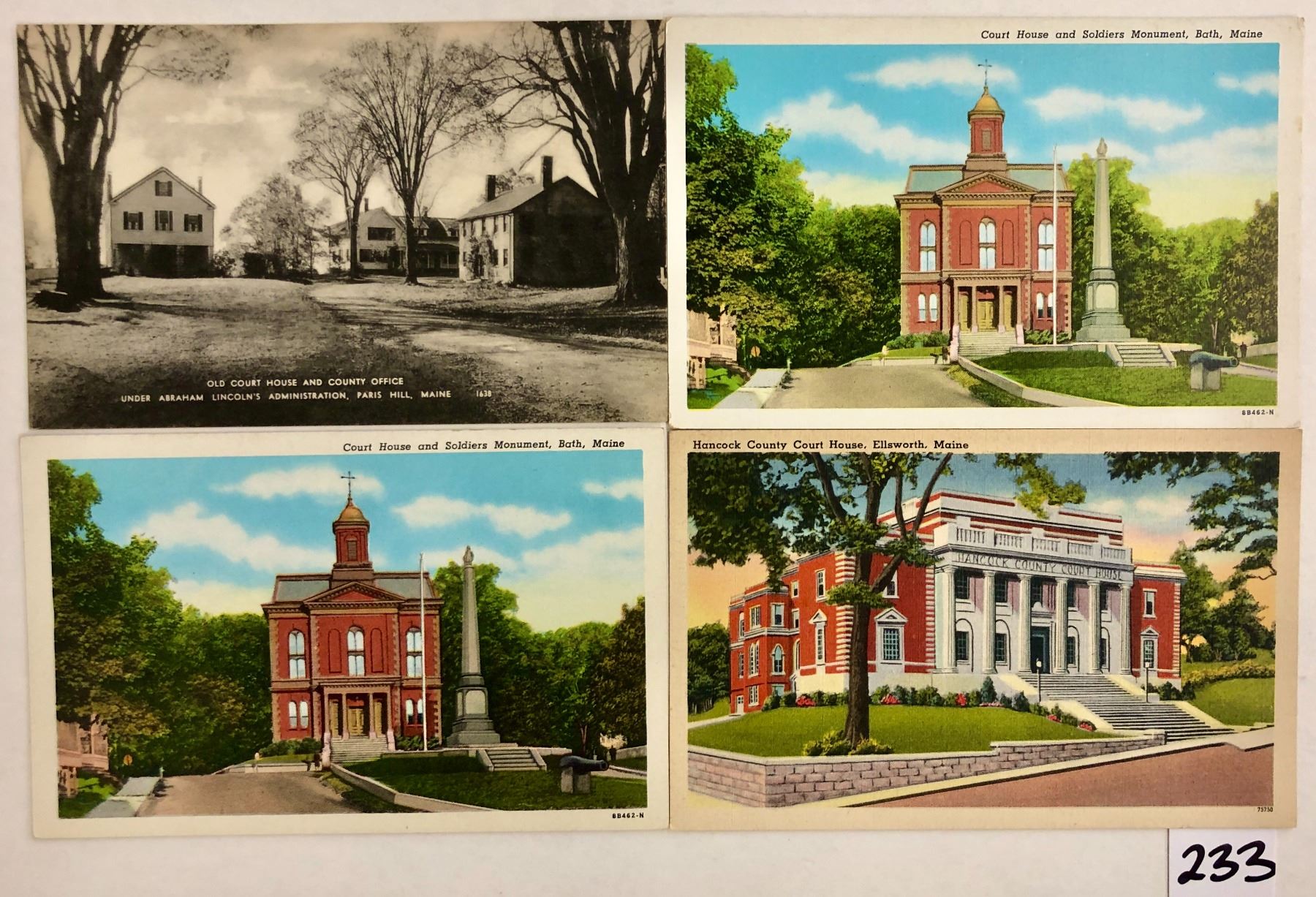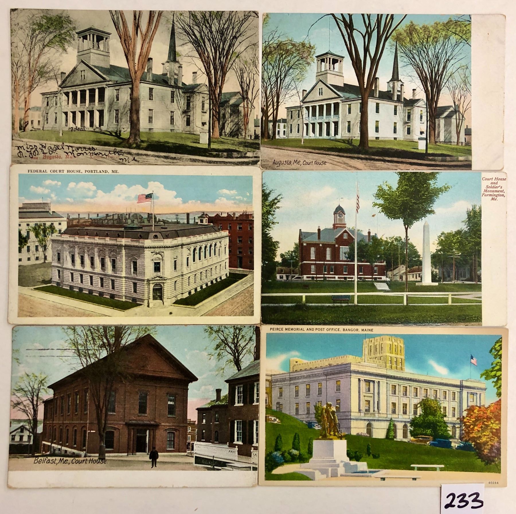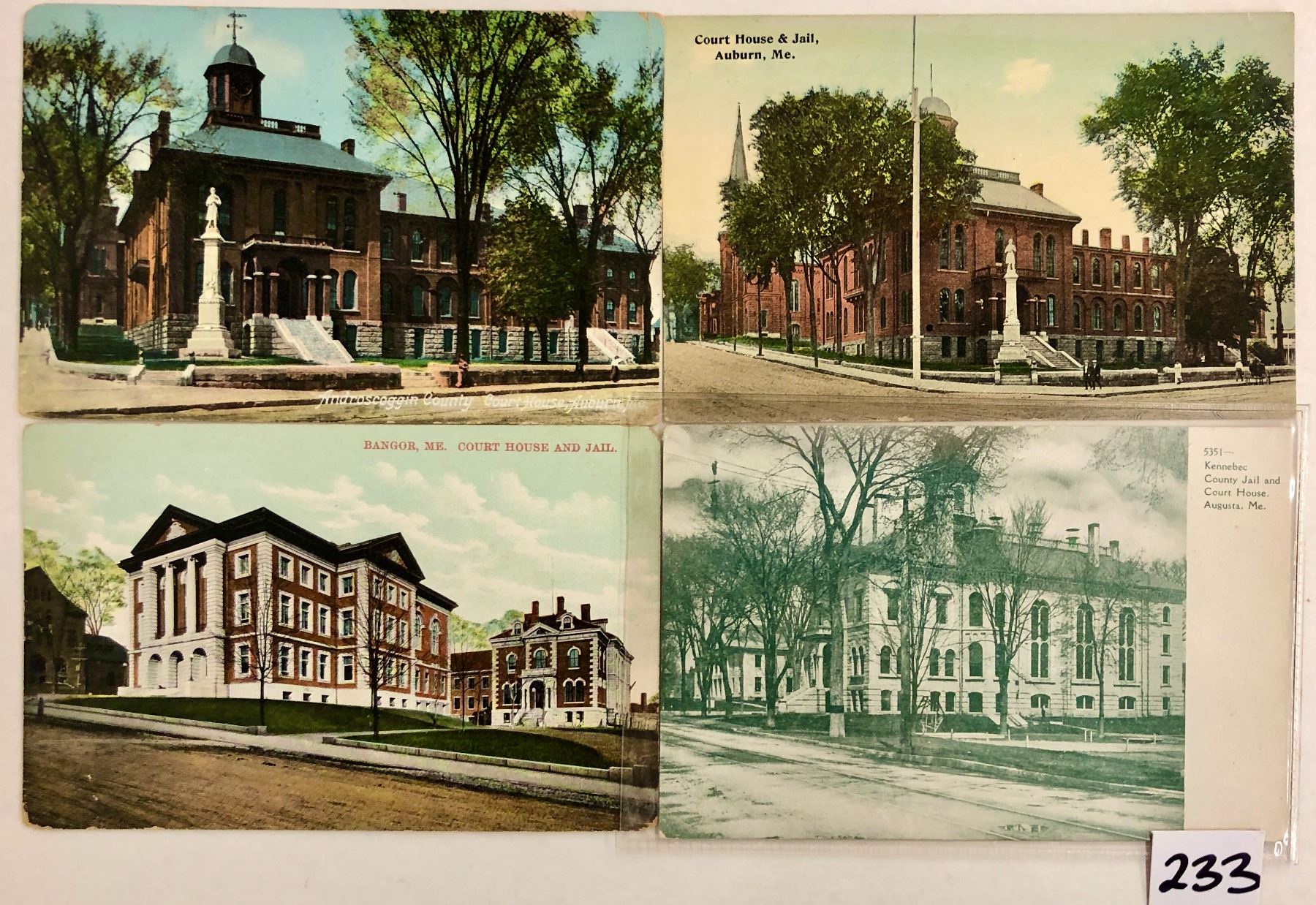 29 ME court house postcards. Early to linen.