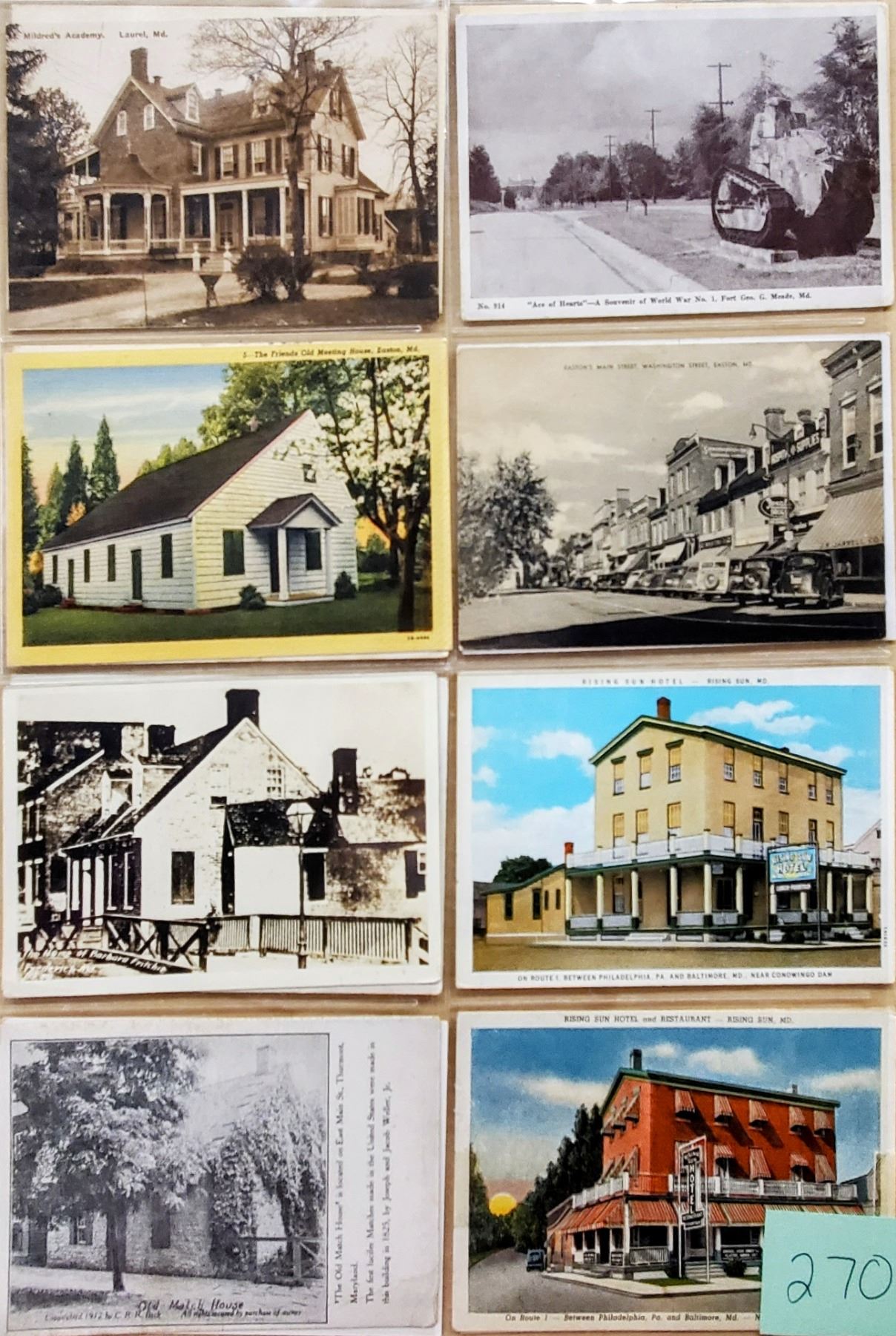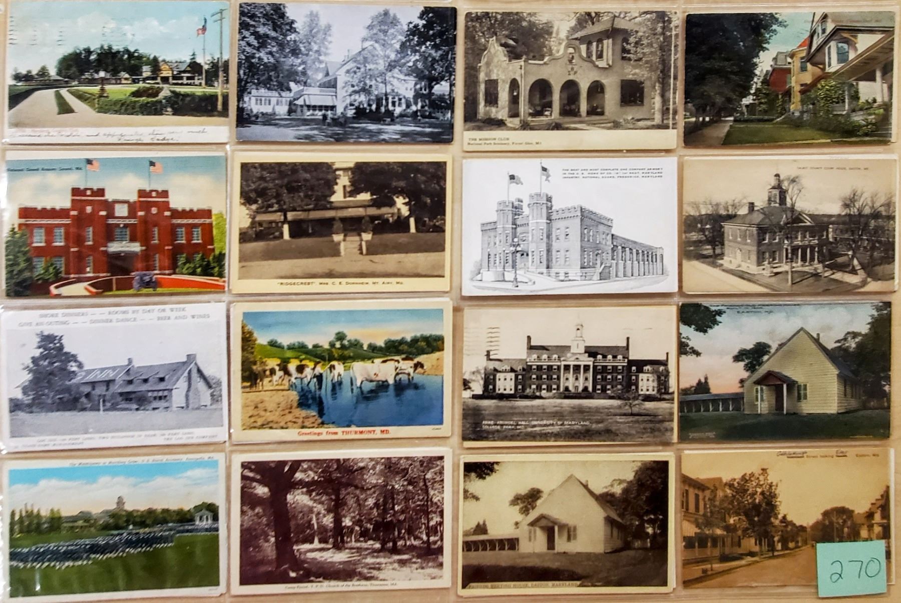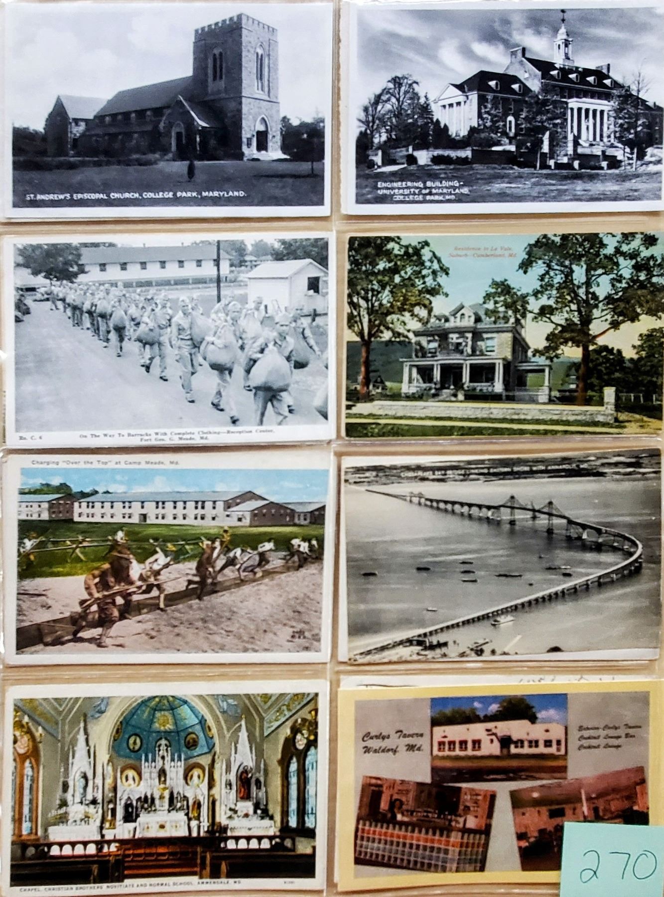 Over 70 MD postcards. Mostly pre linen. Forest Glen, Annapolis, College Park, Elkton, Easton and several other towns.