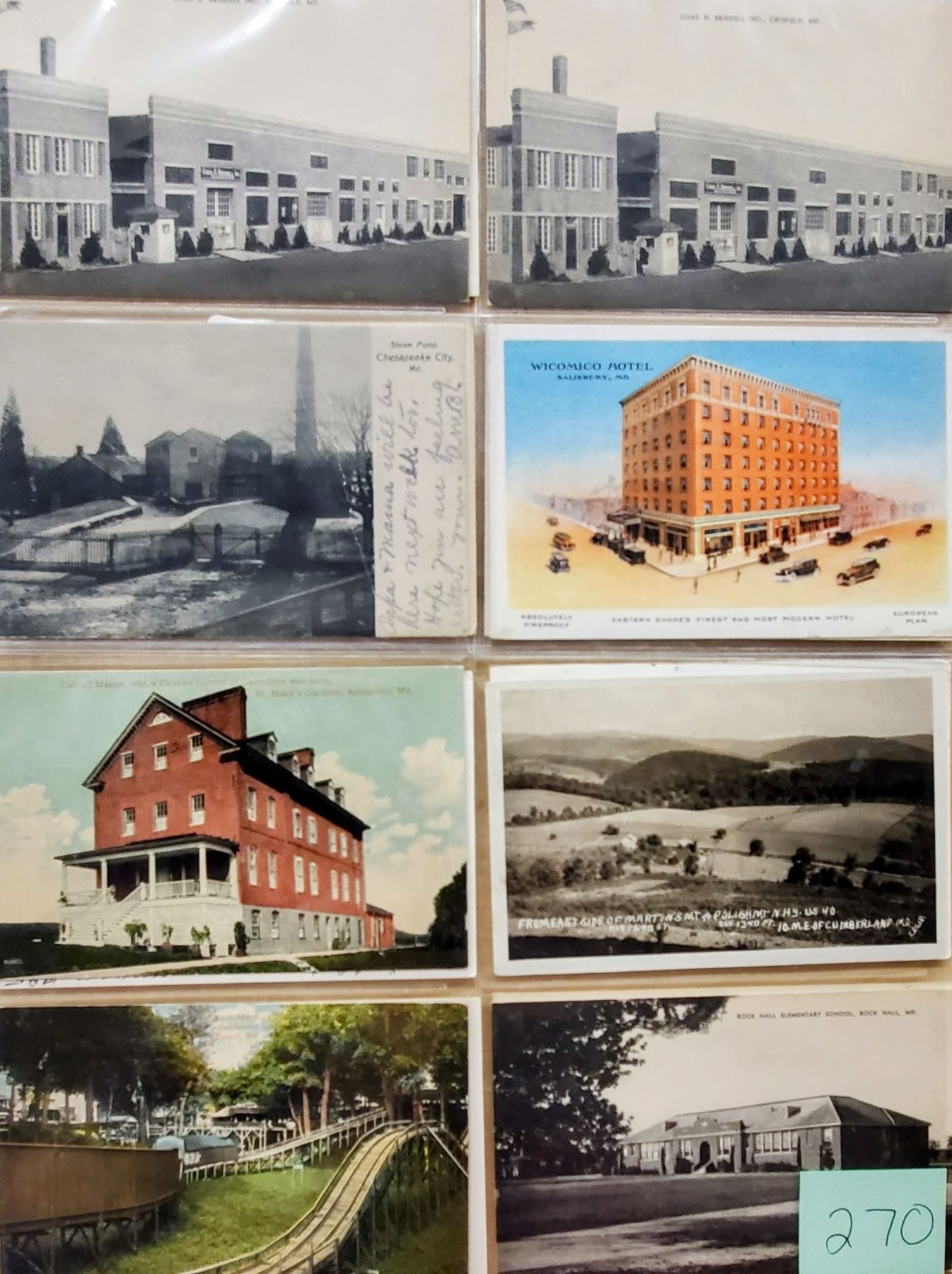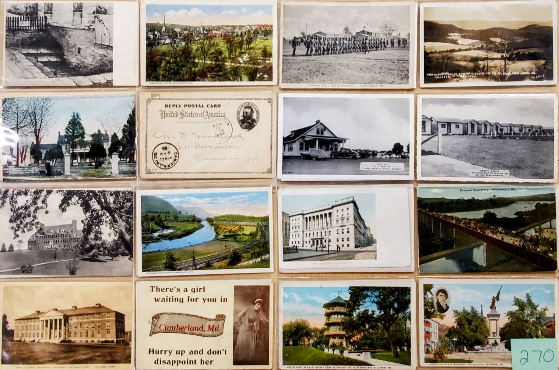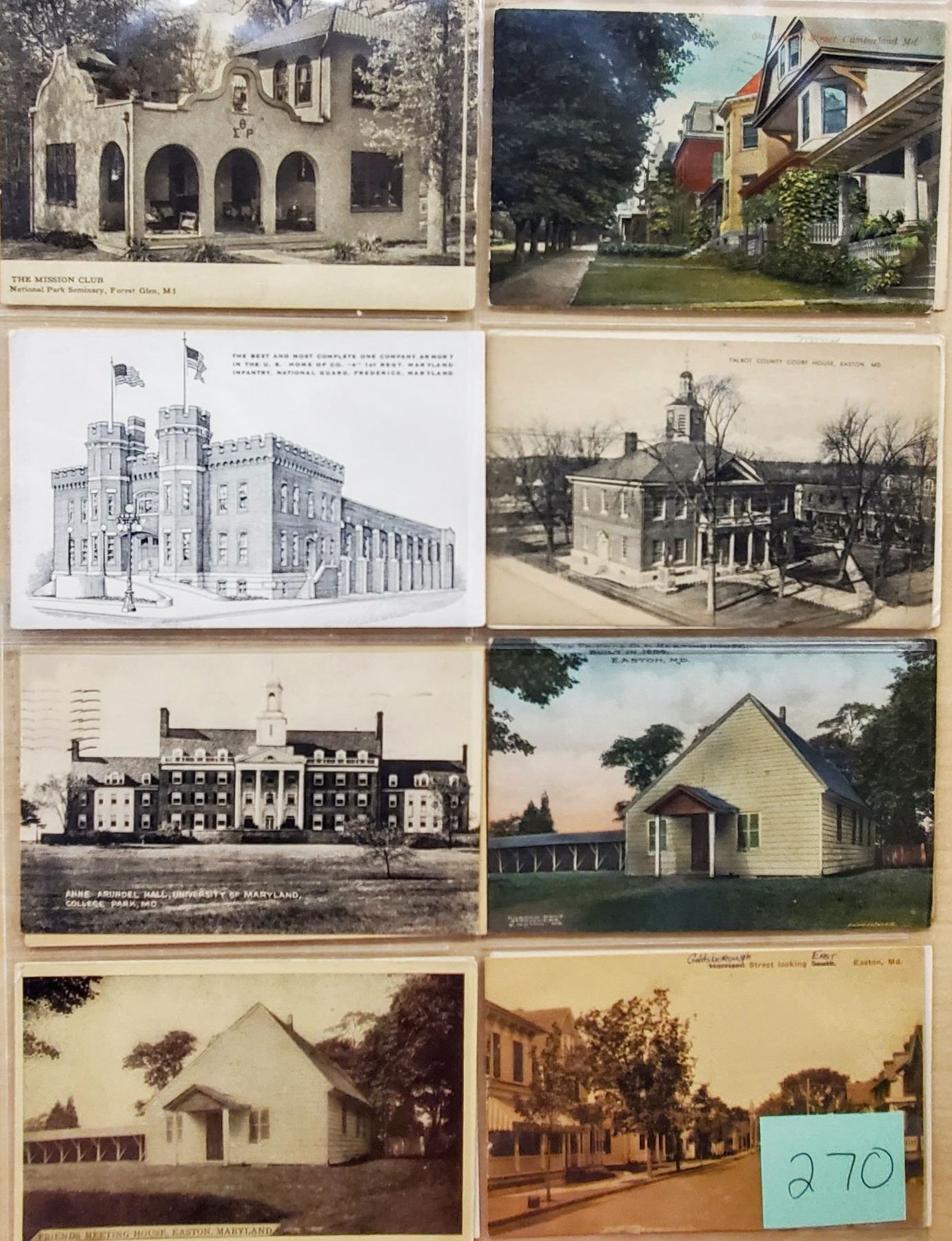 Over 70 MD postcards. Mostly pre linen. Forest Glen, Annapolis, College Park, Elkton, Easton and several other towns.