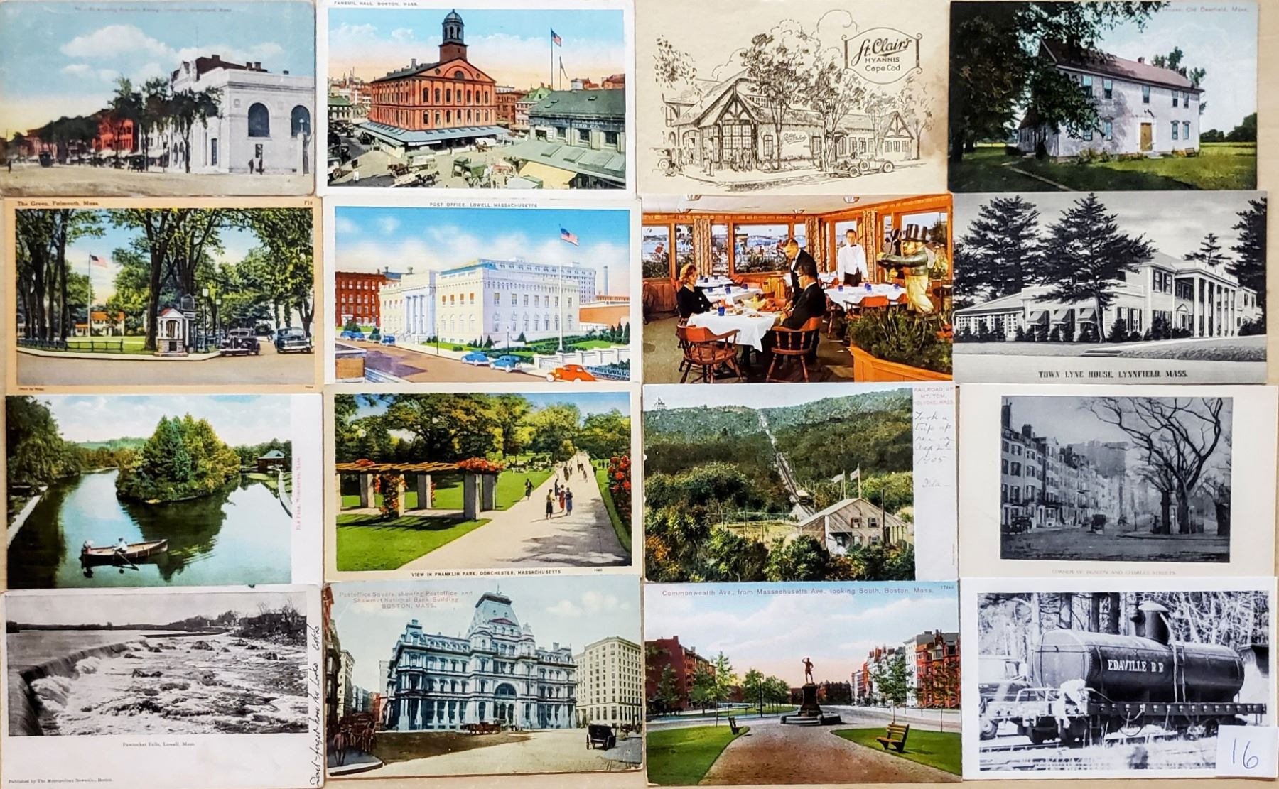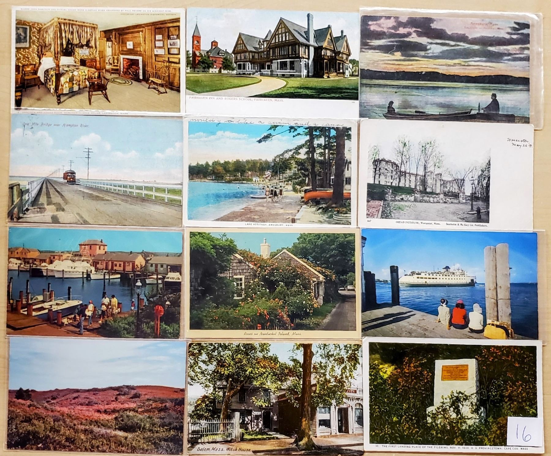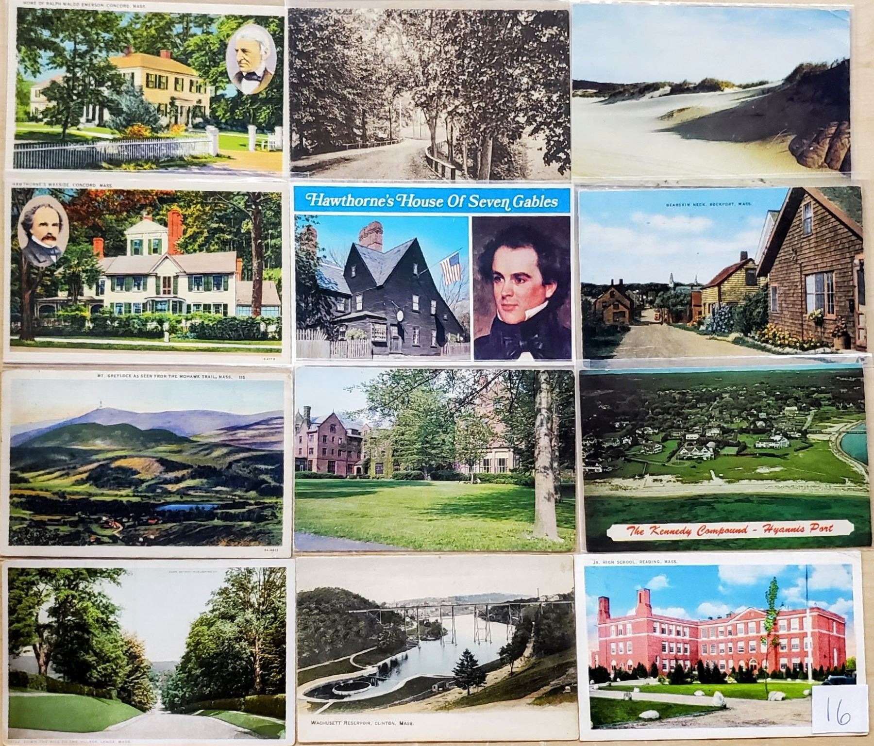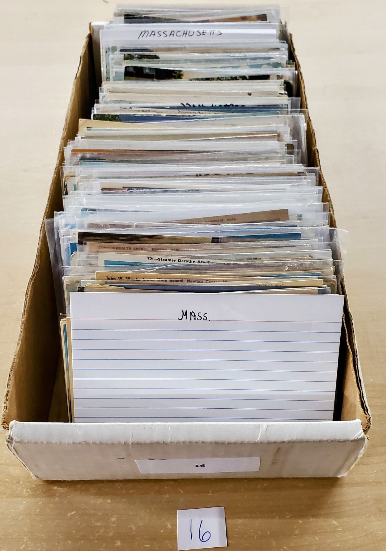 Approx. 600 MA postcards. Early to standard sizem chrome.