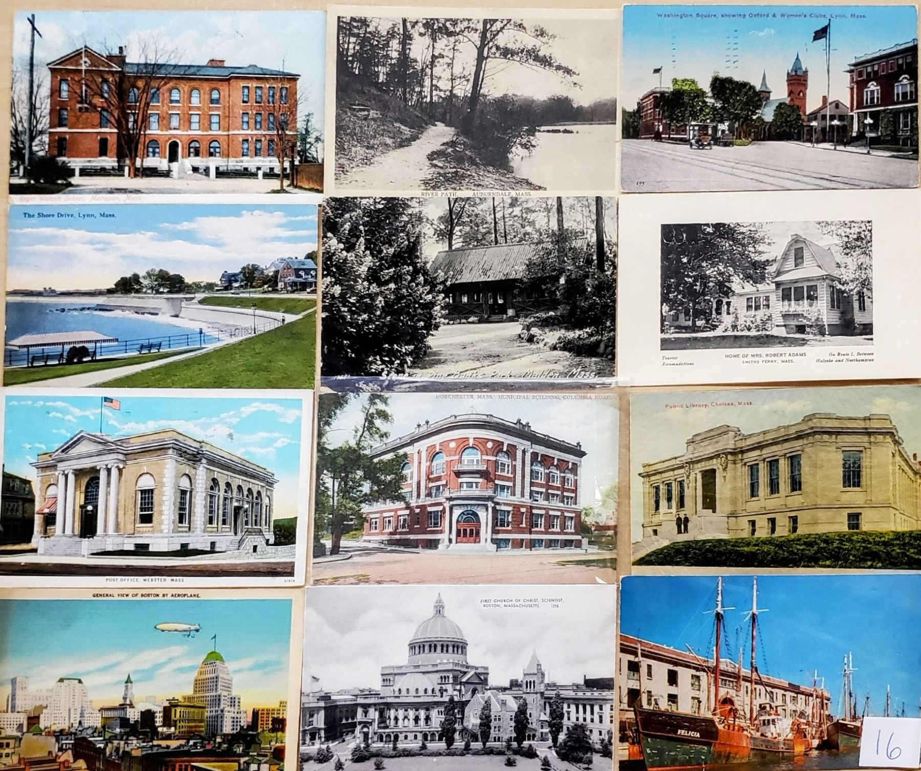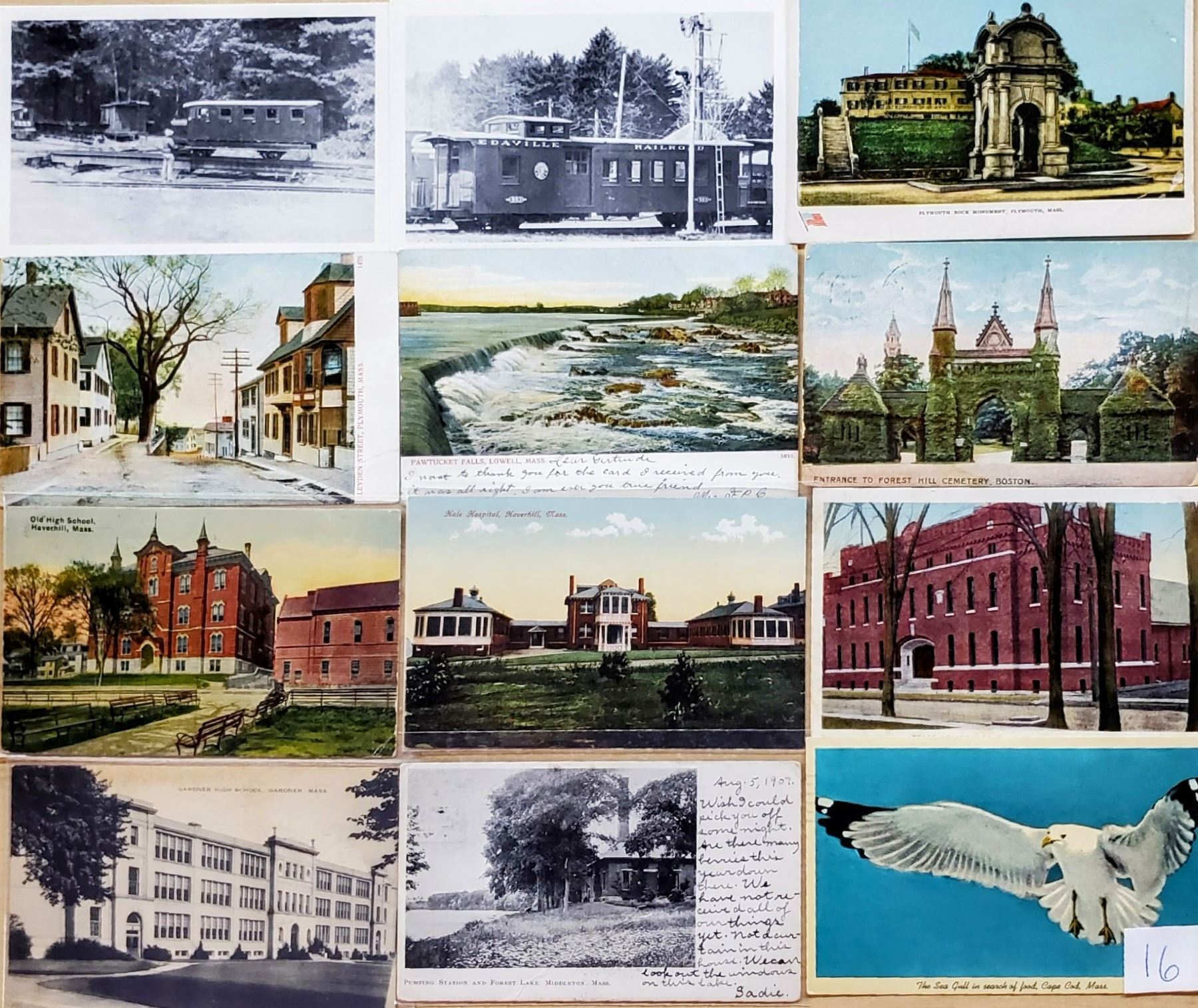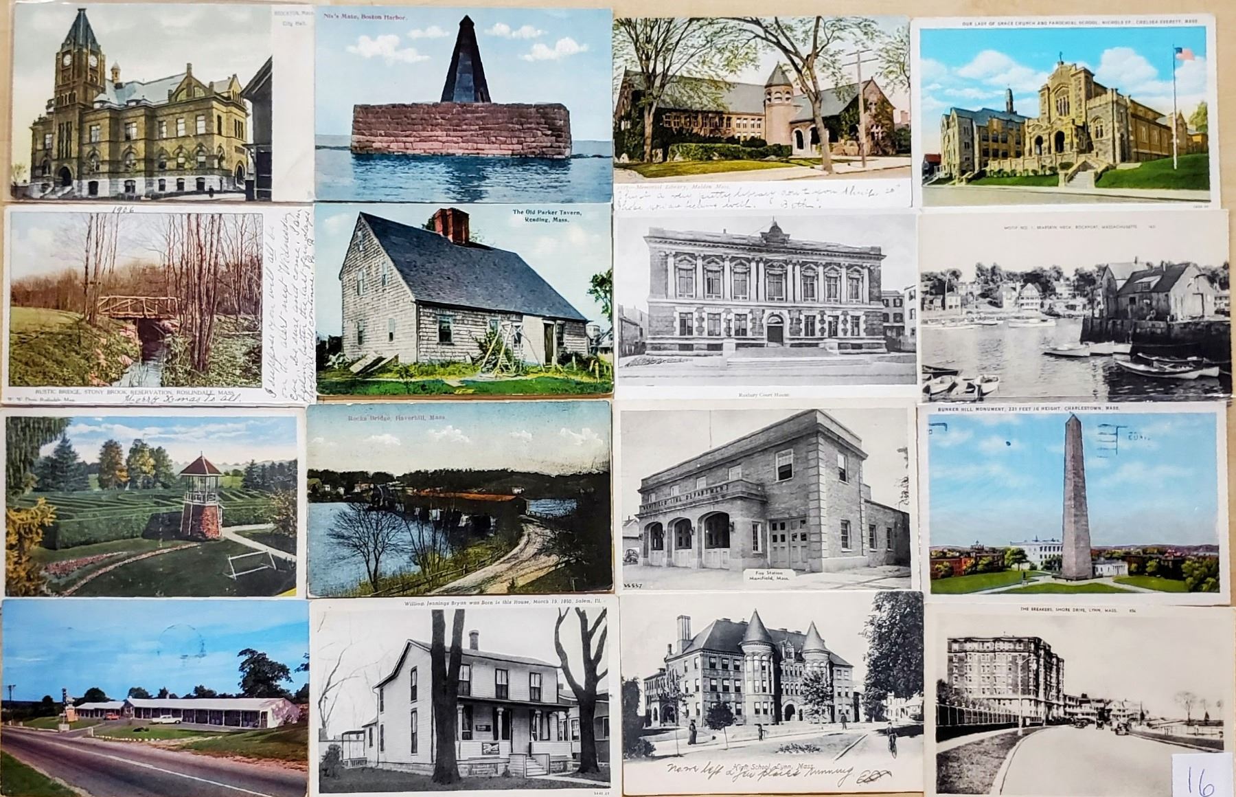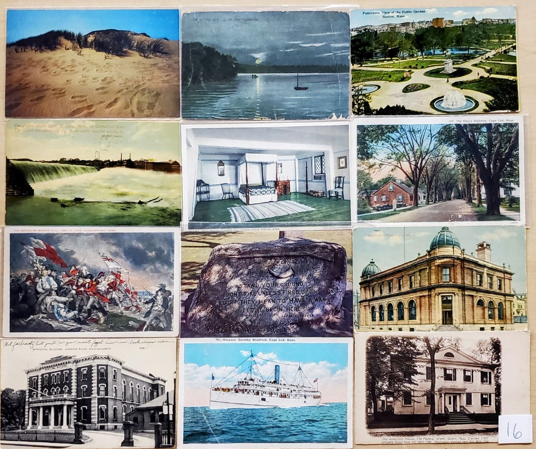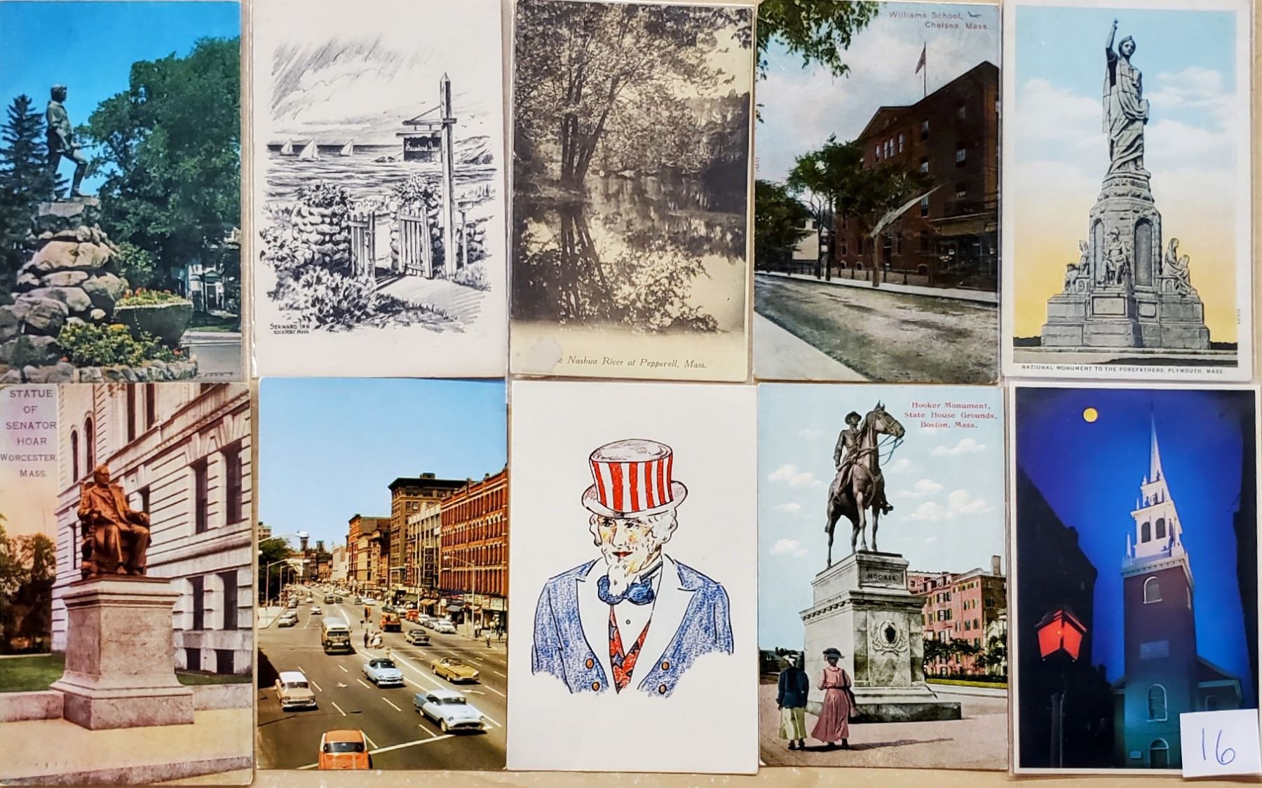 Approx. 600 MA postcards. Early to standard sizem chrome.
