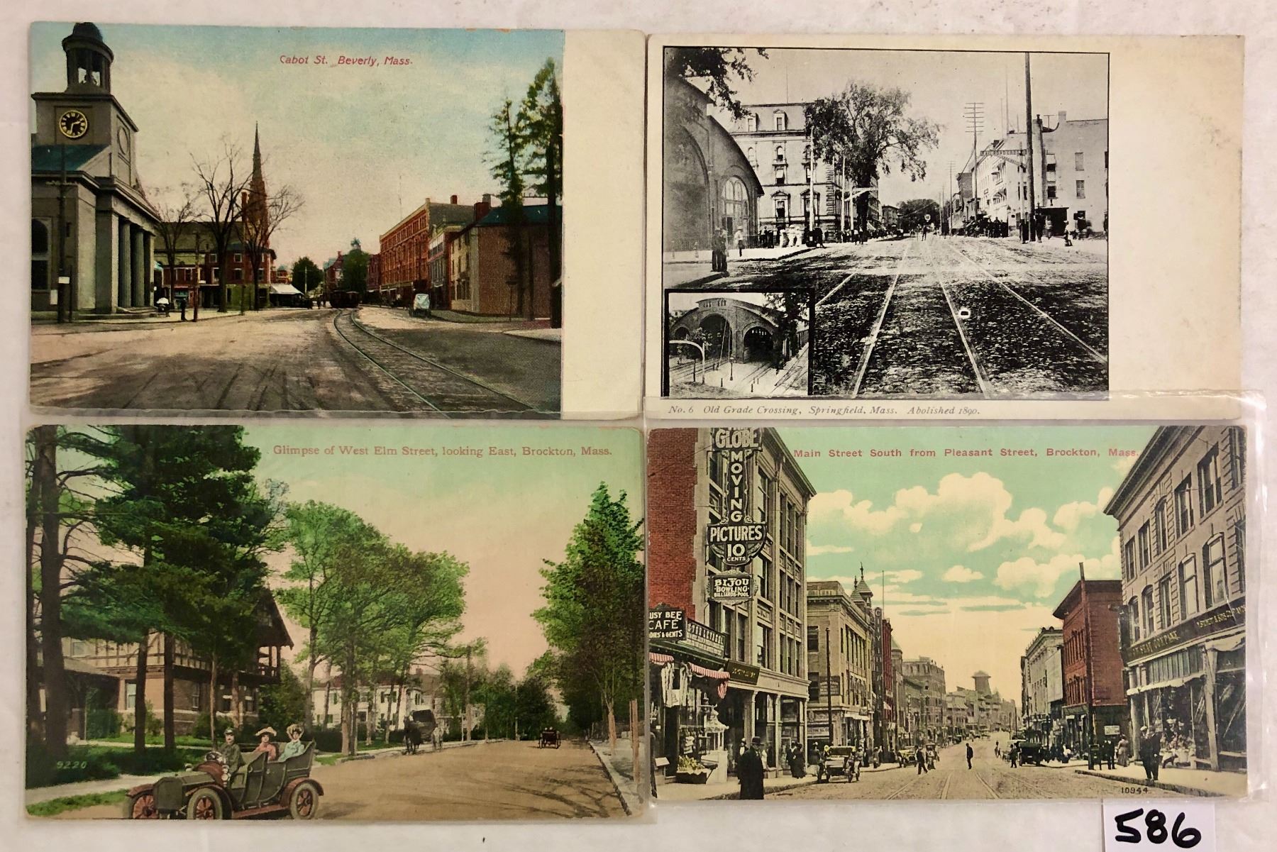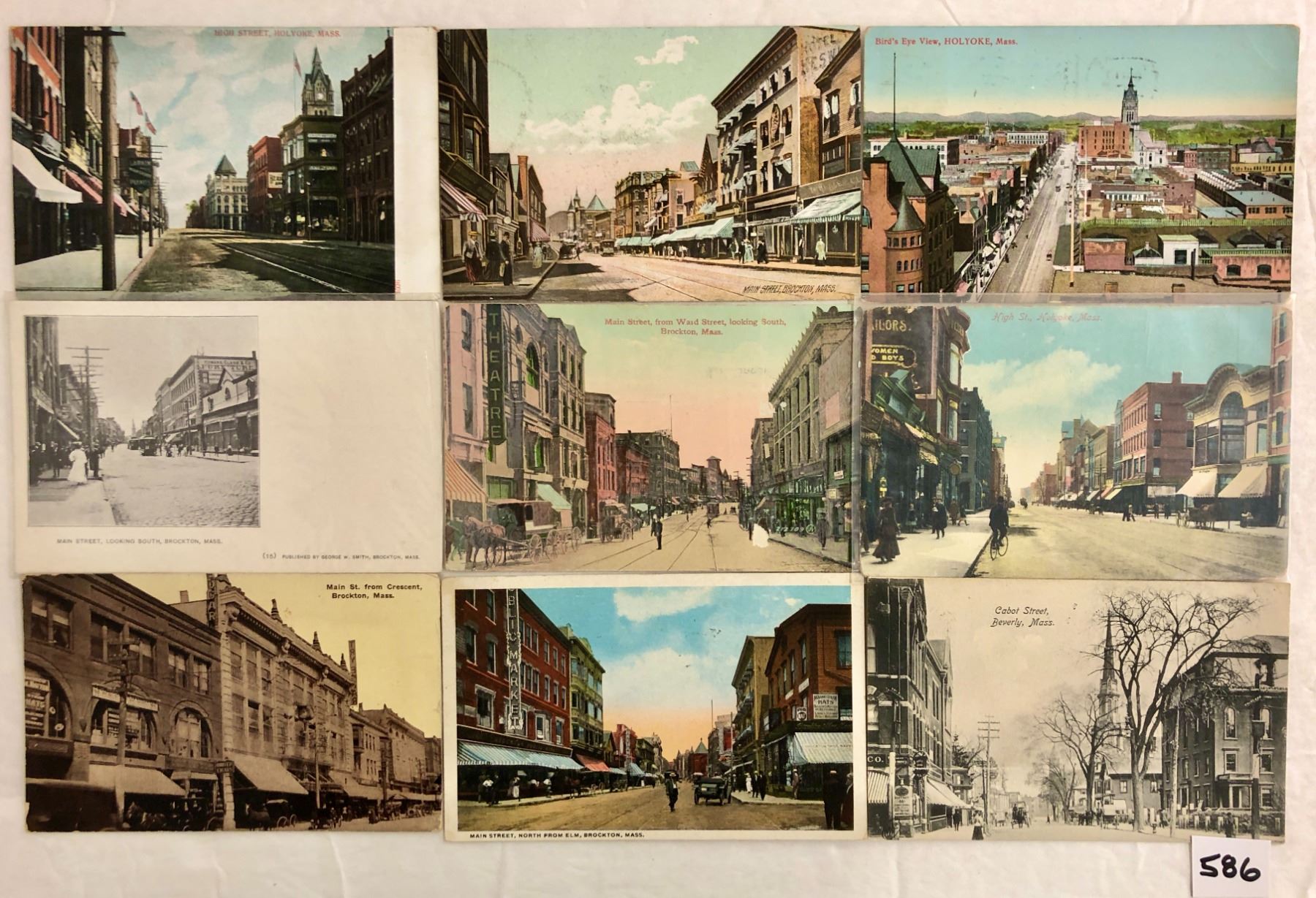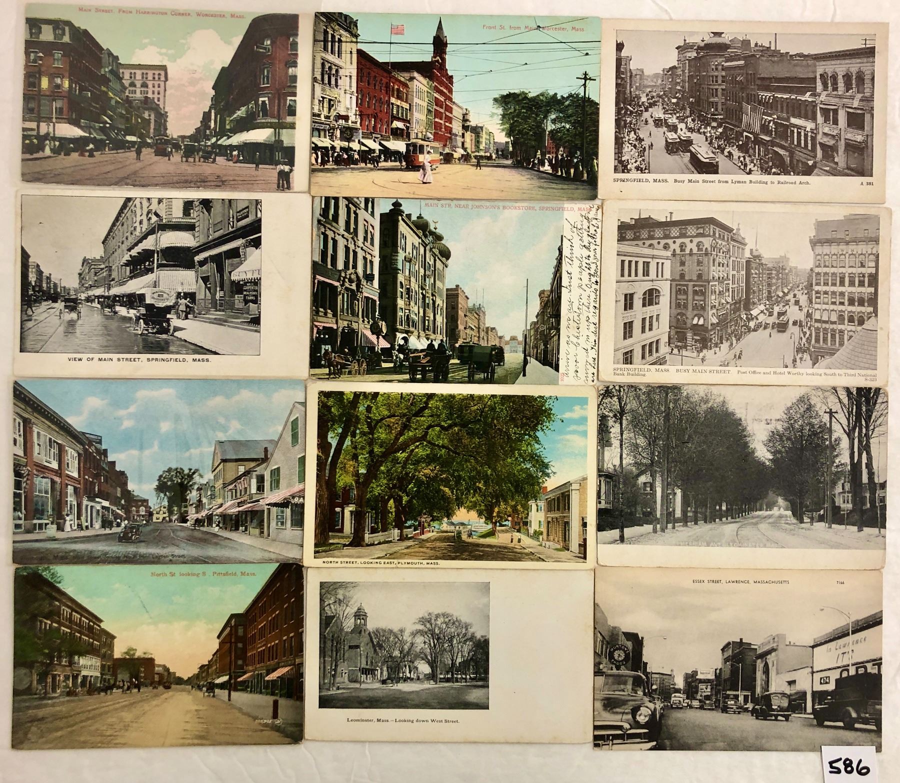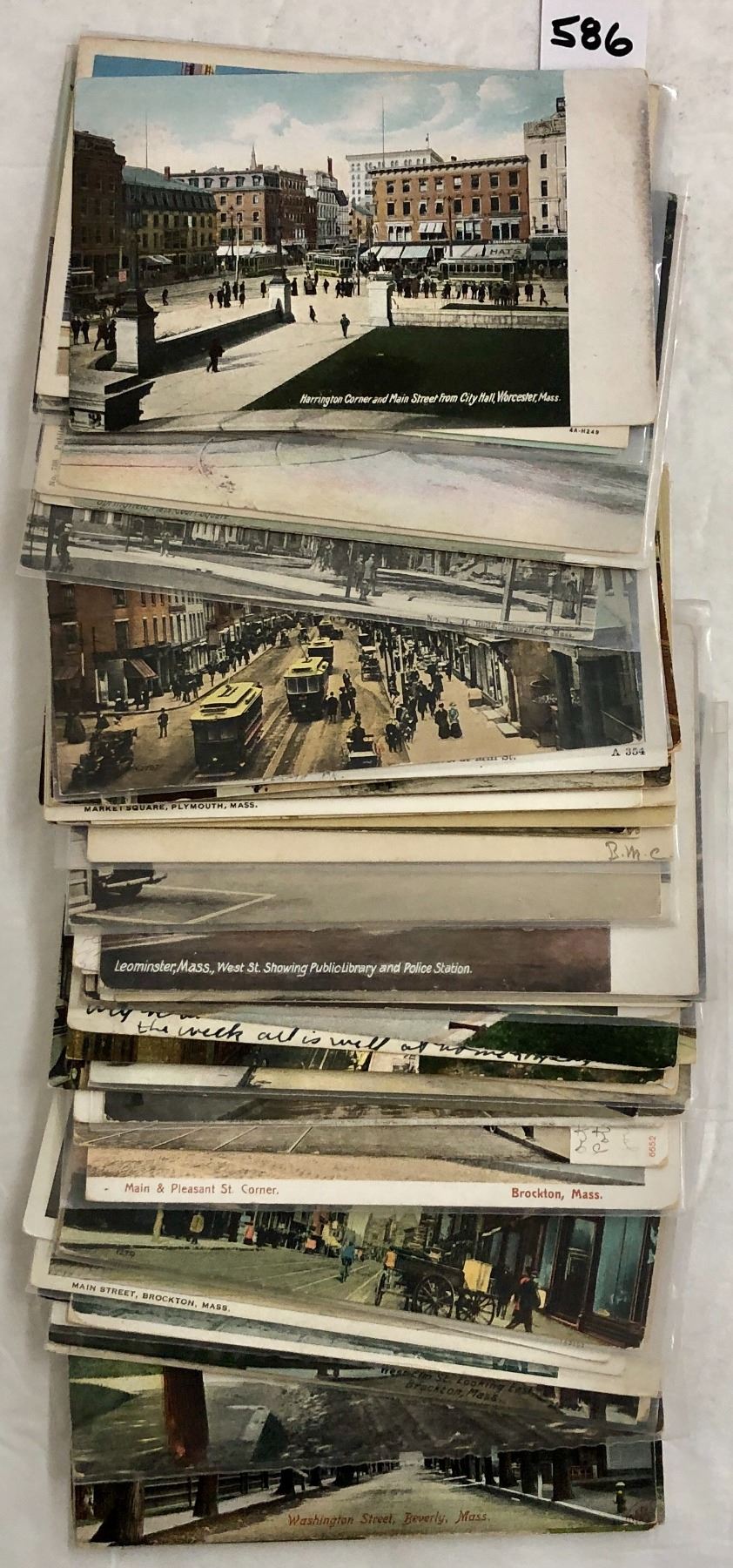 Over 85 MA street scene postcards. Early. Some linen. 9 towns represented.