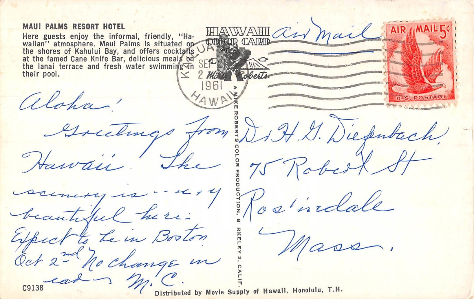Vintage. Postal used, 1961.